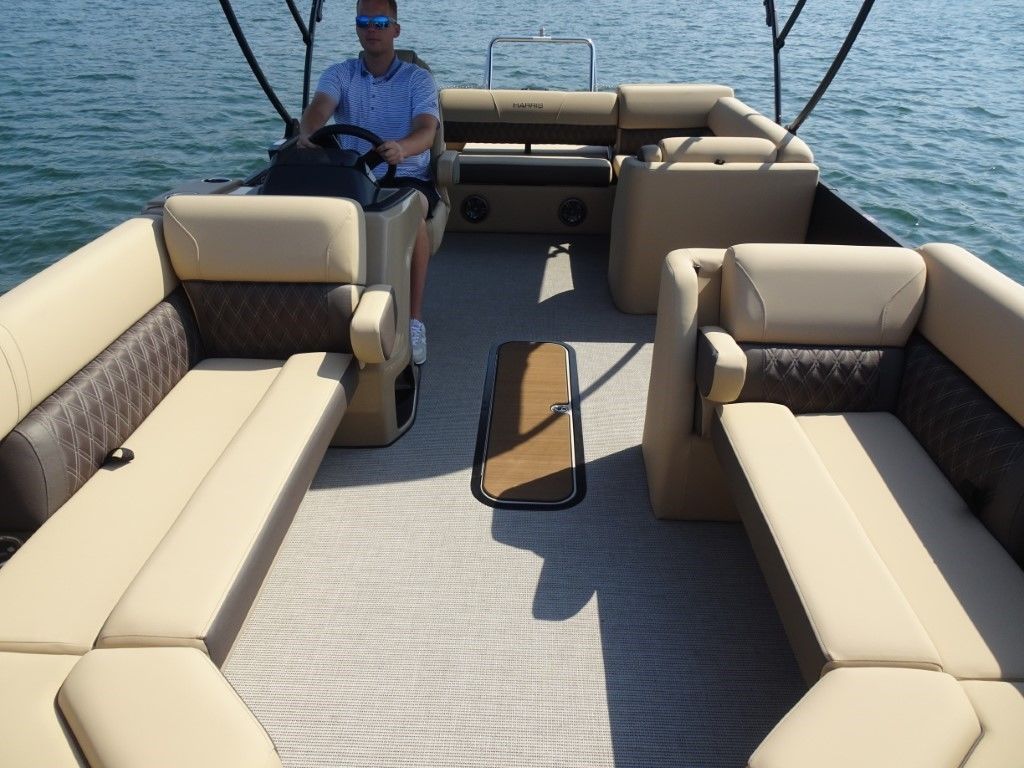 COMFORT MEETS CONVENIENCEReimagined interiors feature luxuriously soft yet incredibly durable pillow-top vinyl upholstery surrounded by a sleek and stunning new fence. Flexible seating options let you configure the craft for any group, and generous onboard storage allows you to stow all the gear you need for a relaxing and fulfilling day on the water. It’s everything you need for the best day on the water ever!