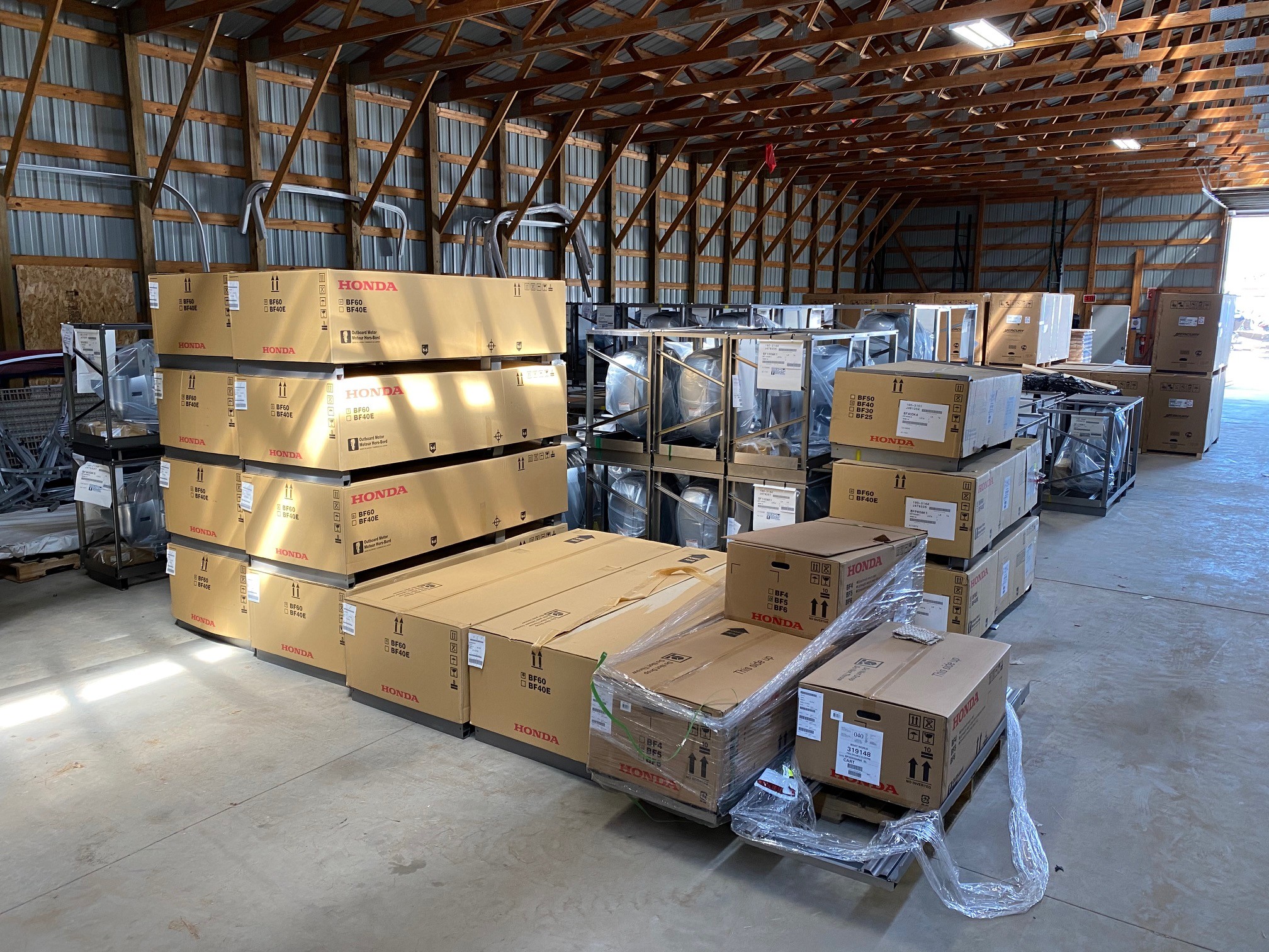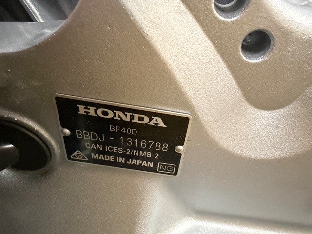 Honda 40HP 4-Stroke EFI outboard motor. Available in 20" L (Long Shaft). Mechanical Remote Control Model is discounted for Opened Box. Power tilt and Trim with electric start. Motor has been put back in crate. May have minor imperfections from open crate. 2025 Program Year with earlier manufacture date includes Honda’s industry-leading “True-5” five-year, non-declining warranty. Prop, Cables, Controls, Gauges, and Install are available for an additional charge.