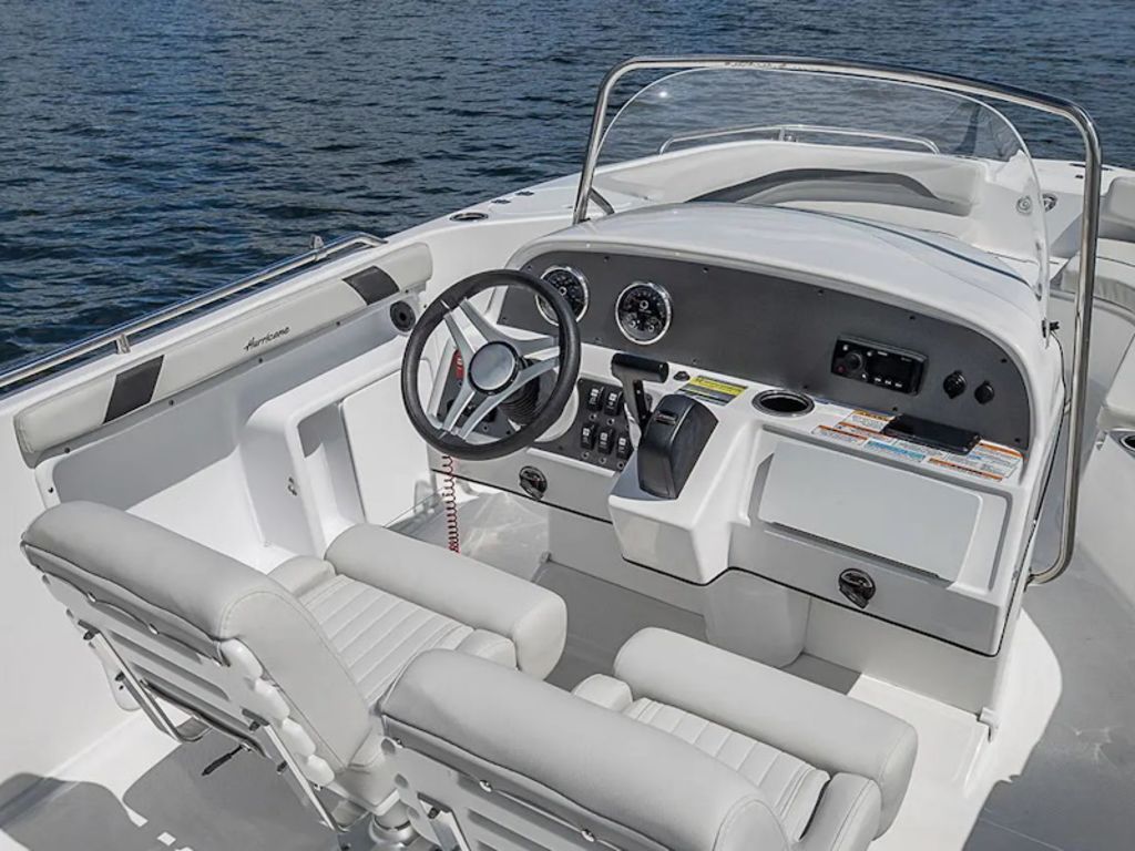 The Hurricane 231 OB features a spacious, open deck layout that makes it easy for families to move around safely and comfortably. Its center console design provides excellent visibility and control, making it a pleasure to operate whether you’re navigating coastal waters, exploring Florida’s rivers, or heading offshore. The boat’s robust hull ensures a smooth and stable ride, while the ergonomically designed helm offers modern instrumentation and ample storage for gear, safety equipment, and personal items.