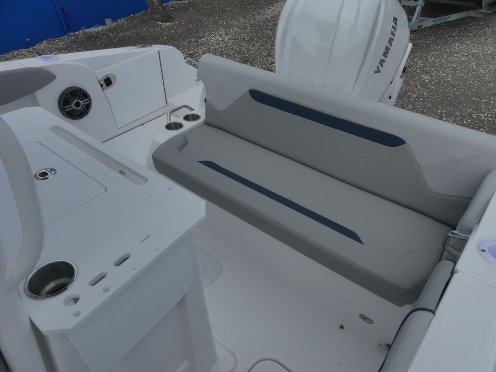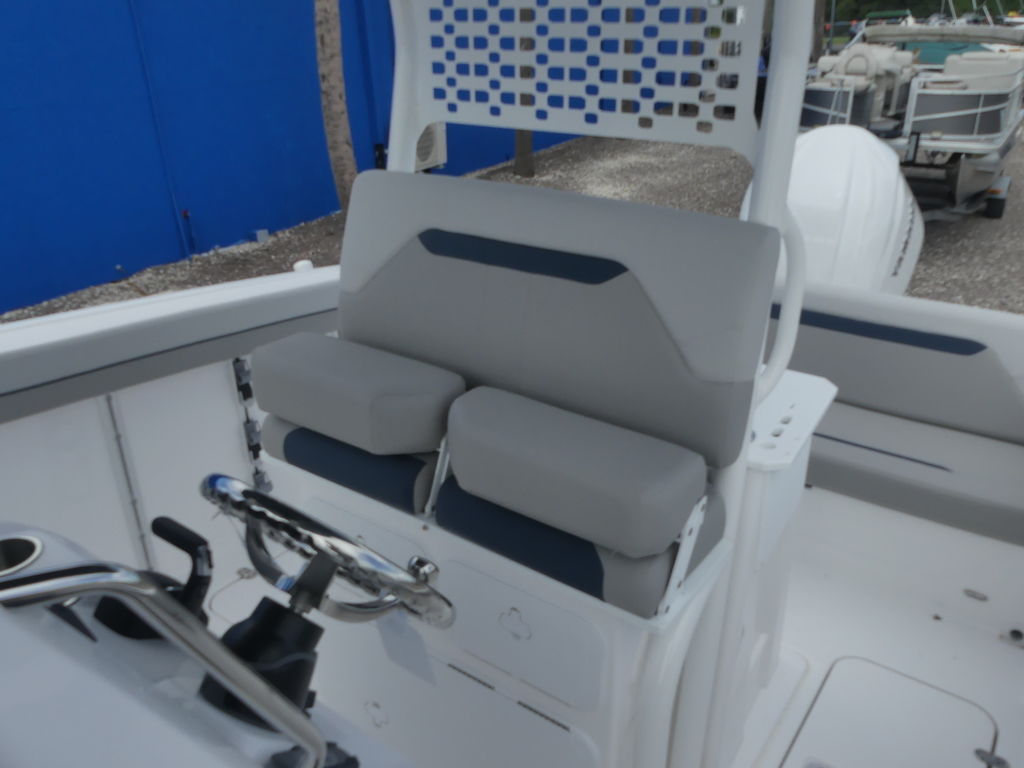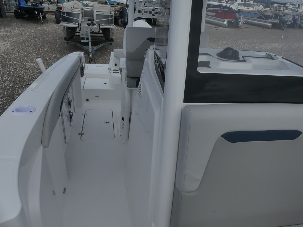 The spacious deck layout provides easy access around the console, abundant seating, and plenty of room for gear and coolers. Anglers will appreciate the thoughtful fishing features, including rod storage, livewell options, and ample casting space, while families and guests will enjoy comfortable seating and an open, inviting cockpit. The center console design keeps the helm area functional and efficient, with room for modern electronics and navigation systems to make every trip easier and more enjoyable.
