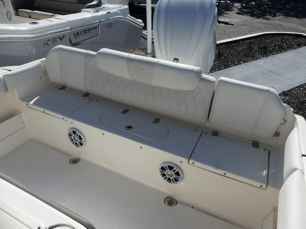 The 239FS is the answer to the question of whether a boat can fish hard on Saturday and then capture family fun on the water on Sunday.It provides plenty of roominess and fishing features to bring home the big catch while also providing the comfort features of a relaxing bow lounge and an aft bench seat that can easily accommodate five across.