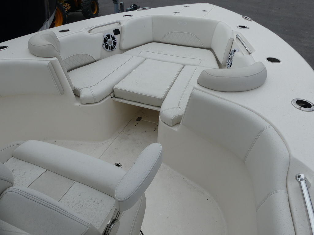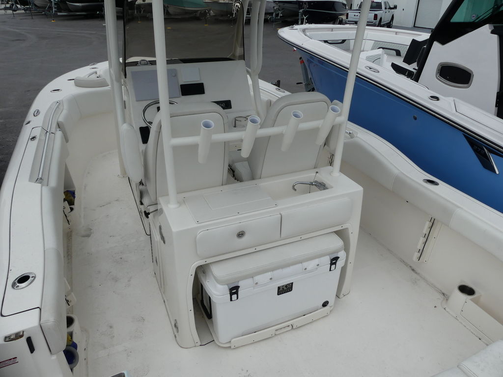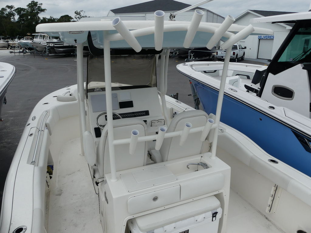The 263FS is a perfect choice for family, fishing, or just cruising on the water.This model is full of features that enhance the design and performance, providing the active family with all they could ask for on the water. Some of the standard features include an under-deck windlass, eight-speaker stereo with amplifier, hardtop, side entry door with hidden ladder, power assist steering, and Seakeeper Ride system. It remains a highly fish-able vessel with features like dual live wells, a macerated fish box, 22-rod holders, and horizontal storage racks under the gunnels to hold your longest saltwater rods.