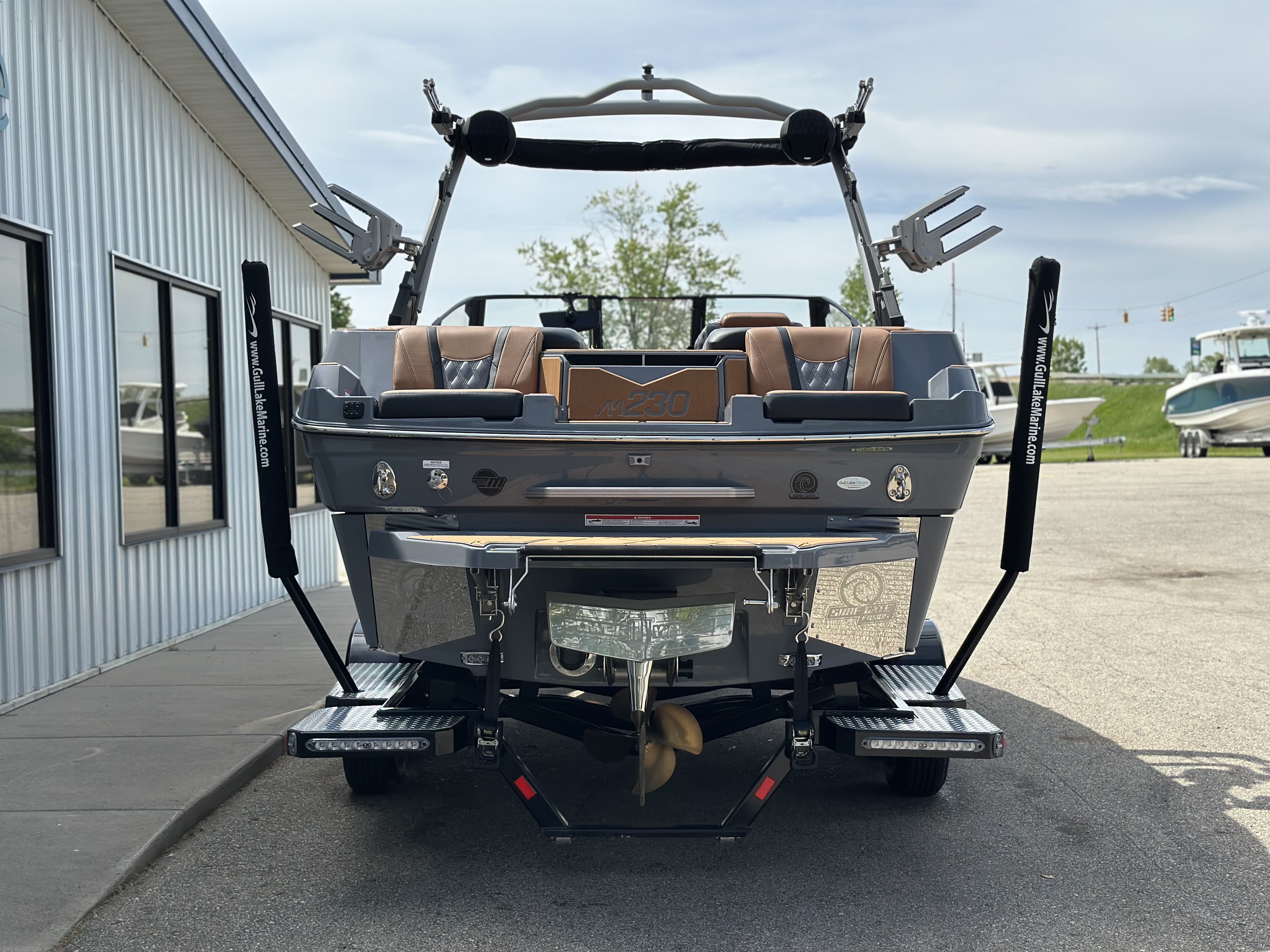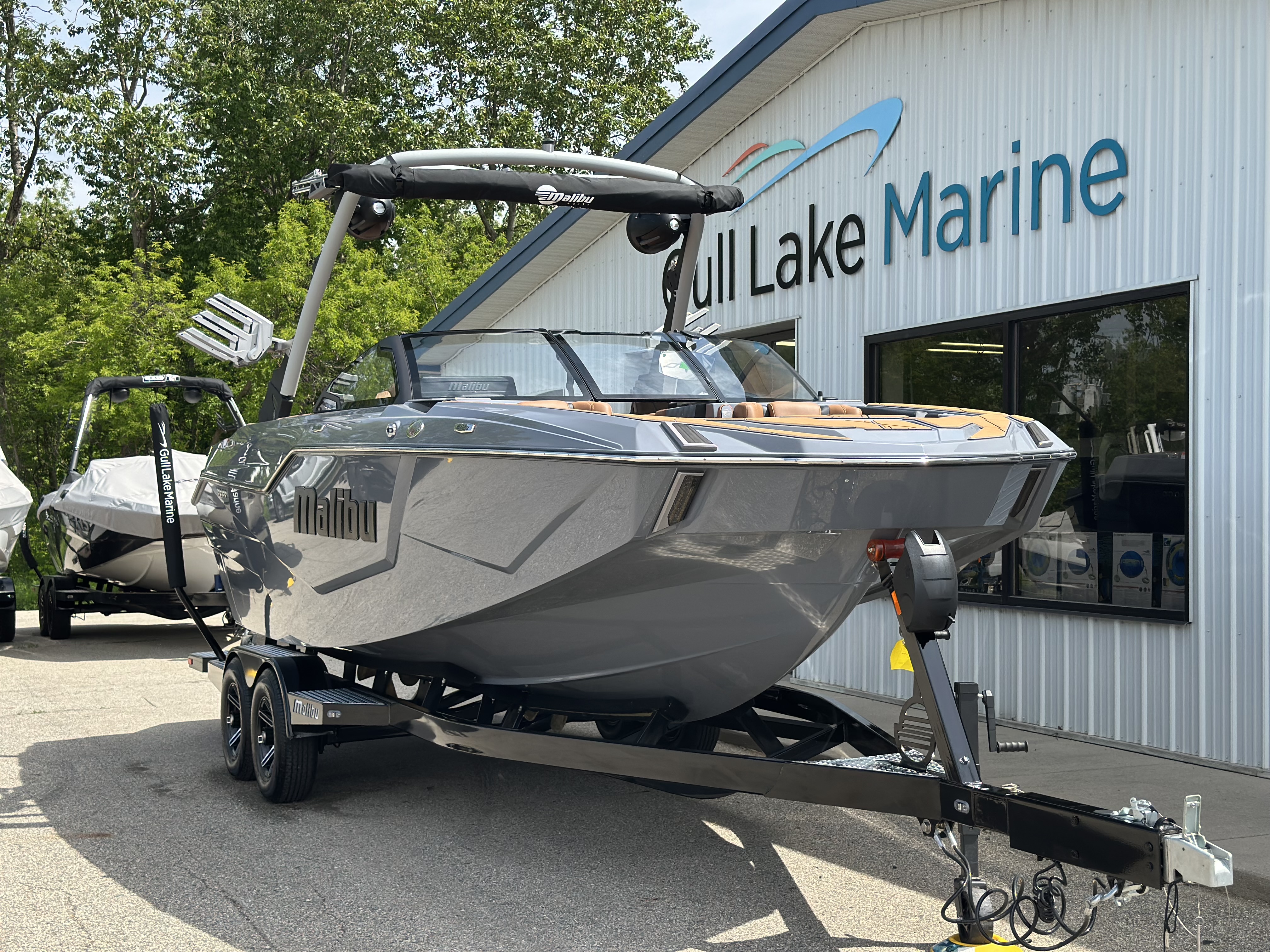 A NEW ERA OF LUXURY - The M230The all-new Malibu M230 was handcrafted to deliver the most premium on-water experience both in and behind the boat. Featuring the striking M-Series profile and elevated freeboard, the M230 offers an expansive feel on the water, providing ample space for more passengers, more ballast, and more storage — all without sacrificing your performance. Engineered for flawless performance, Surf Gate Fusion is integrated into the M-Line Hull for an ultra-sleek exterior profile & the cleanest surf swells in the industry. Step aboard, and you'll find Malibu's greatest innovations and thoughtful touches everywhere you look. One look at the M230, and you'll see why it's the newest premium leader in its class. Featured Options:Exclusive Helm SeatPowered Flip-Down Swim StepAll-New Malibu Command Center & Operating SystemRemovable Natalie Seat & Filler CushionMax-Relax Sundeck LoungersPortside TouchscreenMalibu TowerPowerful Malibu Monsoon Engine M6DI with 430HPMalibu Matching Trailer5-Year Factory WarrantyWhy Choose Gull Lake Marine? With over 100 years of boating experience, Gull Lake Marine is West Michigan’s trusted marine dealership. We provide factory-certified, inboard technicians and the most up-to-date training to ensure your Malibu operates at peak performance. Every new Malibu purchase includes:Free Delivery within 15 milesOn-Water Orientation with our trained Delivery CaptainFree Watersports Lesson to get you dialed in For more details, visit GullLakeMarine.com or email us at sales@gulllakemarine.com