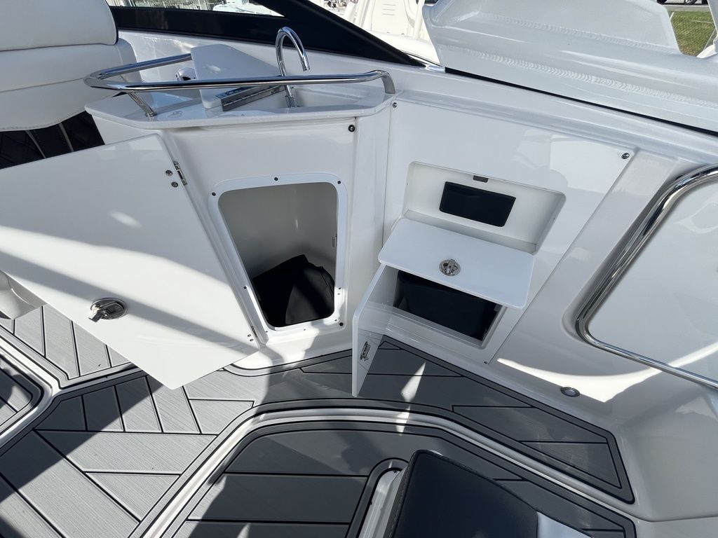 SPACIOUS, SUAVE, AND STYLISHSpacious, Suave, and stylish, the M45 offers a unique blend of performance and comfort. Standard features include an ergonomically designed helm station, spacious seating options with custom dedicated storage, Fusion Satellite Ready AM/FM Stereo, as well as a wet bar with solid surface top, sink, and faucet. Add on the optional wakeboard tower to complete you’re on the water adventures!