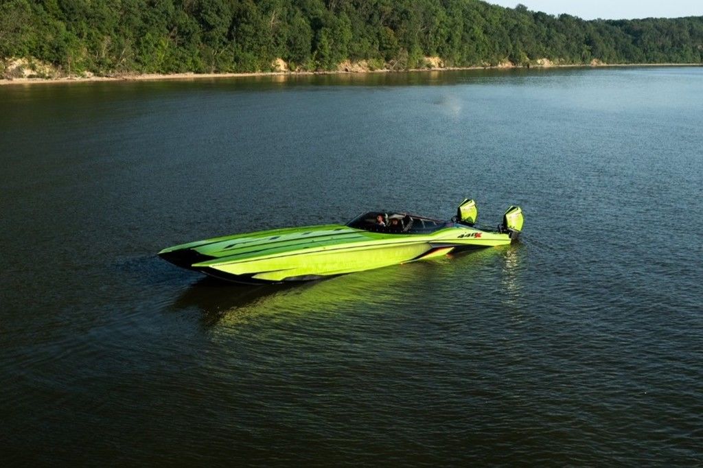 2025 MTI 440X 8-SEATER HEAVILY OPTIONED FOR TWIN MERCURY RACING 500R'S WITH ONLY 75HRS LAMBORGHINI PEARL GREEN CUSTOM PAINT LARGE DASH LAYOUT WITH GARMINS ALL BLACK HARDWARE TINTED WINDSHIELD DUAL HIGH PERFORMANCE BLOWERS REARVIEW CAMERA UNDERWATER SIDE AND REAR LIGHTS RGB SEADEK FLOORING POWER FRONT AND REAR SPEAKER PODS COCKPIT COVER SUNSHADE BRAND NEW MYCO PAINTED TRAILER NEVER USED BOAT SHOWS LIKE NEW