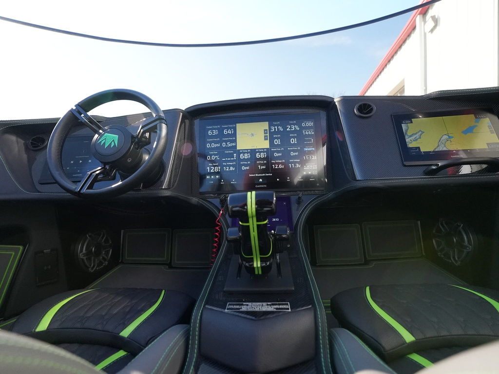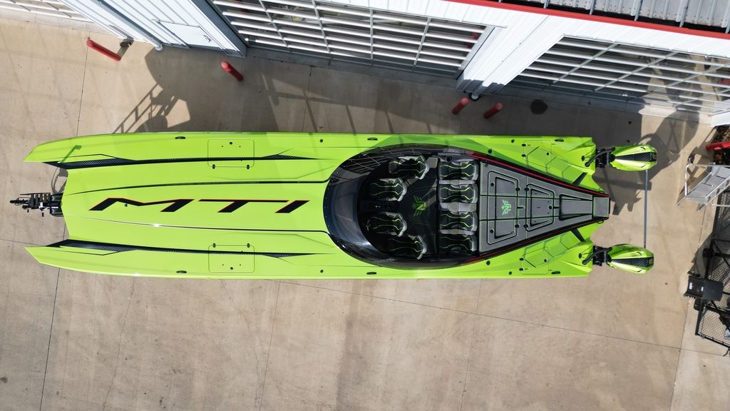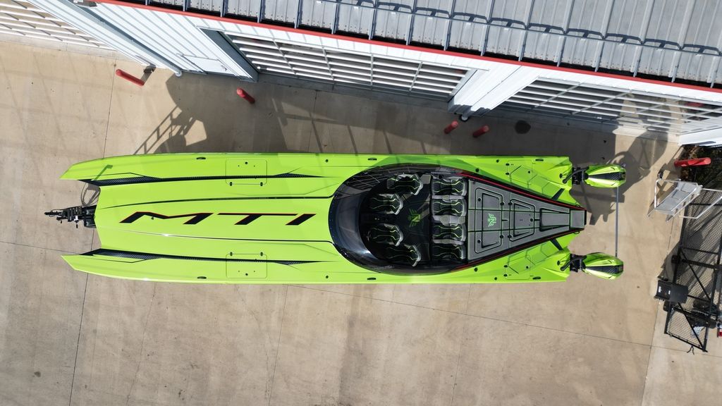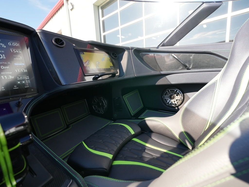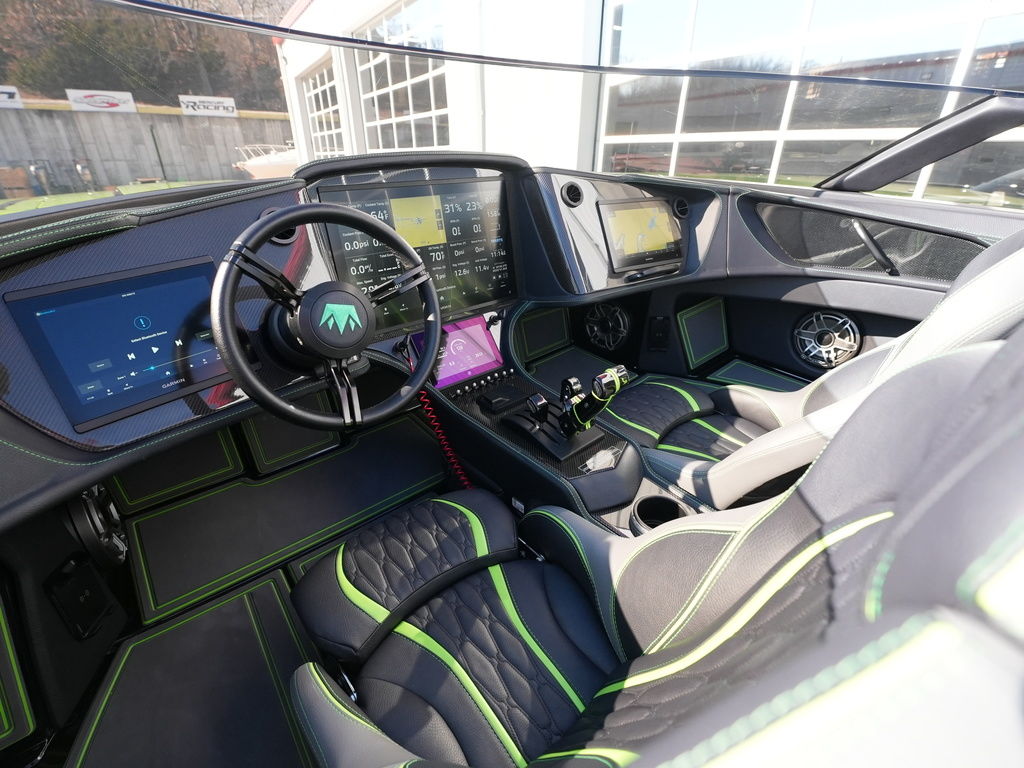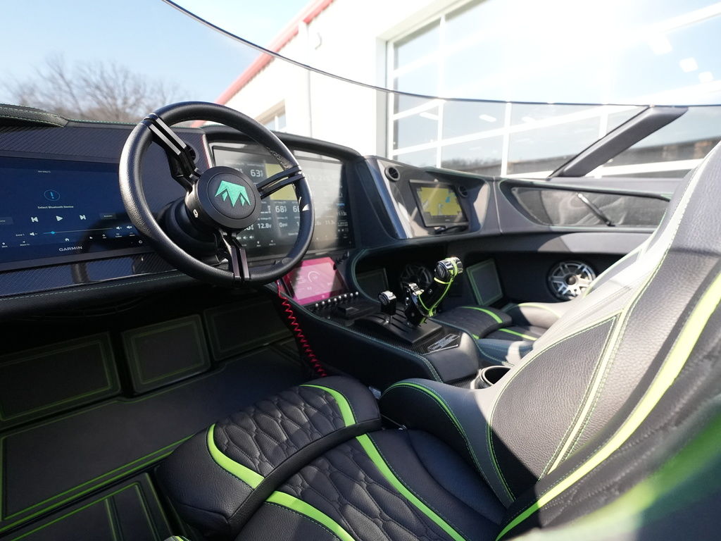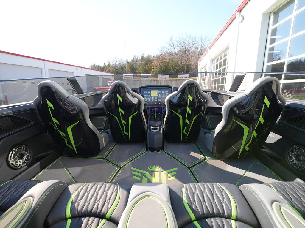 2025 MTI 440X 8-SEATER HEAVILY OPTIONED FOR TWIN MERCURY RACING 500R'S WITH ONLY 95HRS LAMBORGHINI PEARL GREEN CUSTOM PAINT LARGE DASH LAYOUT WITH GARMINS ALL BLACK HARDWARE TINTED WINDSHIELD DUAL HIGH PERFORMANCE BLOWERS REARVIEW CAMERA UNDERWATER SIDE AND REAR LIGHTS RGB SEADEK FLOORING POWER FRONT AND REAR SPEAKER PODS COCKPIT COVER SUNSHADE BRAND NEW MYCO PAINTED TRAILER NEVER USED BOAT SHOWS LIKE NEW