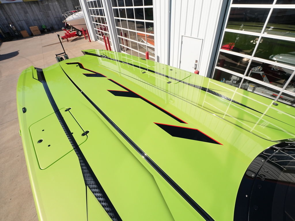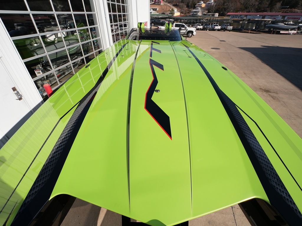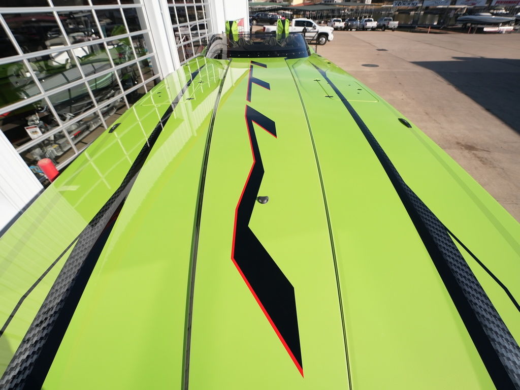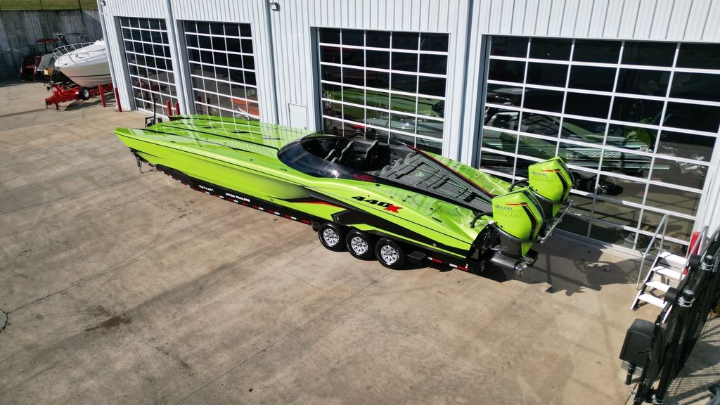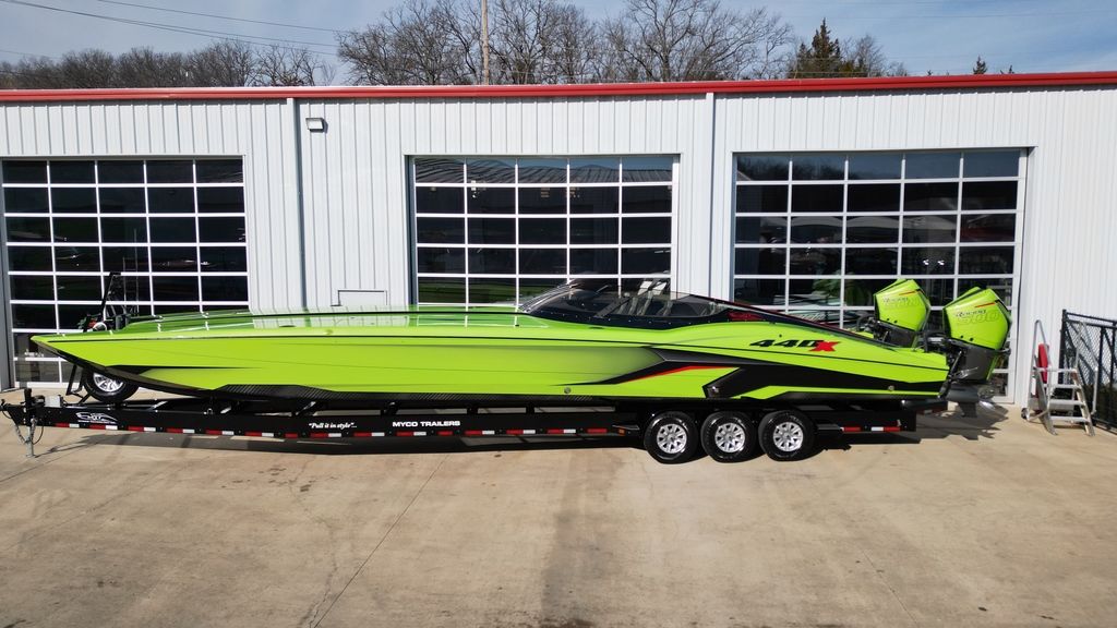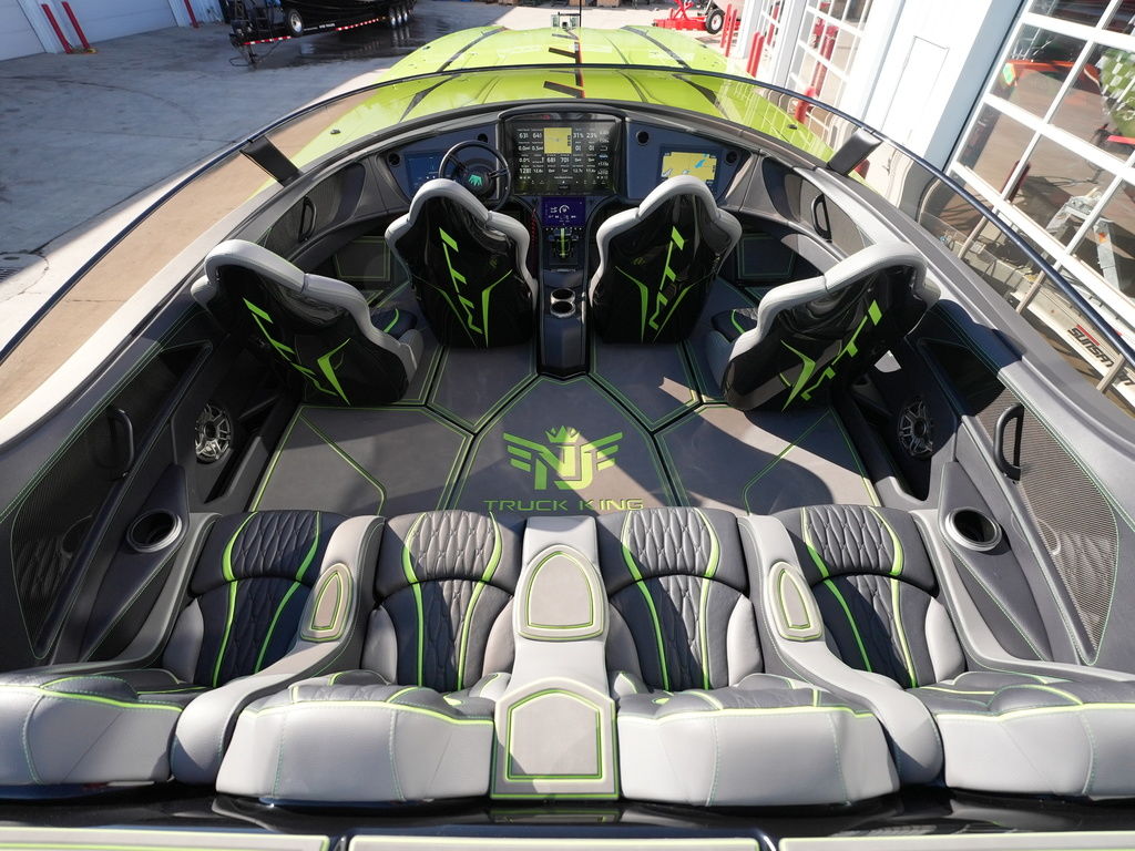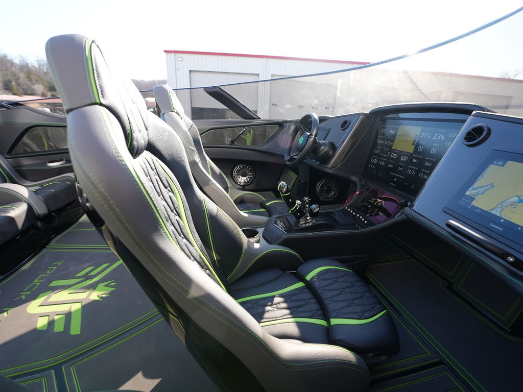 2025 MTI 440X 8-SEATER HEAVILY OPTIONED FOR TWIN MERCURY RACING 500R'S WITH ONLY 95HRS LAMBORGHINI PEARL GREEN CUSTOM PAINT LARGE DASH LAYOUT WITH GARMINS ALL BLACK HARDWARE TINTED WINDSHIELD DUAL HIGH PERFORMANCE BLOWERS REARVIEW CAMERA UNDERWATER SIDE AND REAR LIGHTS RGB SEADEK FLOORING POWER FRONT AND REAR SPEAKER PODS COCKPIT COVER SUNSHADE BRAND NEW MYCO PAINTED TRAILER NEVER USED BOAT SHOWS LIKE NEW