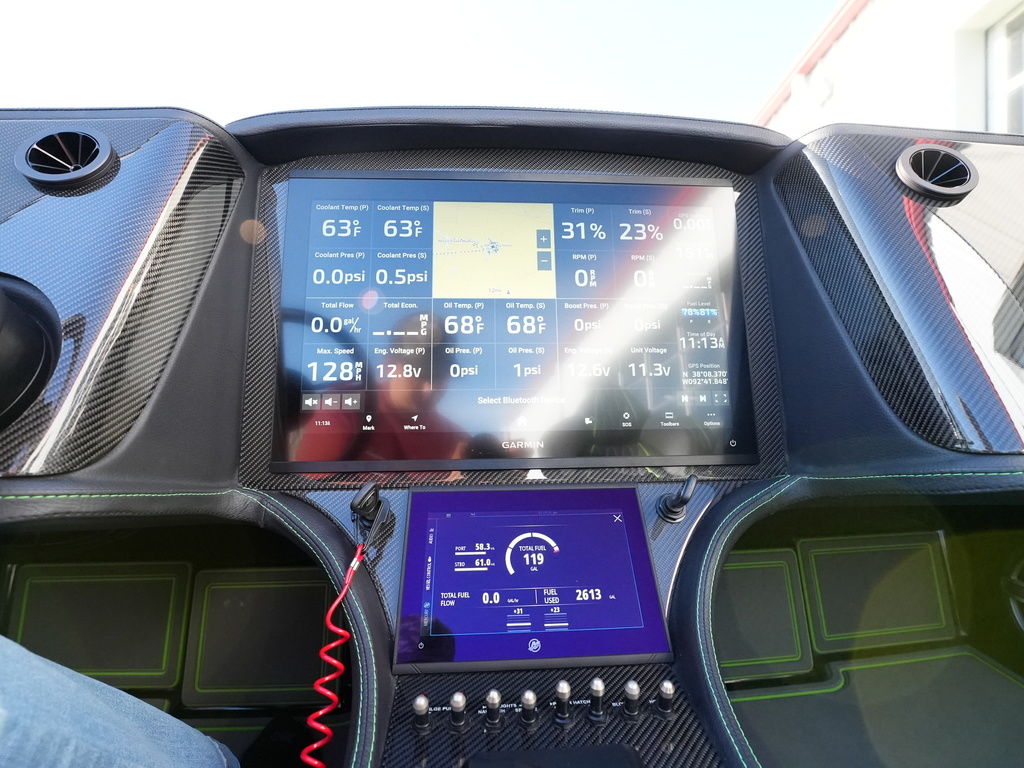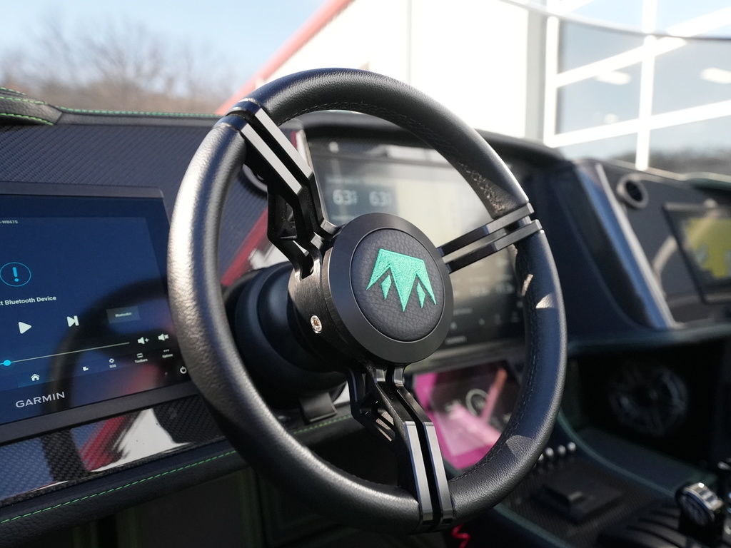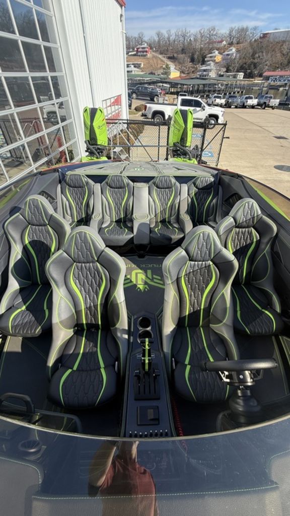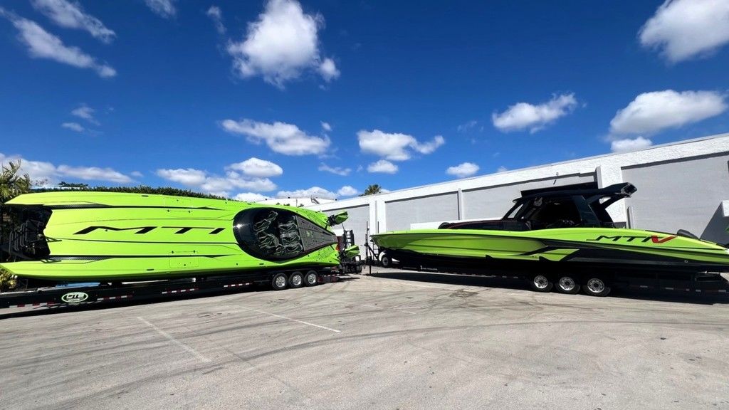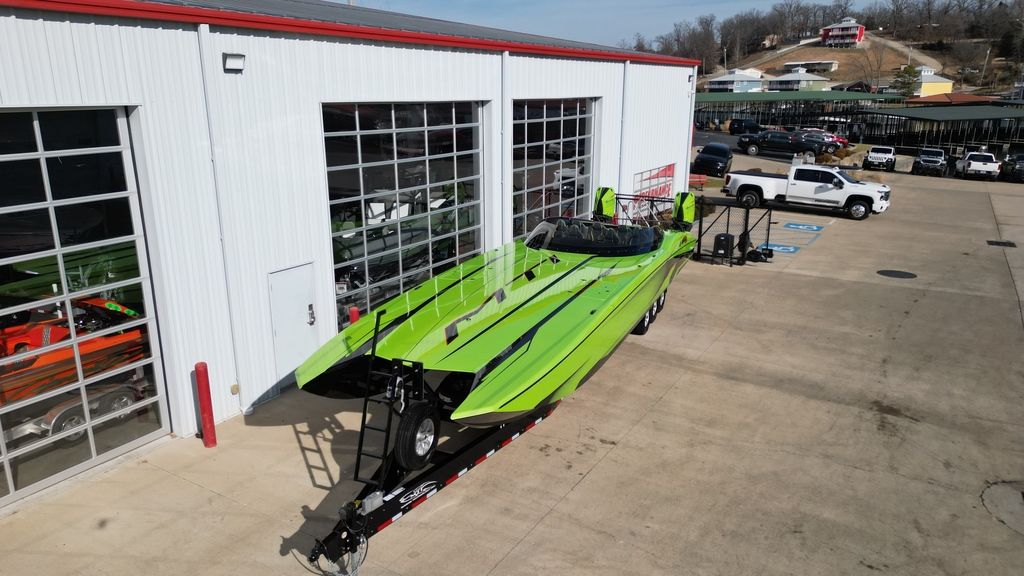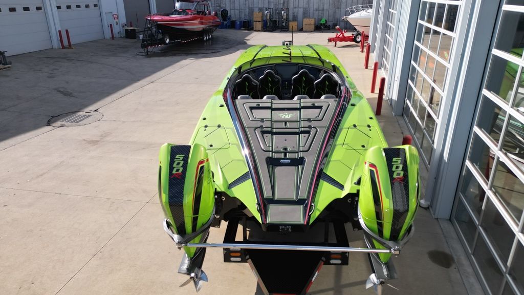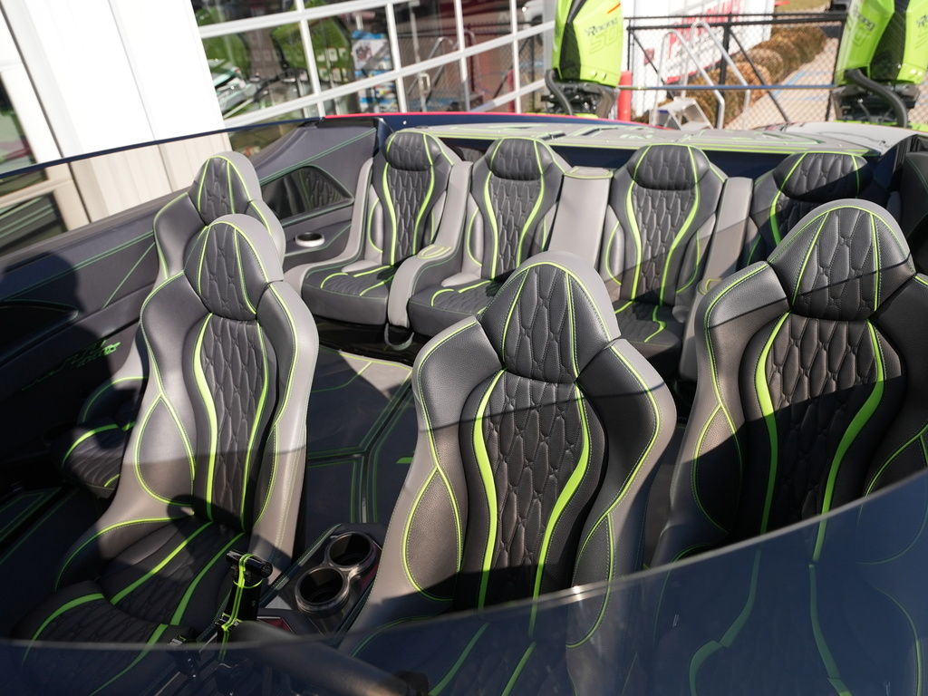 2025 MTI 440X 8-SEATER HEAVILY OPTIONED FOR TWIN MERCURY RACING 500R'S WITH ONLY 95HRS LAMBORGHINI PEARL GREEN CUSTOM PAINT LARGE DASH LAYOUT WITH GARMINS ALL BLACK HARDWARE TINTED WINDSHIELD DUAL HIGH PERFORMANCE BLOWERS REARVIEW CAMERA UNDERWATER SIDE AND REAR LIGHTS RGB SEADEK FLOORING POWER FRONT AND REAR SPEAKER PODS COCKPIT COVER SUNSHADE BRAND NEW MYCO PAINTED TRAILER NEVER USED BOAT SHOWS LIKE NEW