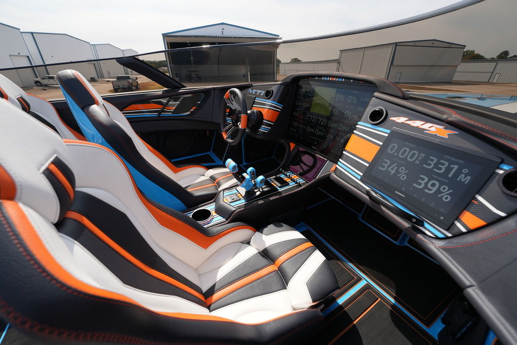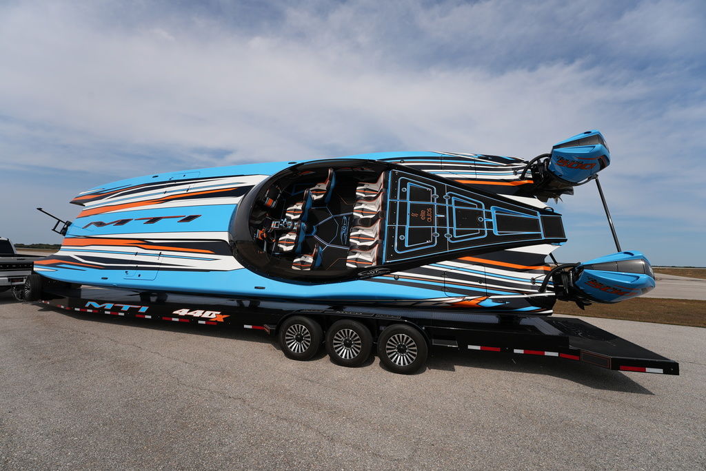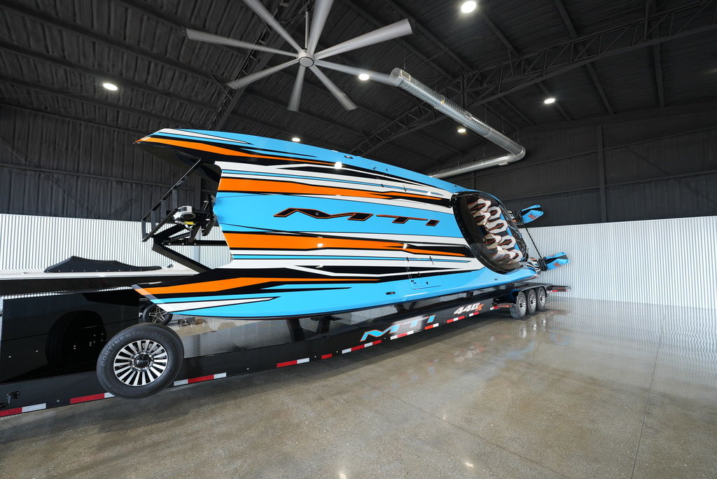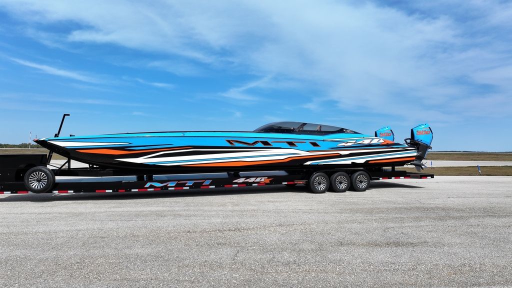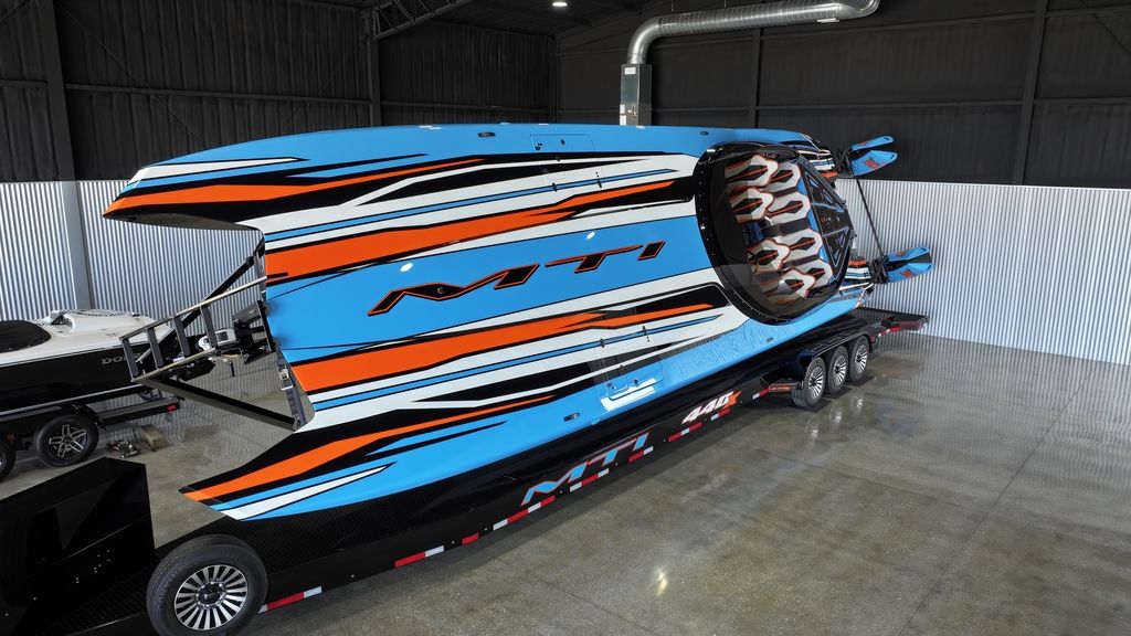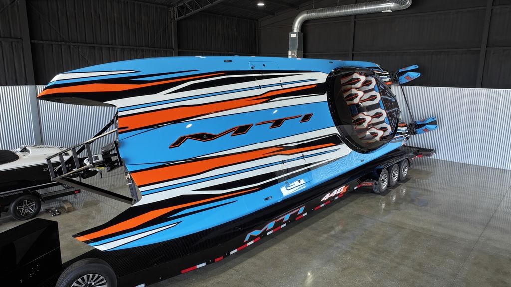 2025 MTI 440X Powered by Twin Mercury Racing 500Rs w/ only 44 hours, Full Carbon Layup, 22inch Garmin Centered in the dash, 2 12inch Garmin screens for driver and passanger, Mercury Vessel View, Dash Blowers for all passangers, Custom Paint Job, Foam Flooring, Accent lighting throughout with underwater lights, Blackout hardware package, Billet Cleats, Fender and Line storage in the deck hatches and aft hatches, HUGE JL Audio Stereo with Fusion Remote, (4) Wireless Phone Charges, Electronic Battery Switches, Carbon Tie Bar, Cockpit cover, Myco TILT Trailer Included!