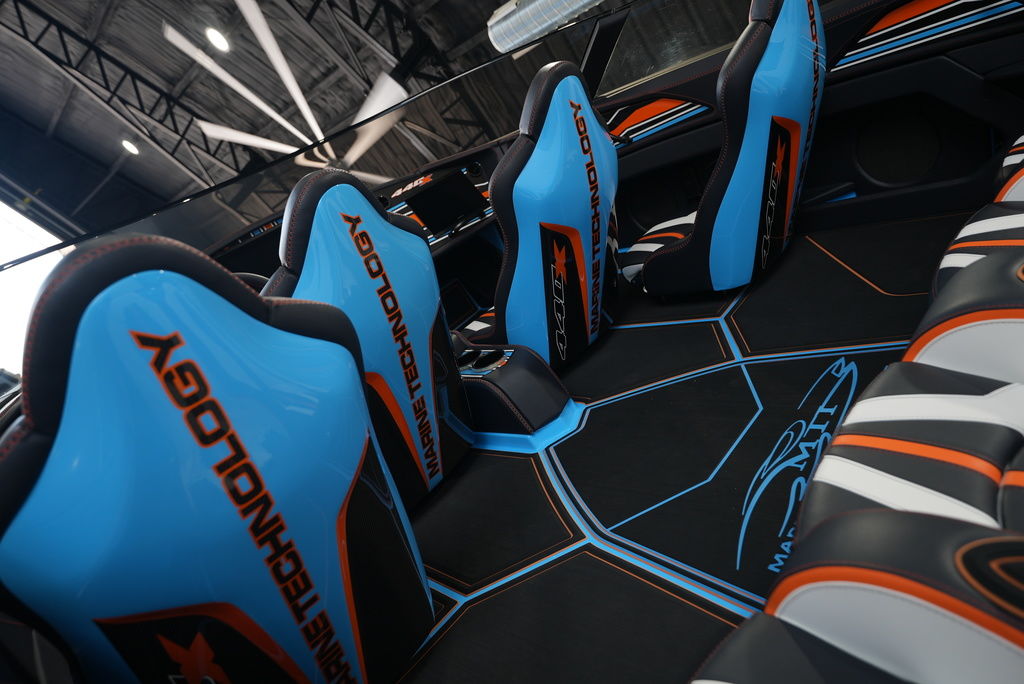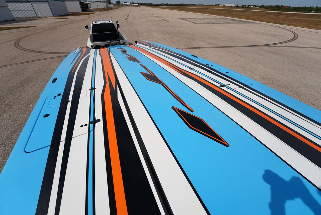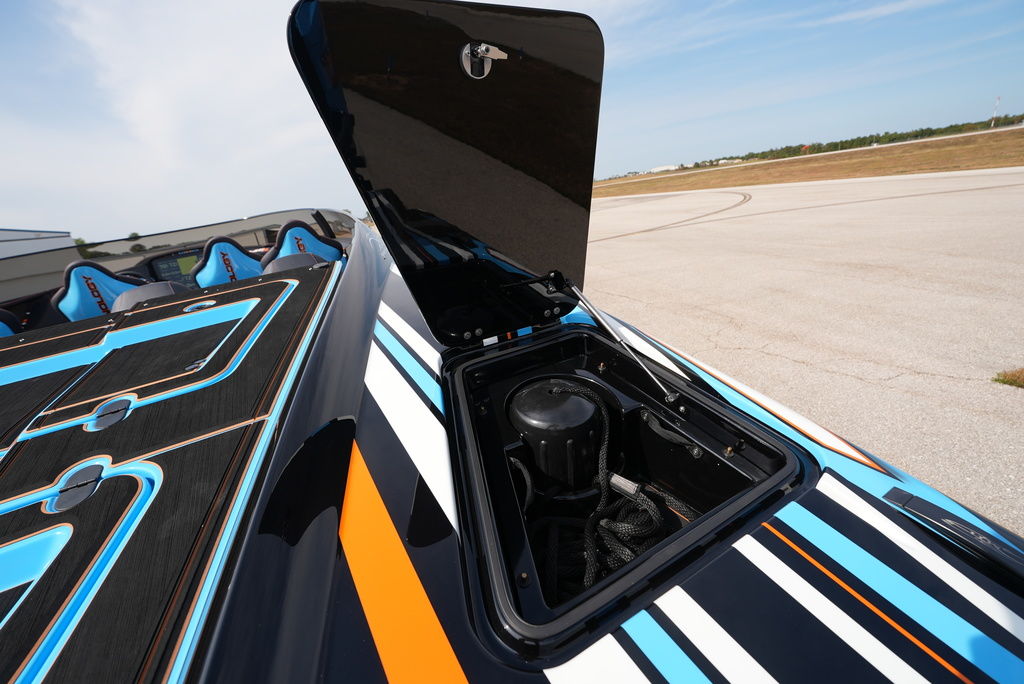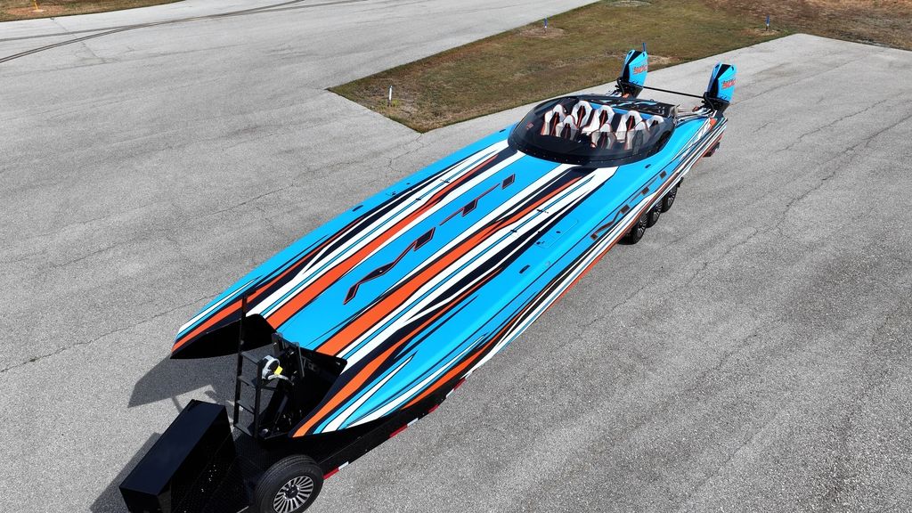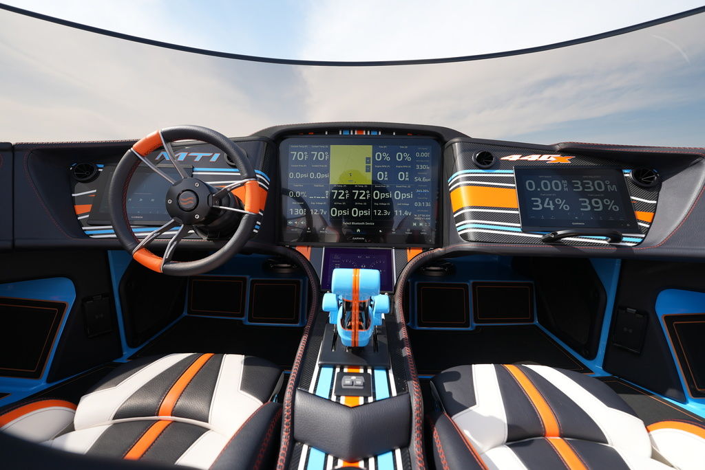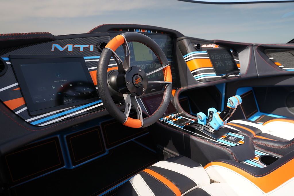 2025 MTI 440X Powered by Twin Mercury Racing 500Rs w/ only 44 hours, Full Carbon Layup, 22inch Garmin Centered in the dash, 2 12inch Garmin screens for driver and passanger, Mercury Vessel View, Dash Blowers for all passangers, Custom Paint Job, Foam Flooring, Accent lighting throughout with underwater lights, Blackout hardware package, Billet Cleats, Fender and Line storage in the deck hatches and aft hatches, HUGE JL Audio Stereo with Fusion Remote, (4) Wireless Phone Charges, Electronic Battery Switches, Carbon Tie Bar, Cockpit cover, Myco TILT Trailer Included!
