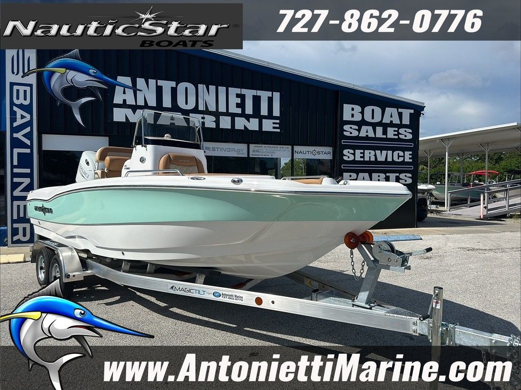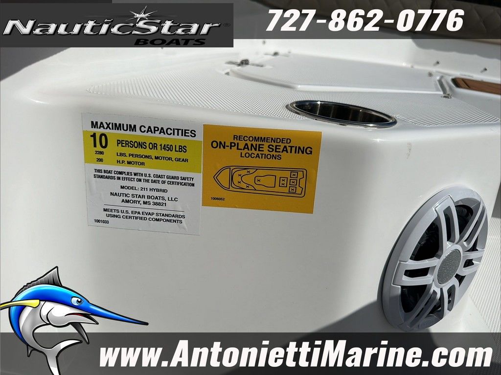 This 211 Hybrid is the perfect host for friends and family. Its ample seating - three-across at aft and five up at bow – make it easy to engage socially on the water. 102" beam and drafts in less than a foot of water
