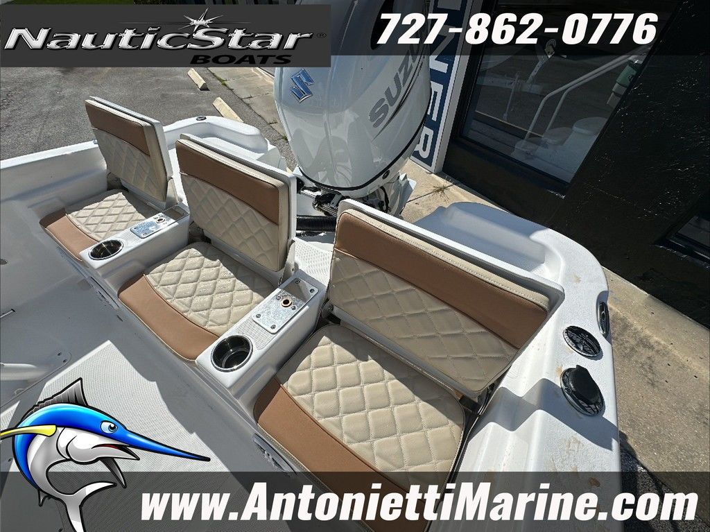 • 3-Across Floding Aft Jump Seats w/ Cast Net under Port Seat, Livewell Under Center Jump Seat, & Battery Storage under Starboard Seat