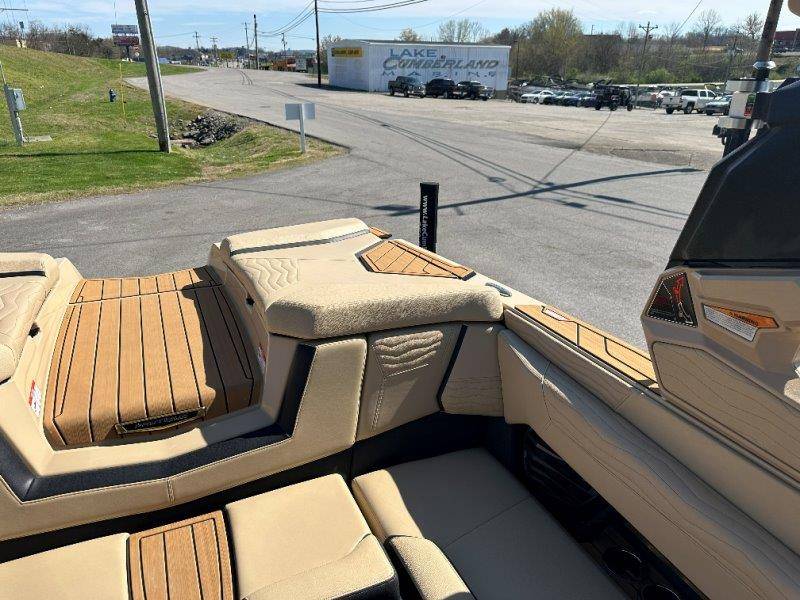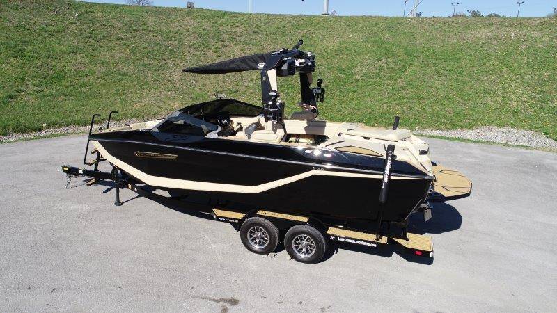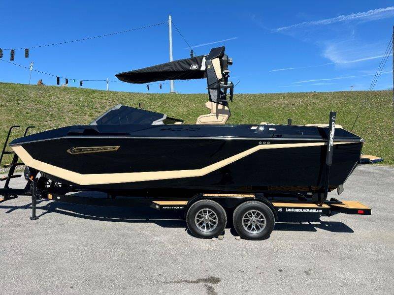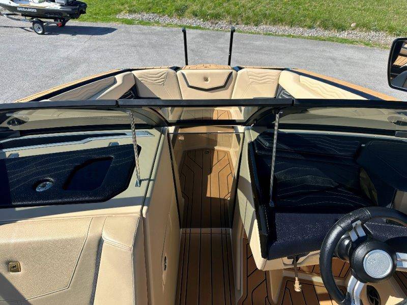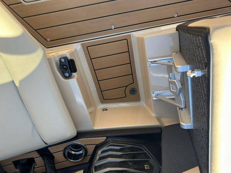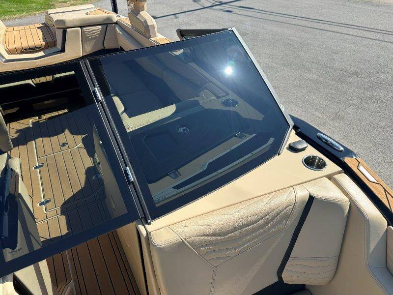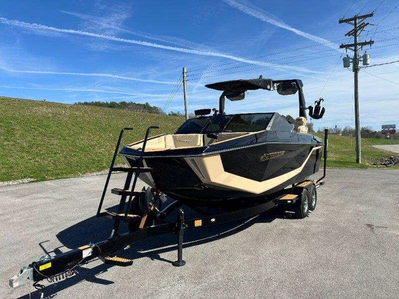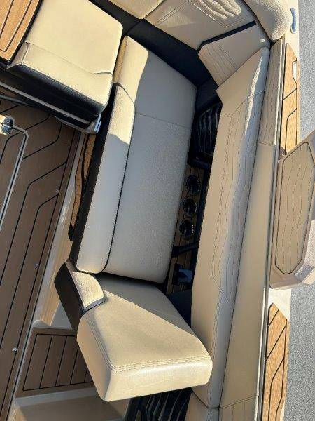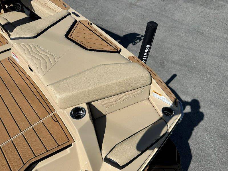 2025 Nautique G23 Standard Features Super Air Nautique G23 Standard Items listed below Nautique Configurable Running Surface with Hydro-Plate Nautique LINC PANORAY with Helm Control, Zero Off GPS Speed Control Nautique Surf System™ with WAVEPLATE & Surf Pipe Exhaust Freshwater Engine Flush System Wake Package(Integrated 2400 lbs Ballast System) Power Management Access with Dual AGM Batteries Lighting-Navigation and Docking Light Array, LED Courtesy Lights Cleats (4), Coolers 2 (Removable), Waste Receptacle Sliding Reversible Stern Seat and Flip-Up Lounge Seat (Port) Transom Seating, Premium Mirror GoPro™ Ready Rotating Tow Point MyNautique™ Connectivity Platform Centennial Package (Chromax, Steering Wheel, Glovebox, Non-Skid) Helm Command Center with Wireless Charger Stereo - JL Audio® M6 Series Elite with DSP(Stereo, 6 Speakers, 10in Subwoofer and 8 Channel Amp) if Stereo JL Audio® M6 Series Studio Elite (Wavefront) not selected Flight Control Tower (Textured Finish) with Nautique Awareness Camera if Flight Control Tower Actuated or Telescoping Tower is not selected Rotating Wakeboard/Wakesurf Racks if Nautique Strapless Board Racks is not selected Engines ZZ6 450HP - 6.2L Direct Injection Bimini - Tower Mounted Tri-Fold with Surf Pockets Extended Sun Shade - Forward Nautique Strapless Board Racks Tower Prep Kit JL Audio M Series Studio(Pre-Wired 8 Channel Amp) Tower Speakers-Dual Spkr Housing JL Audio M6 Series 880x Spkrs(4) Tower Shock 3000N Maps US-Canada Battery Maintenance System 110 (Integrated Charger-Dual Battery) Cover - Platform Cover-Towable/Mooring w/Anti-Pooling(Std or Actuated Tower) Ballast - Supplemental (Additional 1,200 lbs) Heater with Defroster Ladder - Platform Access Lights - Enhanced Courtesy Lighting Package Lights - Underwater LINC Panoray - Navionics Maps Nautique Integrated Steering Assist Wireless Chargers - Magnetic, Pockets and Glovebox Seating - Bow Armrests (Retractable) Seating - Heated Driver's and Loveseat Stereo - JL Audio M6 Series Studio Elite (Wavefront) Stereo - Transom Mounted Remote Control Stereo - XM Satellite Radio Antenna and Receiver Walk-Thru Air-Dam Walk-Thru Air-Dam (Smoked Acrylic Pocket Door) Chromax Badging Legacy Gold Chrome Finish with Illusion Frost Interior Deck Color SAHARA SAND Forward Accent Color JET BLACK