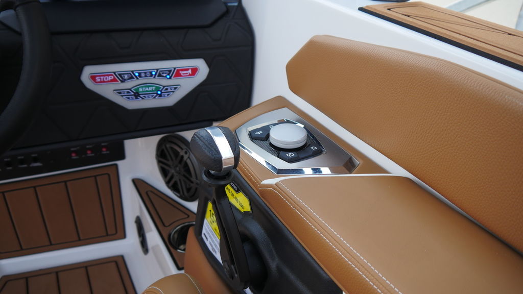 HELM COMMAND™- The Helm Command rotary dial is ergonomically placed allowing the driver to easily navigate screens and choose settings on the LINC Panoray Touchscreen. Located on the armrest directly above the throttle, you're able to easily breeze through menus and select the setting or configuration you need in your 2025 GS22.