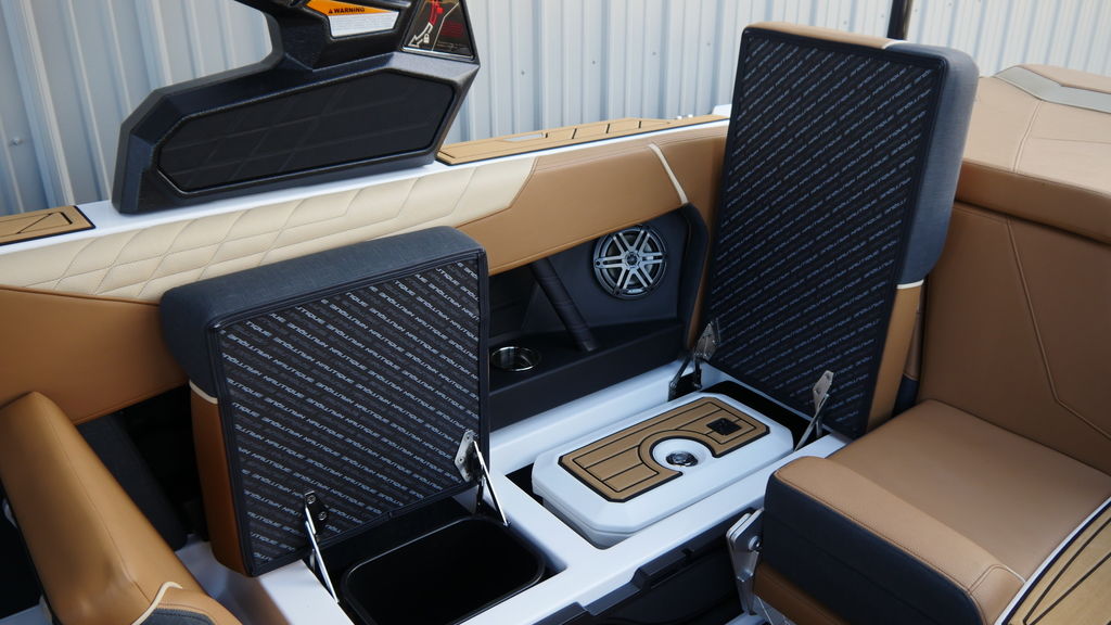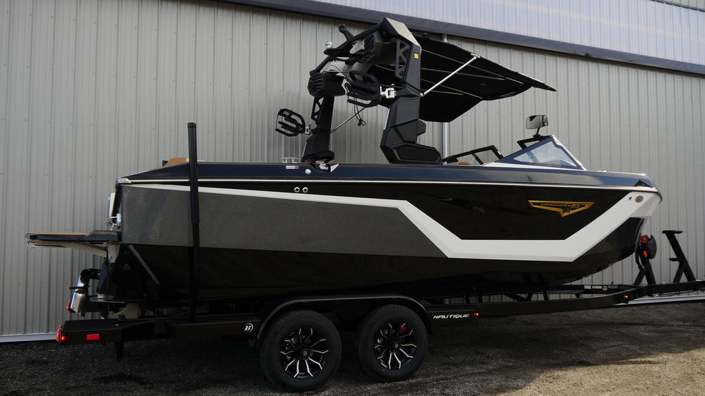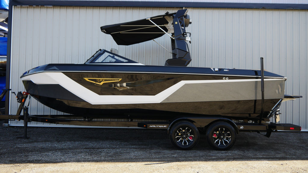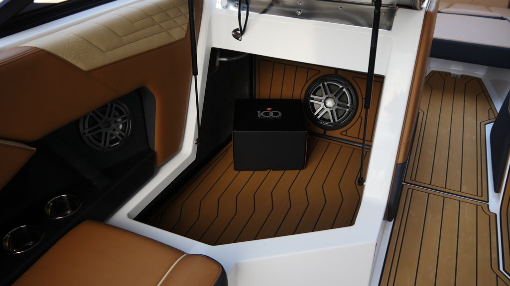 Nautique Configurable Running Surface with Hydro-Gate, Nautique Linc Panoray with Helm Control, Zero Off GPS Speed Control, Nautique Surf System™ with Waveplate & Surf Pipe Exhaust, Flight Control Tower (Textured Finish) with Nautique Awareness Camera, Freshwater Engine Flush System, Wake Package (Integrated Ballast System 2,650 LBS), Cleats (4), LED Courtesy Lighting, Removable Cooler, Waste Receptacle, Mynautique™ Connectivity Platform, Premium Mirror, Sliding Reversible Stern Seat and Flip-Up Lounge Seat, Transom Seating, Gopro™ Ready Rotating Tow Point, Centennial Package (Chromax, Steering Wheel, Glovebox, Non-Skid), Rotating Wakeboard/Wakesurf Racks if Nautique Strapless Board Racks not Selected, Stereo - JL Audio® M3 Series (Stereo, 2 Channel Amp, 4 M3 Speakers) if Stereo M3 Series Studio Premiere is not Selected