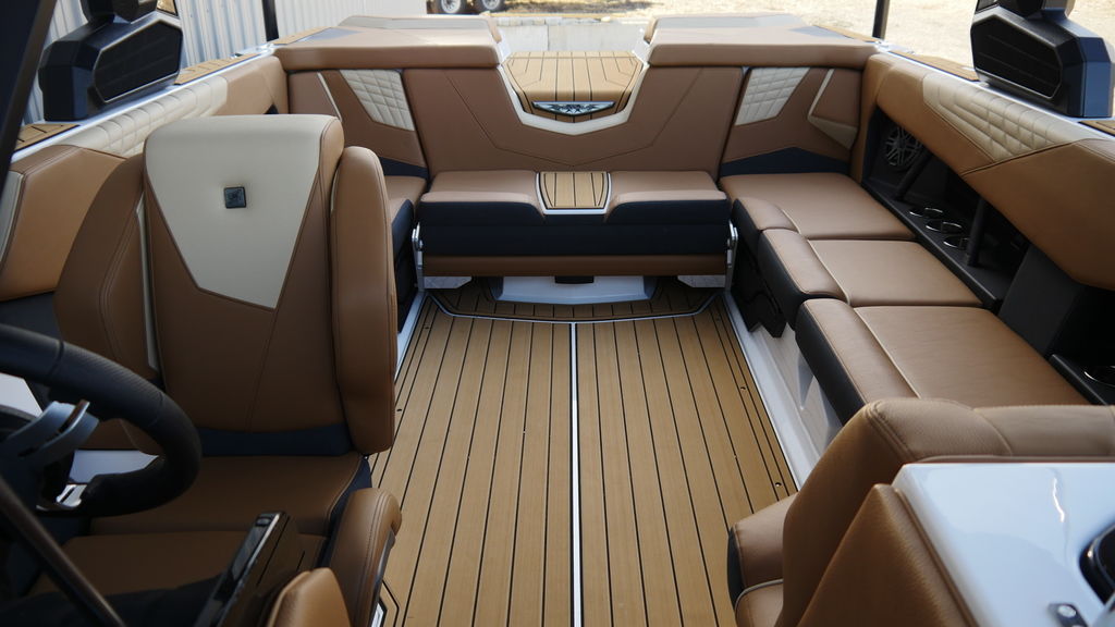 - Stepping into the S23 reveals an interior that prioritizes comfort and functionality. The helm area of this model is pure Nautique, featuring an offset helm layout designed for ergonomics, great visibility, and ease-of-use. An adaptable lounge caters to any activity shared with you and your crew, while the expansive bow offers more space than any other traditional bows within its class.