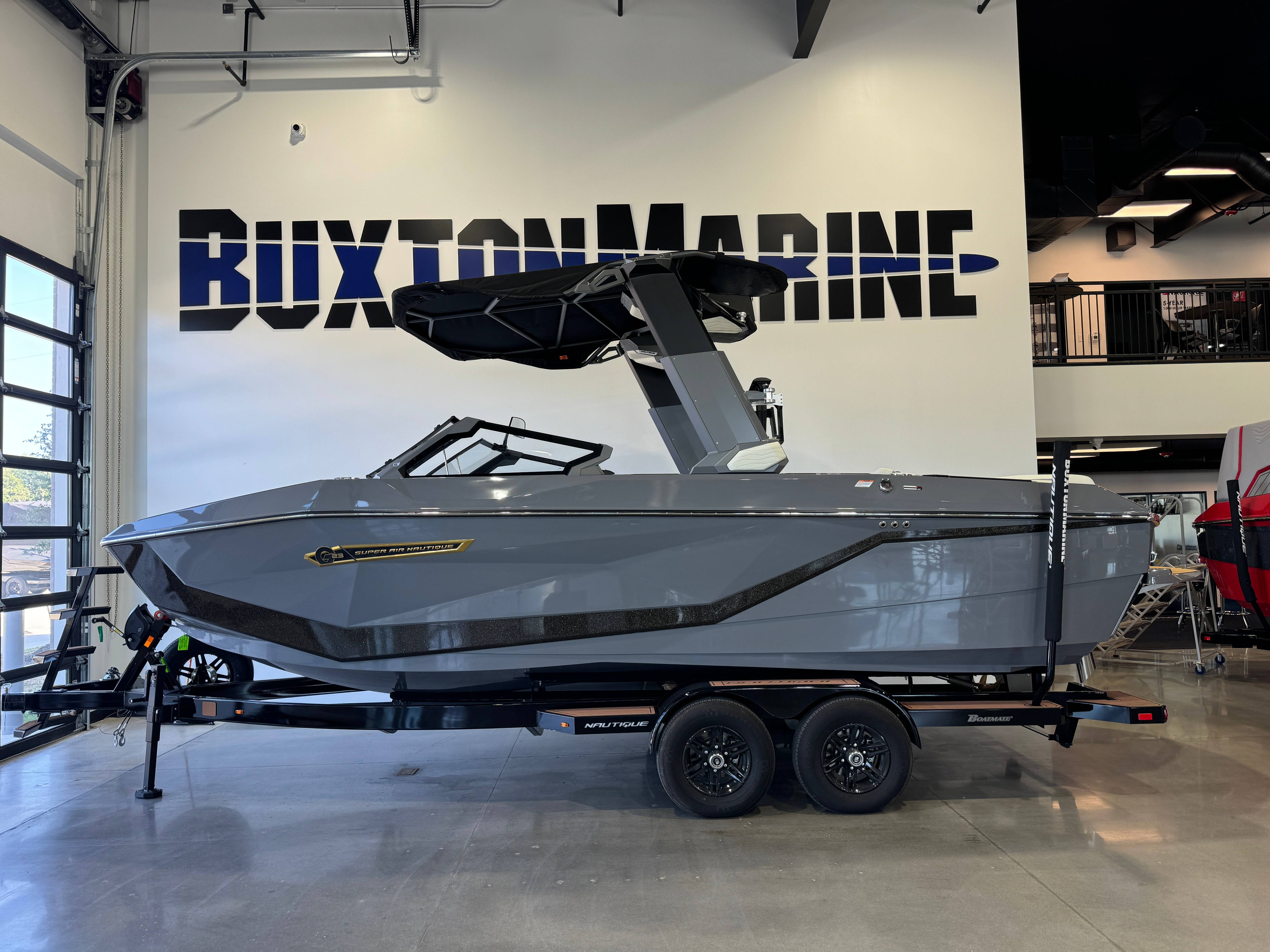2025 Super Air Nautique G23 ZZ6 450HP - 6.2L Direct Injection Telescoping Flight Control Tower System Tower Prep Kit JL Audio M Series Studio(Pre-Wired 8 Channel Amp) Maps US-Canada Battery Maintenance System 110 (Integrated Charger-Dual Battery) Cover - Platform Cover-Telescoping Tower Towable/Mooring w/Anti-Pooling(TowerDown) Ballast - Supplemental (Additional 1,200 lbs) Ladder - Platform Access Lights - Enhanced Courtesy Lighting Package Lights - Underwater LINC Panoray - Navionics Maps Nautique Integrated Steering Assist Pillows 1 Set (2 Per Set) Wireless Chargers - Magnetic, Pockets and Glovebox Seating - Actuated Helm Seat, Height Adjustable Seating - Bow Filler Cushion Stereo - JL Audio M6 Series Studio Elite (Wavefront) Stereo - Transom Mounted Remote Control 2025 Super Air Nautique G23 Standard Items listed below Nautique Configurable Running Surface with Hydro-Plate Nautique LINC PANORAY with Helm Control, Zero Off GPS Speed Control Nautique Surf System™ with WAVEPLATE & Surf Pipe Exhaust Freshwater Engine Flush System Wake Package(Integrated 2400 lbs Ballast System) Power Management Access with Dual AGM Batteries Lighting-Navigation and Docking Light Array, LED Courtesy Lights Cleats (4), Coolers 2 (Removable), Waste Receptacle Sliding Reversible Stern Seat and Flip-Up Lounge Seat (Port) Transom Seating, Premium Mirror GoPro™ Ready Rotating Tow Point MyNautique™ Connectivity Platform Centennial Package (Chromax, Steering Wheel, Glovebox, Non-Skid) Helm Command Center with Wireless Charger Stereo - JL Audio® M6 Series Elite with DSP (Stereo, 6 Speakers, 10in Subwoofer and 8 Channel Amp) if Stereo JL Audio® M6 Series Studio Elite (Wavefront) not selected Flight Control Tower (Textured Finish) with Nautique Awareness Camera if Flight Control Tower Actuated or Telescoping Tower is not selected Rotating Wakeboard/Wakesurf Racks if Nautique Strapless Board Racks is not selected This boat is currently available for sale at Buxton Marine in Lewisville, Texas . Contact us today for more details or to schedule a showing! At Buxton Marine, we believe the right rig makes all the difference. With top-tier boats, an expert team, and a family-first approach, everything we do is focused on helping you and your family make the most of your time on the water. It all adds up to one thing for us: good times ahead!!! Buxton Marine is proud to be the largest Nautique boat dealer in the United States , offering an unmatched selection of industry-leading tow boats. From sales and service to financing and our fully stocked pro shop, the Buxton Crew is known as the best in the business. We stand behind every boat we sell, whether you’re shopping for a brand-new Nautique or a high-quality pre-owned rig. Family-owned and operated for more than 35 years , Buxton Marine is built on relationships, trust, and long-term service. When you purchase a boat from Buxton, you’re not just buying a boat—you’re joining the Buxton Nation! Buxton Marine | (972) 436-7412 | 101 E Valley Ridge Blvd, Lewisville, TX 75057