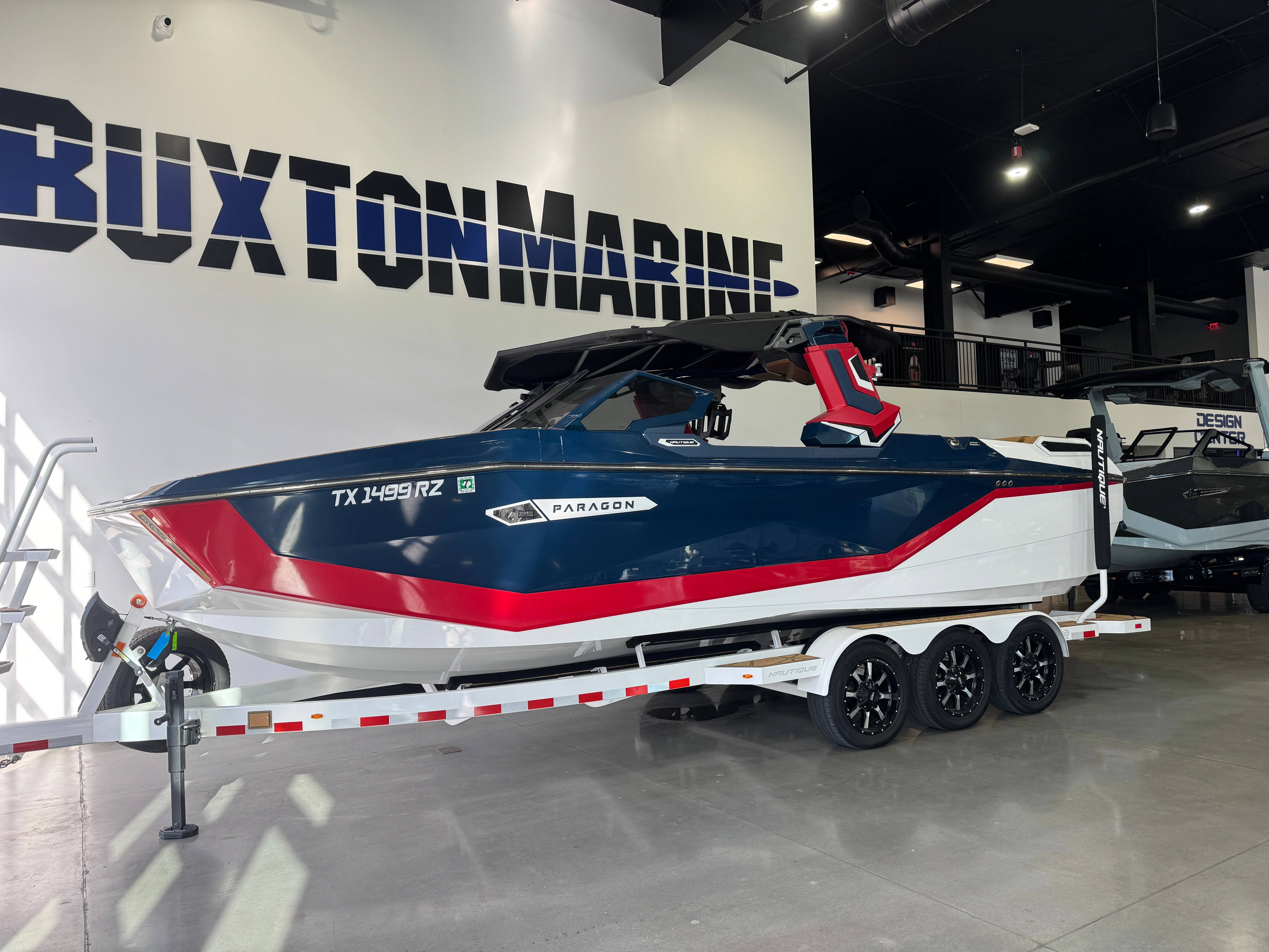 2025 Super Air Nautique Paragon 25 Standard Items Listed Below Nautique Configurable Running Surface with Hydro-Plate Nautique Dual LINC PANORAY with Helm Control, Zero Off, MyNautique™ Connectivity Platform Nautique Surf System™ with WAVEPLATE & Surf Pipe Exhaust & Integrated Ballast (2,500 lbs) Paragon Telescoping Flight Control Tower System including: Nautique Awareness Camera, Bimini Top with Surf Pockets Stereo - JL Audio® M6 Series Studio Elite with Wavefront™ (Includes: Wavefront™, Dual Subwoofers (12"), Monoblock Subwoofer Amplifier) Tower Speakers - Dual Speaker Housing, JL Audio® M6 Series 880x Speakers (4) Stereo - Transom Mounted Remote Control Stereo - JL Audio® Wake Sub Nautique Integrated Steering Assist Helm Command Center with Wireless Charger Enhanced Courtesy Lighting Package (Customized Colors on Illuminated Cupholders, Courtesy Lights and Interior Chromax Badging) LED Lighting - Docking Light Array; Courtesy Lights; Underwater Lights Phender Pro - Boat Fender Attachment System (6) Freshwater Engine Flush System Power Management Including 3 AGM Batteries, with Battery Charger Coolers (Removable In-Floor and Transom),Waste Receptacle Sliding Reversible Stern Seat, Flip-Up Lounge Seat (Port) and Convertible Transom Seating. Seating - Bow Armrests (Retractable) Seating - Actuated Helm Seat and Height Adjustable Tandem Spoke Leather Steering Wheel GoPro™ Ready Rotating Tow Point Walk-Thru Air-Dam (Smoked Acrylic Pocket Door) Ladder - Platform Access Cleats (4) Premium Mirror Board Management System Towable/Mooring Cover (Tower Down) and Platform Cover Centennial Package (Chromax, Steering Wheel, Glovebox, Non-Skid, Projector) This boat is currently available for sale at Buxton Marine in Lewisville, Texas . Contact us today for more details or to schedule a showing! At Buxton Marine, we believe the right rig makes all the difference. With top-tier boats, an expert team, and a family-first approach, everything we do is focused on helping you and your family make the most of your time on the water. It all adds up to one thing for us: good times ahead!!! Buxton Marine is proud to be the largest Nautique boat dealer in the United States , offering an unmatched selection of industry-leading tow boats. From sales and service to financing and our fully stocked pro shop, the Buxton Crew is known as the best in the business. We stand behind every boat we sell, whether you’re shopping for a brand-new Nautique or a high-quality pre-owned rig. Family-owned and operated for more than 35 years , Buxton Marine is built on relationships, trust, and long-term service. When you purchase a boat from Buxton, you’re not just buying a boat—you’re joining the Buxton Nation! Buxton Marine | (972) 436-7412 | 101 E Valley Ridge Blvd, Lewisville, TX 75057