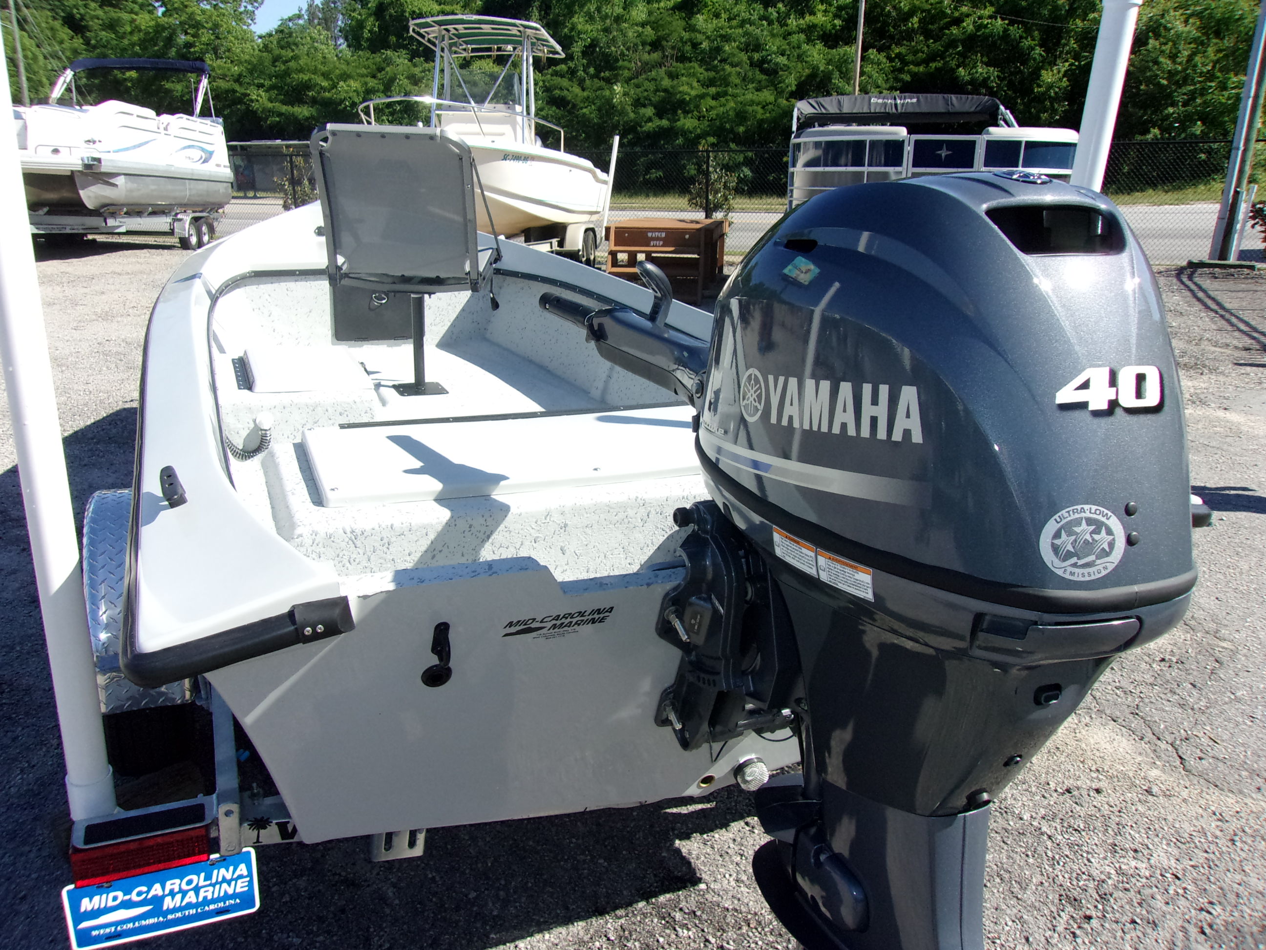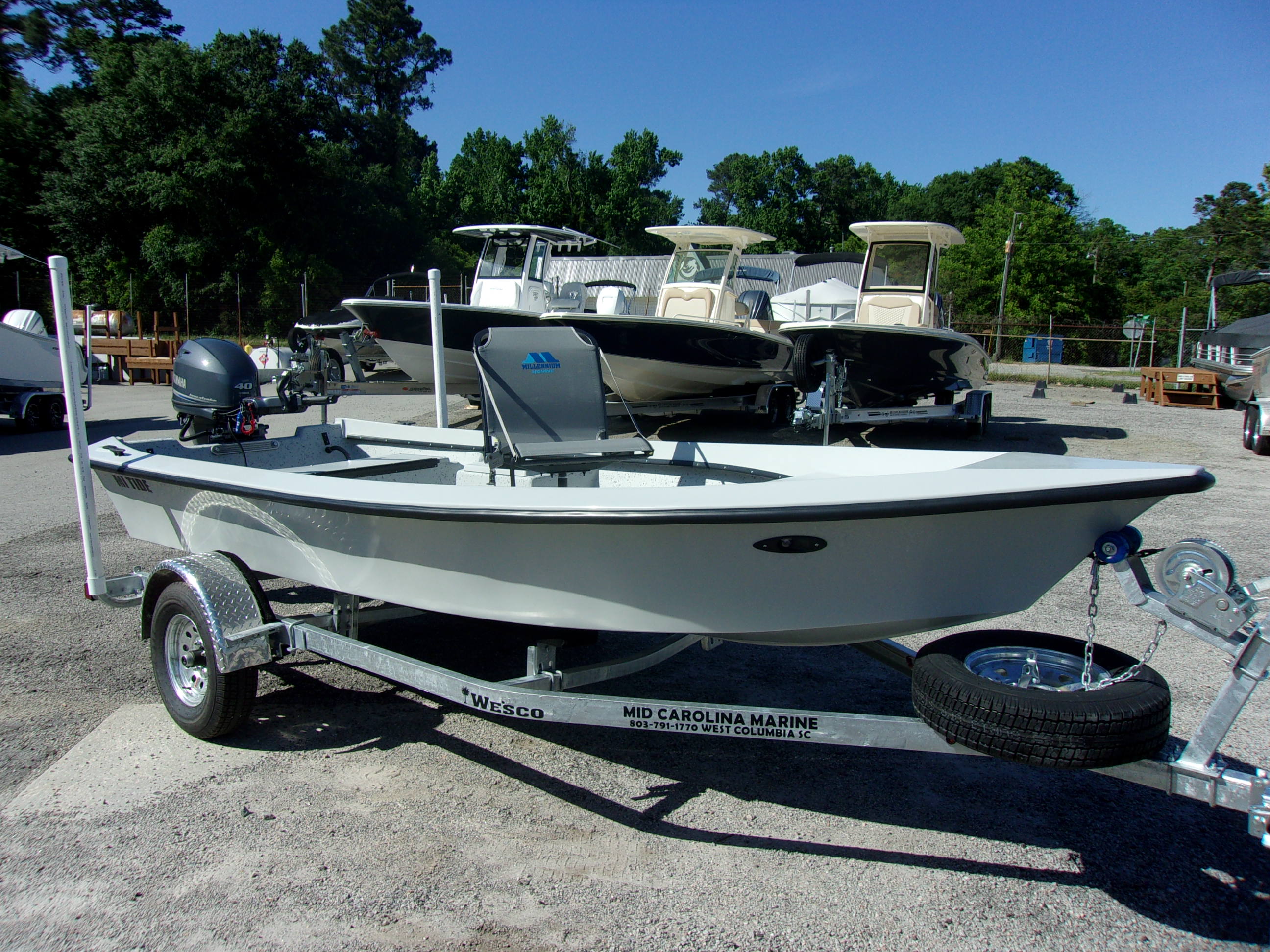 2025 Mi-Tide 1503 with Yamaha F-40 LA with power tilt/trim and Wesco galvanized trailer! This boat features a live well with aerator, black powder coated hardware, metal floor base plate, slide seat track, Millennium seat with swing tongue on the trailer!