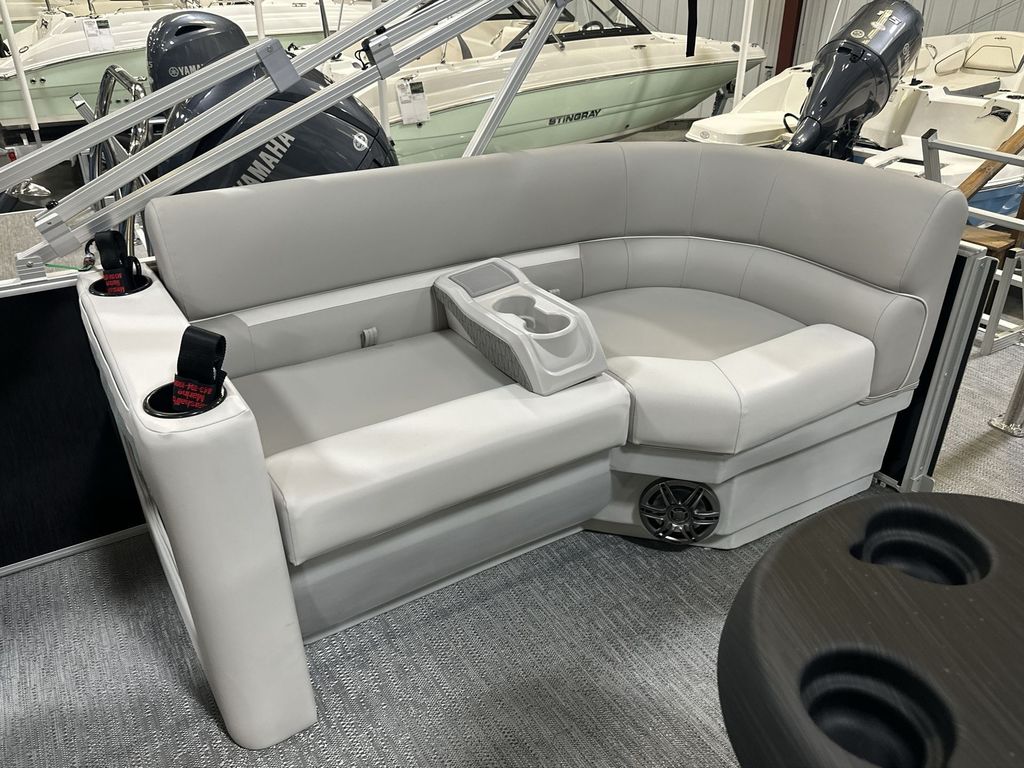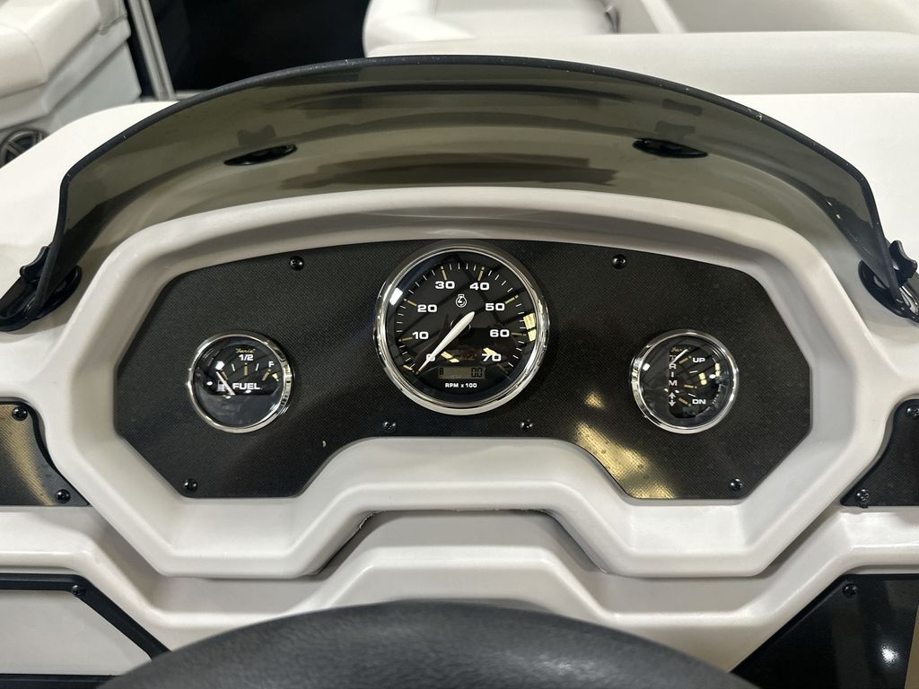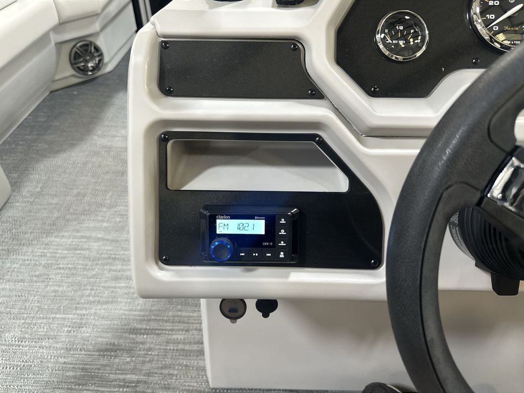 - Helm station - Cooler storage: cup holders: switch panel: tachometer & hour meter: fuel gauge: voltmeter: 12 volt outlet: USB (charging only): horn