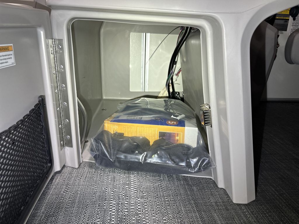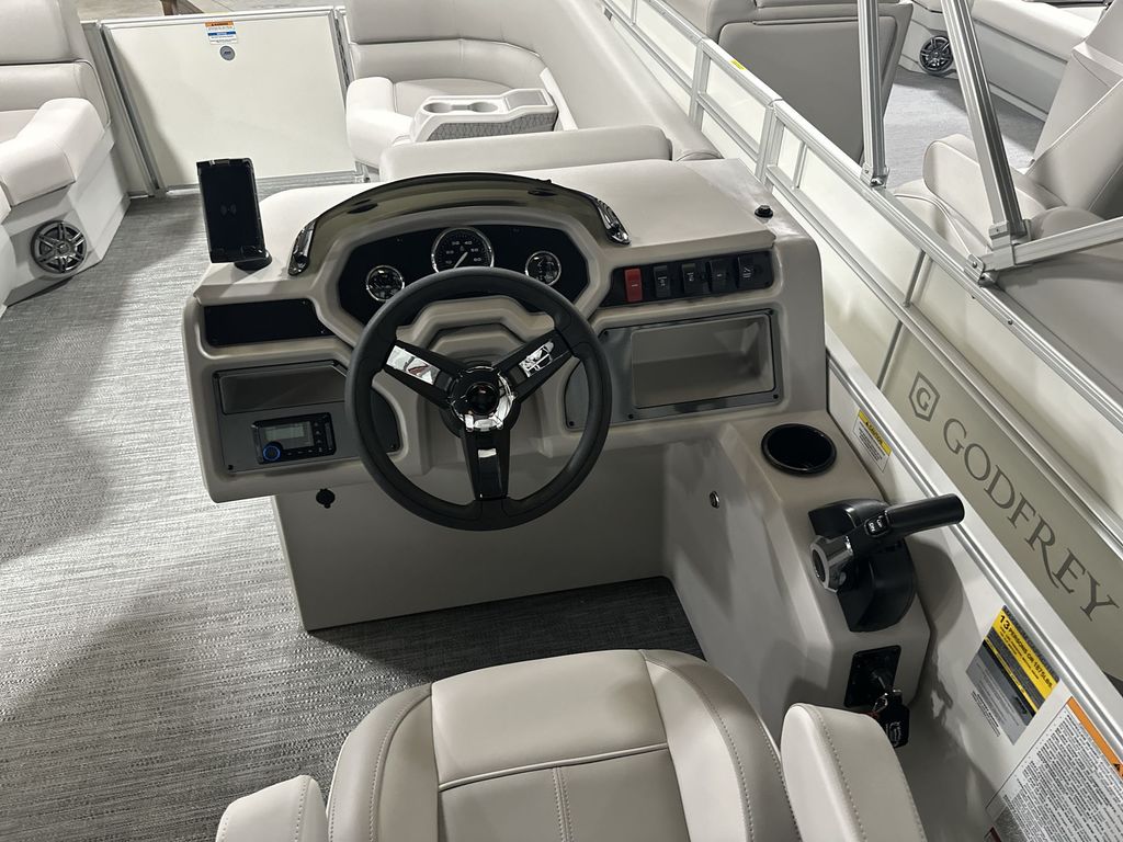 - Helm station - Cooler storage: cup holders: switch panel: tachometer & hour meter: fuel gauge: voltmeter: 12 volt outlet: USB (charging only): horn