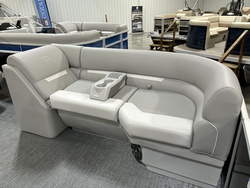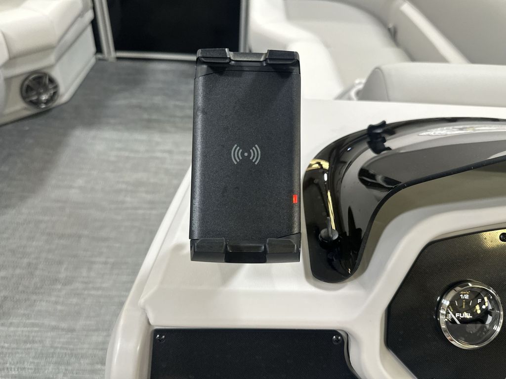 - Helm station - Cooler storage: cup holders: switch panel: tachometer & hour meter: fuel gauge: voltmeter: 12 volt outlet: USB (charging only): horn