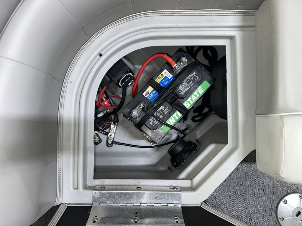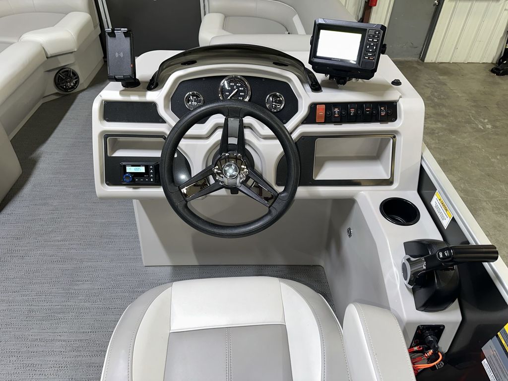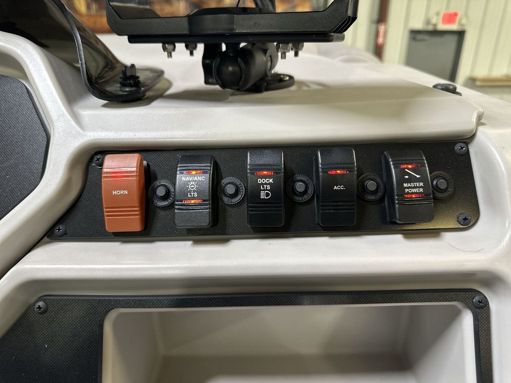 - Helm station - Cooler storage: cup holders: switch panel: tachometer & hour meter: fuel gauge: voltmeter: 12 volt outlet: USB (charging only): horn