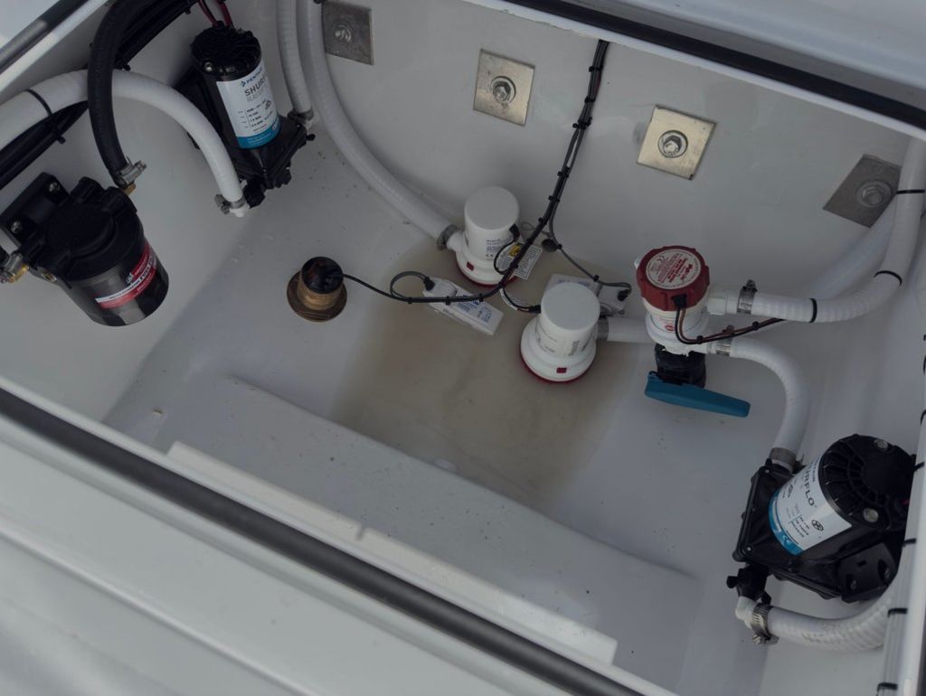 - 145-gallon fuel tank, 20-gallon freshwater tank, saltwater wash down