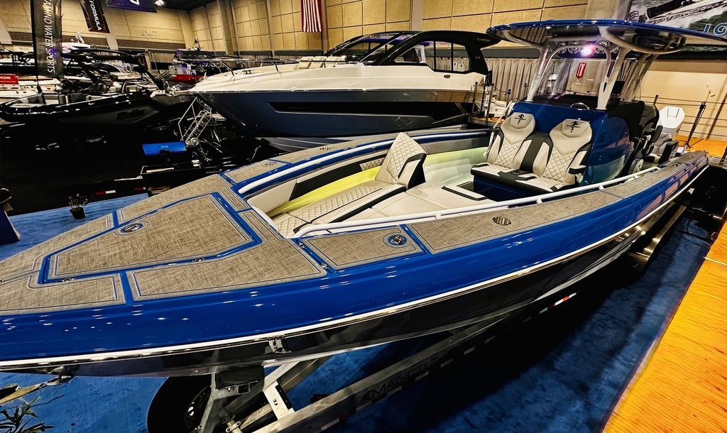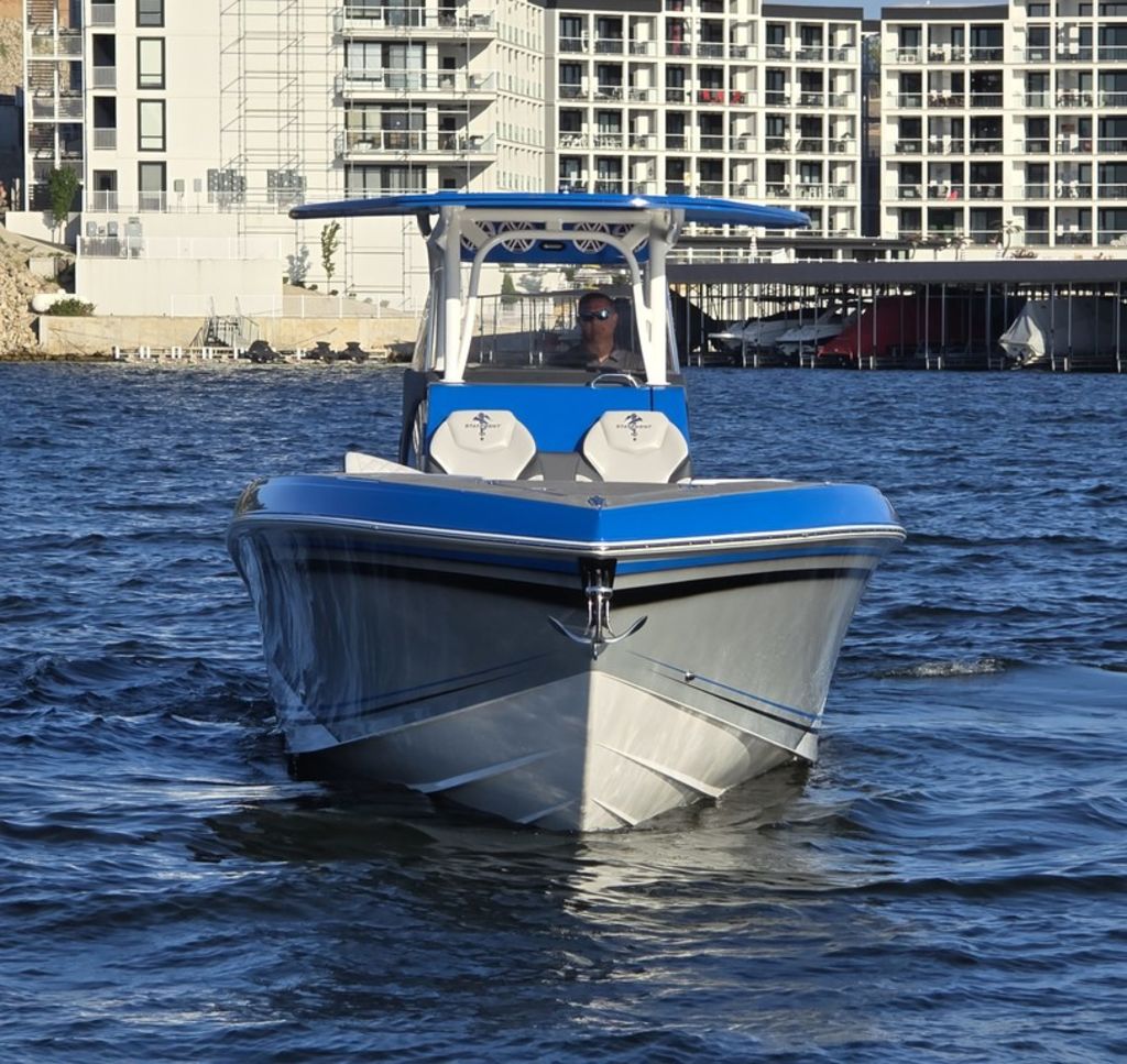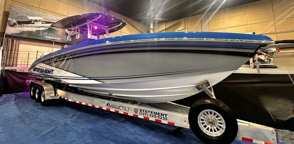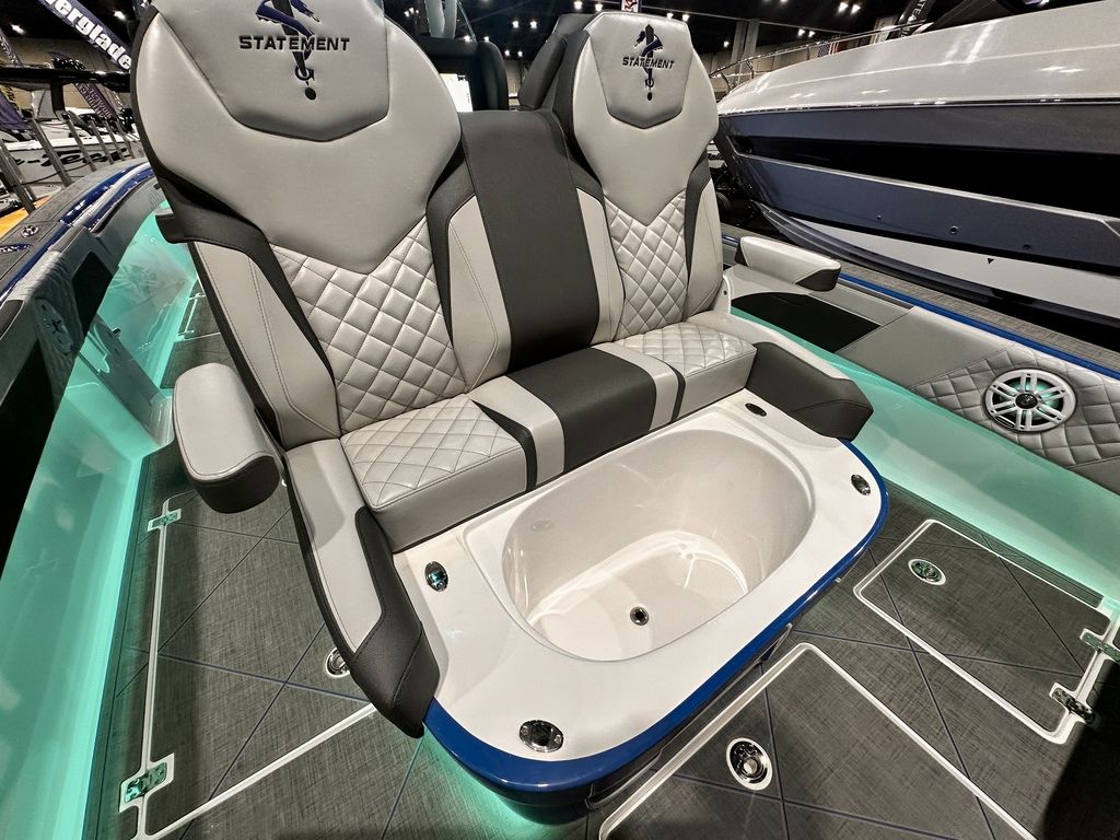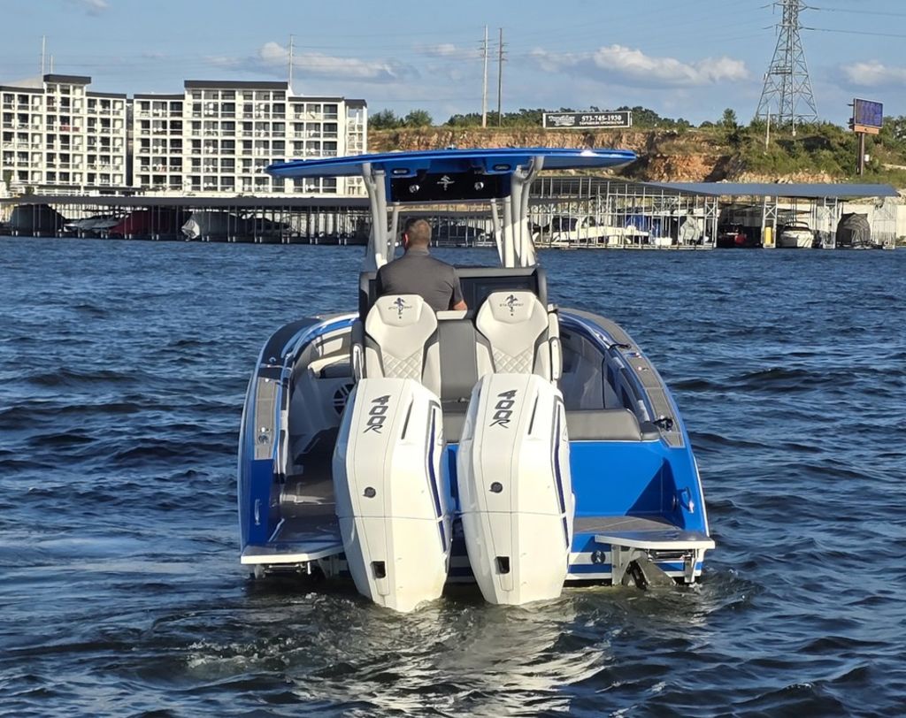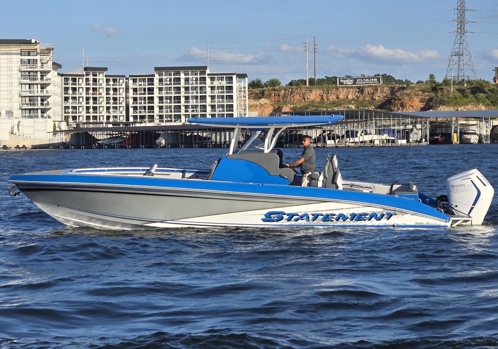 2025 Statement 350 Center Console with twin Mercury 400 HP Racing Motors. Built to impress, this boat is a perfect blend of cutting-edge design, thrilling speed, and unparalleled comfort. call Iguana Marine group 573-355-5027