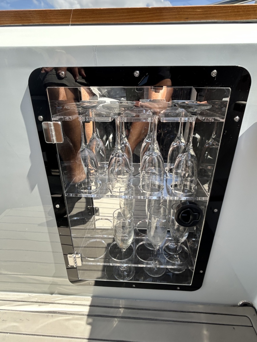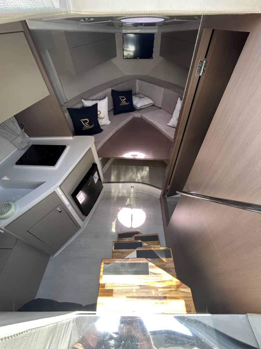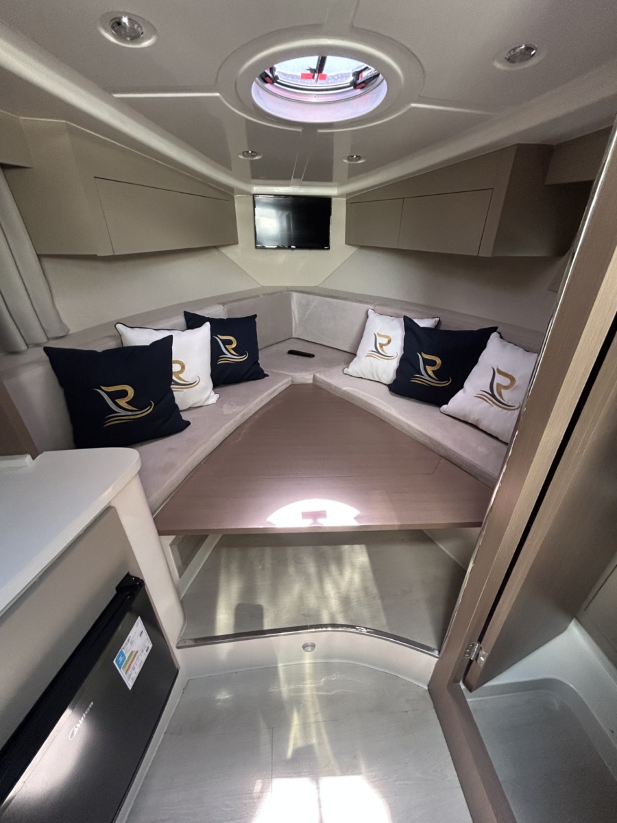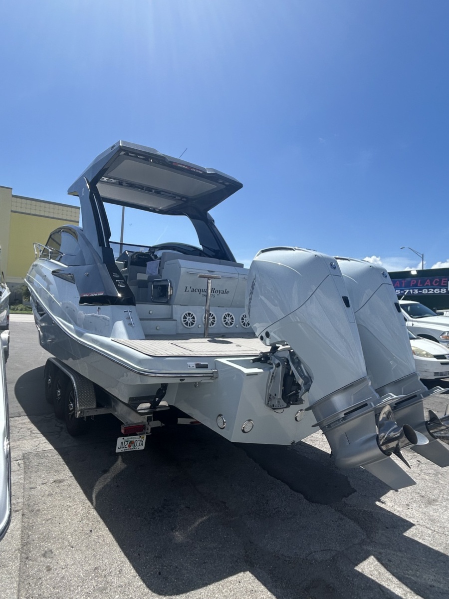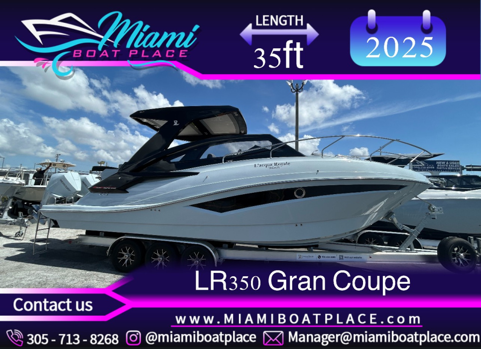 Introduced in 2021, the LR350 Gran Coupe by L’acqua Royale Yachts is a premium 35-foot vessel, seating 14 by day and sleeping 4 at night. It cruises at 45 mph with a fuel-efficient hull, consuming approximately 15.85 gallons/hour. Features include a fiberglass hull, 2 Mercury 300HP outboard engines, and high-end amenities like LED lighting, freshwater systems, and ample storage—ensuring a perfect blend of performance, comfort, and style.