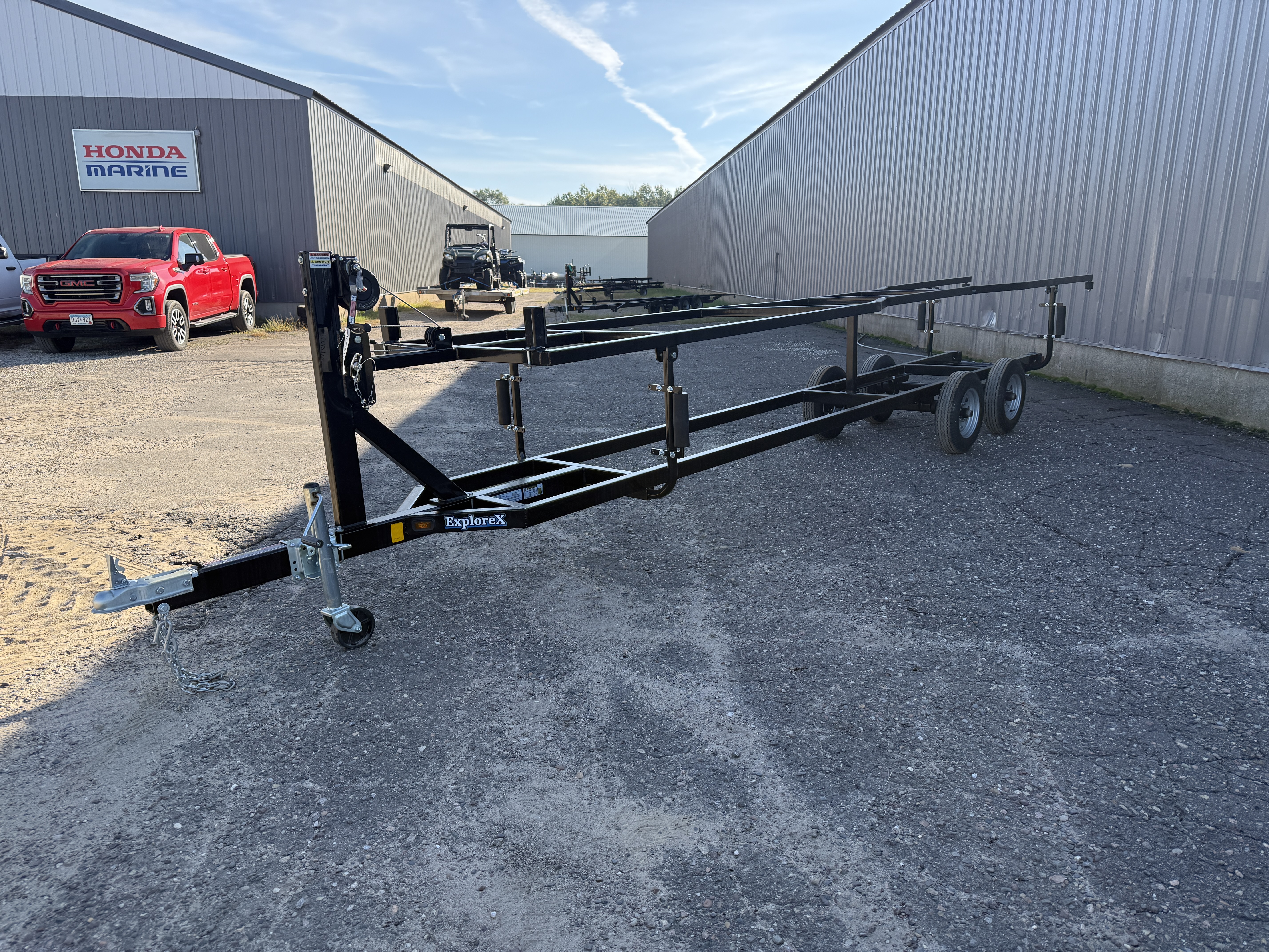 Reserve Yours Today! Only A Few Left In Stock. Brand New Explorer X Tandem Axle PSL 18-20' Scissors Pontoon Trailers. Fits 18' up to 20' Long Pontoons. Has LED Lights, Guide Rollers, & Tongue Jack Is Included In Sale Price.