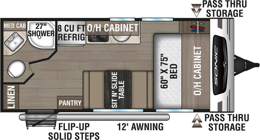 Whether you are heading to the lake, the campground, or your next road trip destination, the Sonic SL160VFB delivers comfort, simplicity, and value in a lightweight travel trailer.