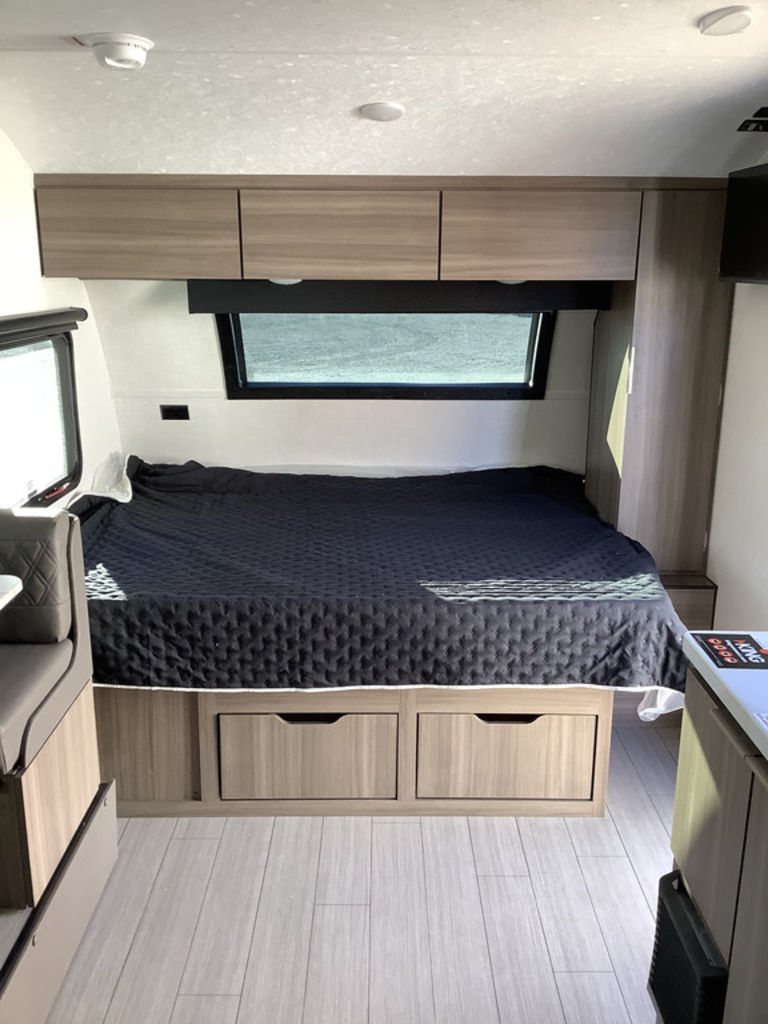 Inside, you’ll find a bright and functional living area with comfortable seating, a well-equipped kitchen, and thoughtful storage throughout. The smart floorplan makes this trailer ideal for weekend getaways or longer camping adventures while remaining compact enough for a wide range of tow vehicles.