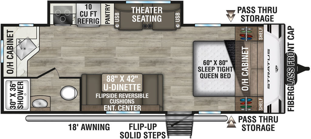 Whether you are heading to the lake, campground, or your next road trip destination, the Stratus SR221VRK delivers comfort, versatility, and value in a well-designed travel trailer.