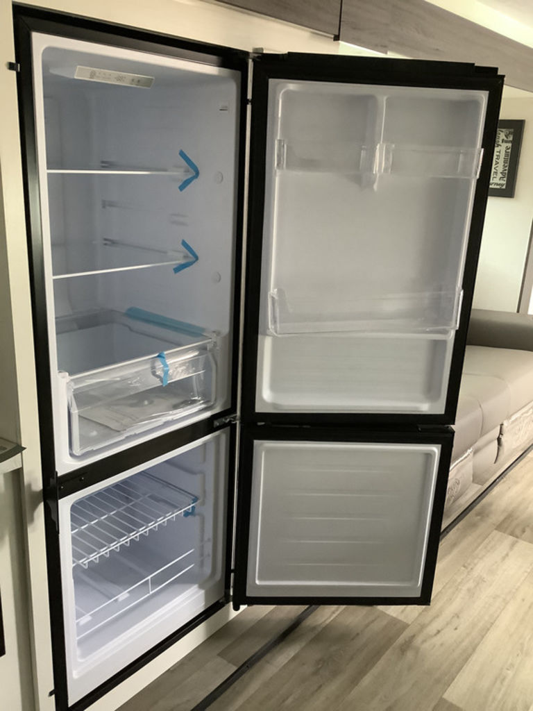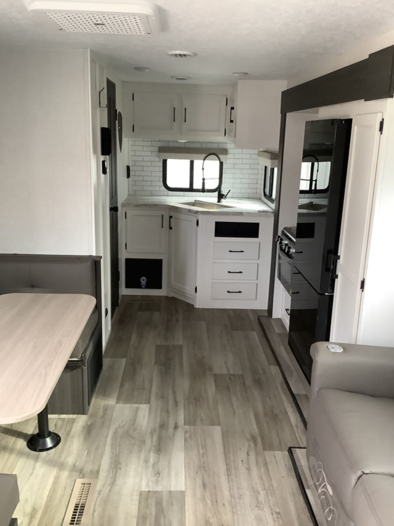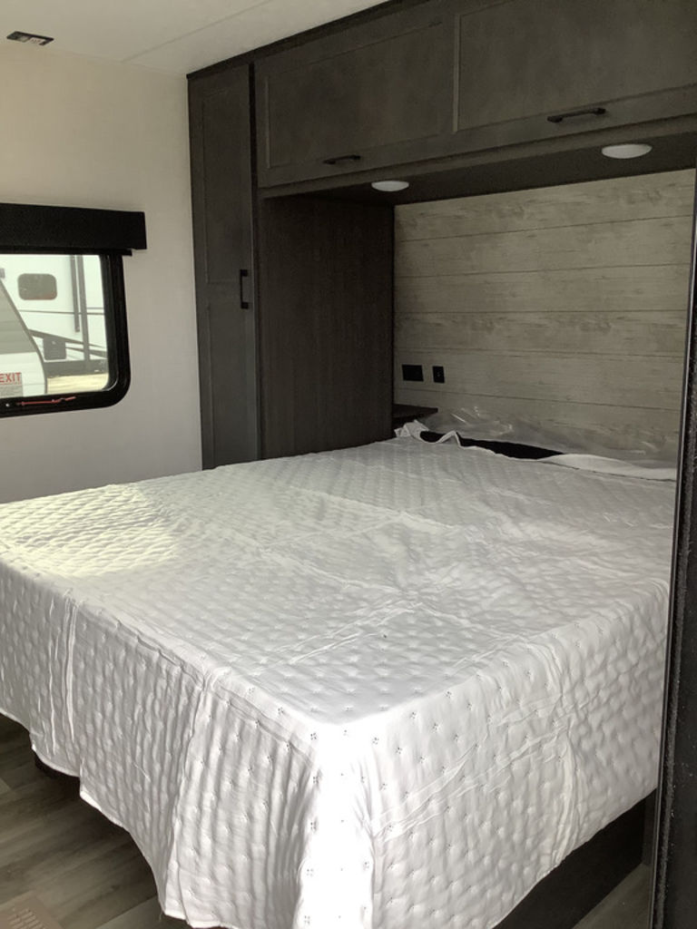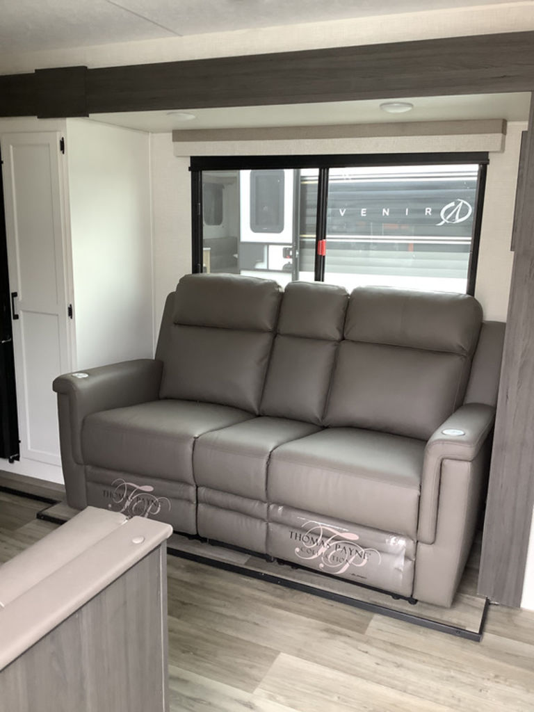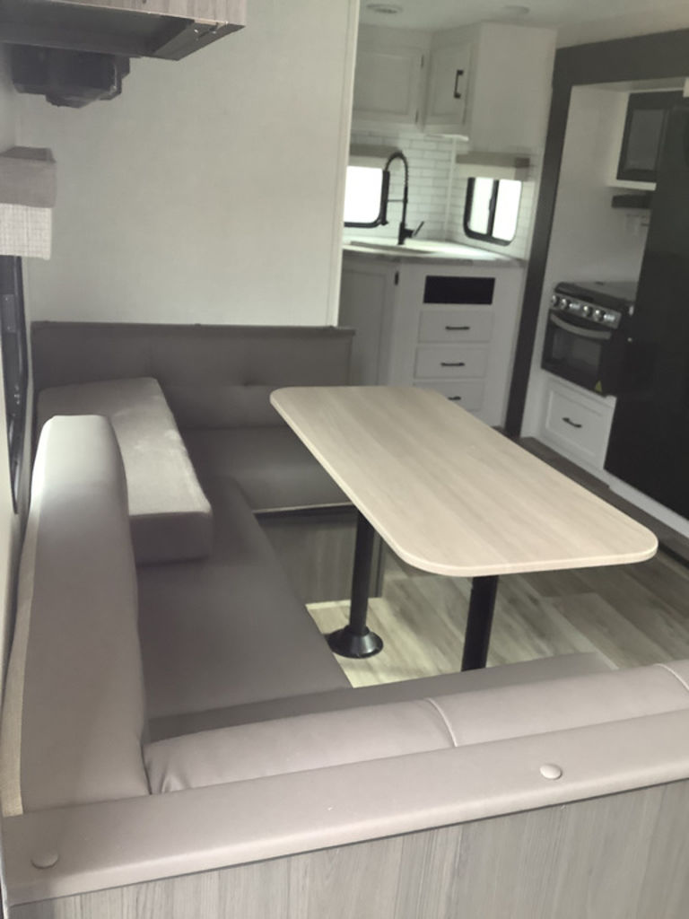 Inside, you will find a bright and inviting interior with comfortable seating, a fully equipped kitchen, and residential-style finishes throughout. The well-designed layout maximizes usable space while providing a comfortable sleeping area and practical features built for real-world travel.