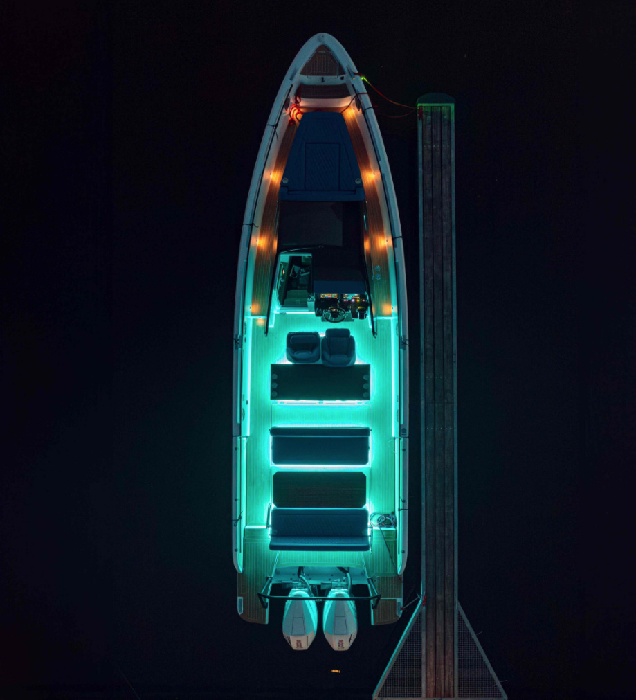 Get ready to command the water with the V10 Top, a vessel engineered for pure exhilaration. Its super-efficient hull, coupled with the option of up to a blistering 600 horsepower on the transom, delivers the heart-pounding sensation of a race boat, achieving a breathtaking top speed of 60 knots (109 km/h). The V10 Top doesn't just perform; it makes a statement with its sporty character and vibrant color combinations, making it the ultimate choice for high-speed fun and unforgettable adventures.