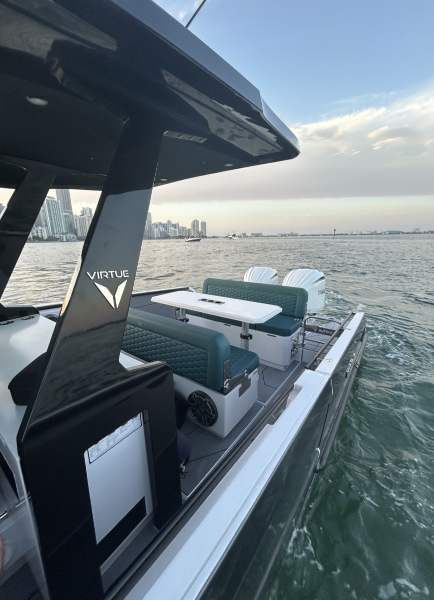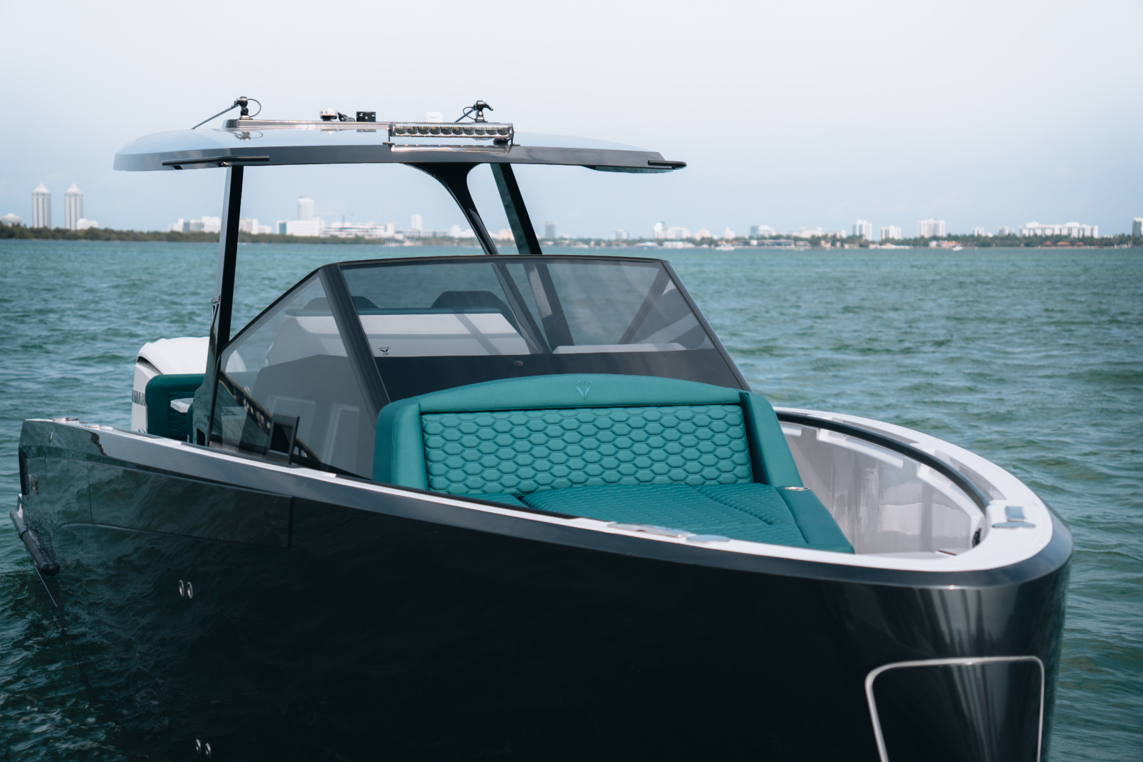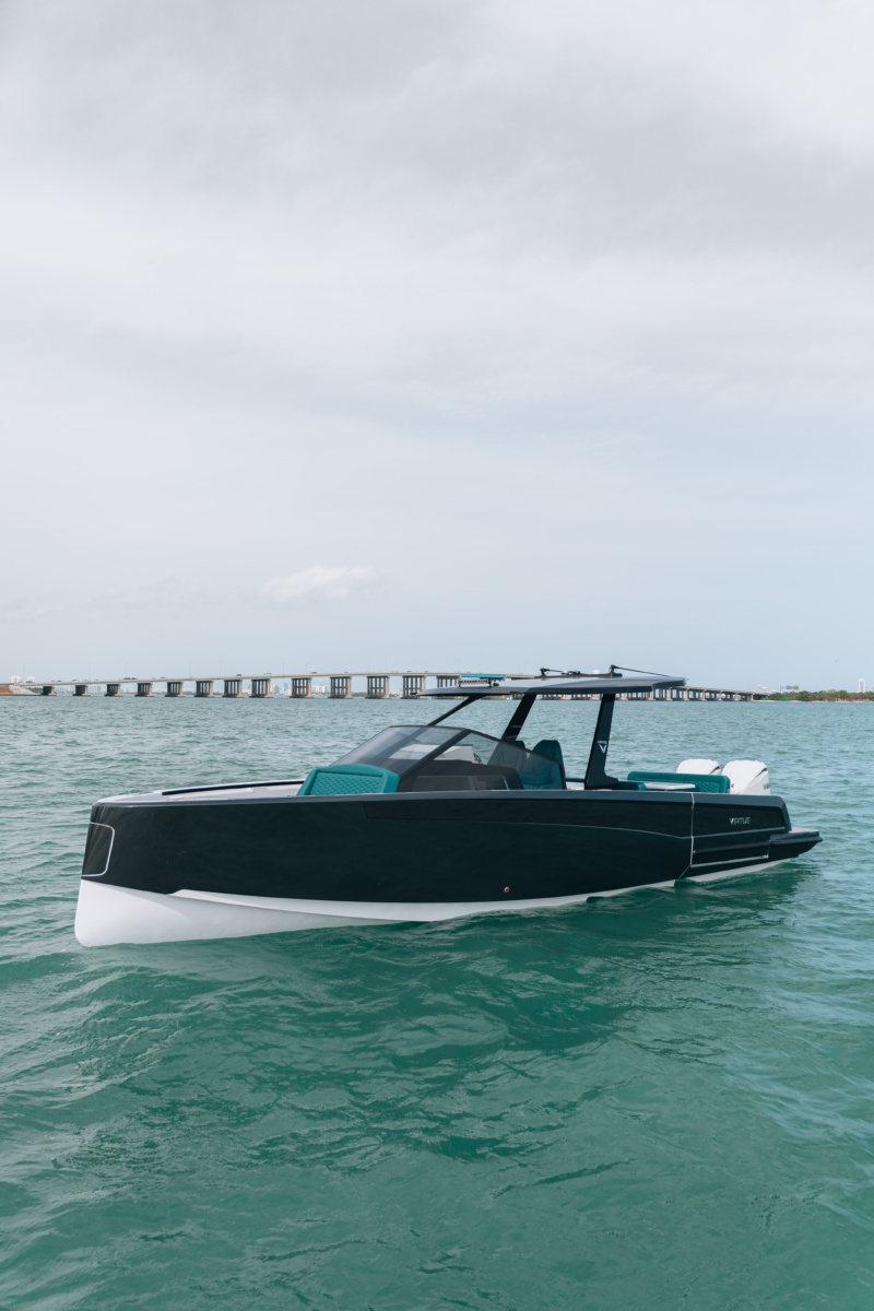 When at anchor, the electric drop-down platforms extend the boat's beam, transforming the V10 Top into your personal on-water beach club, offering an unparalleled sense of space and connection to the water.