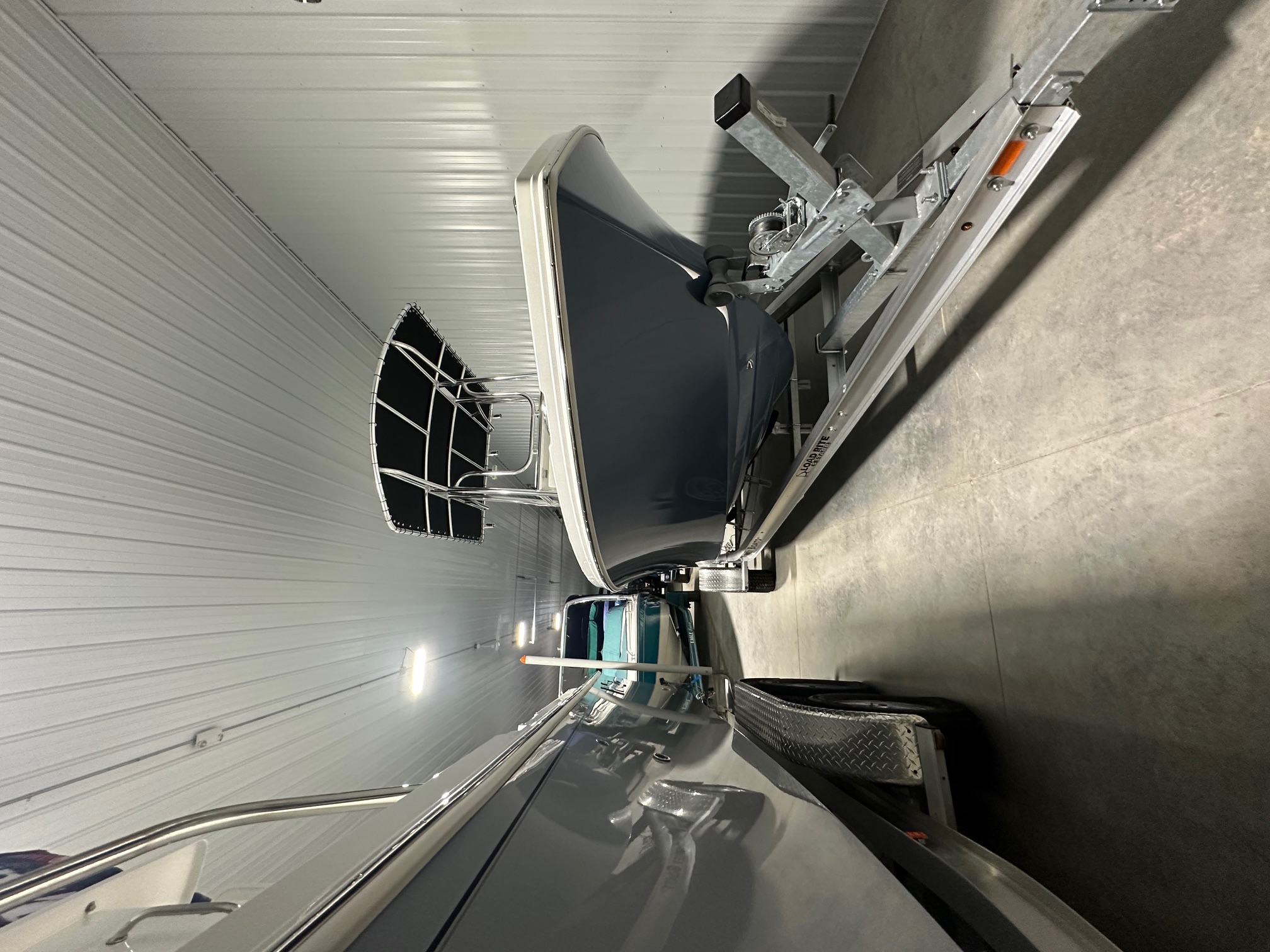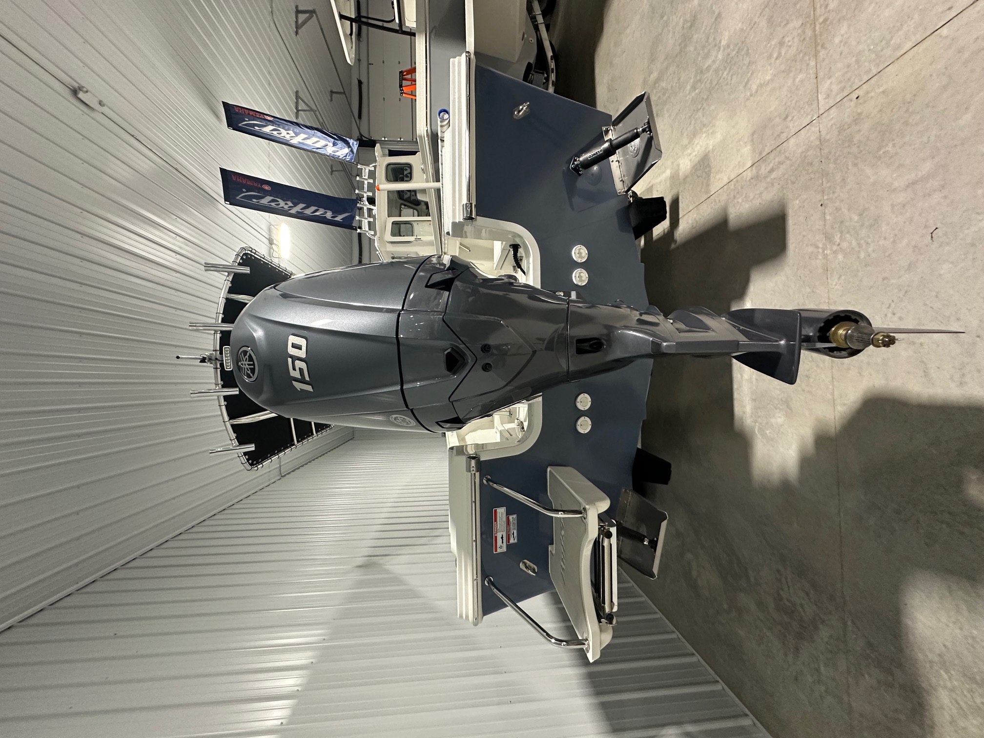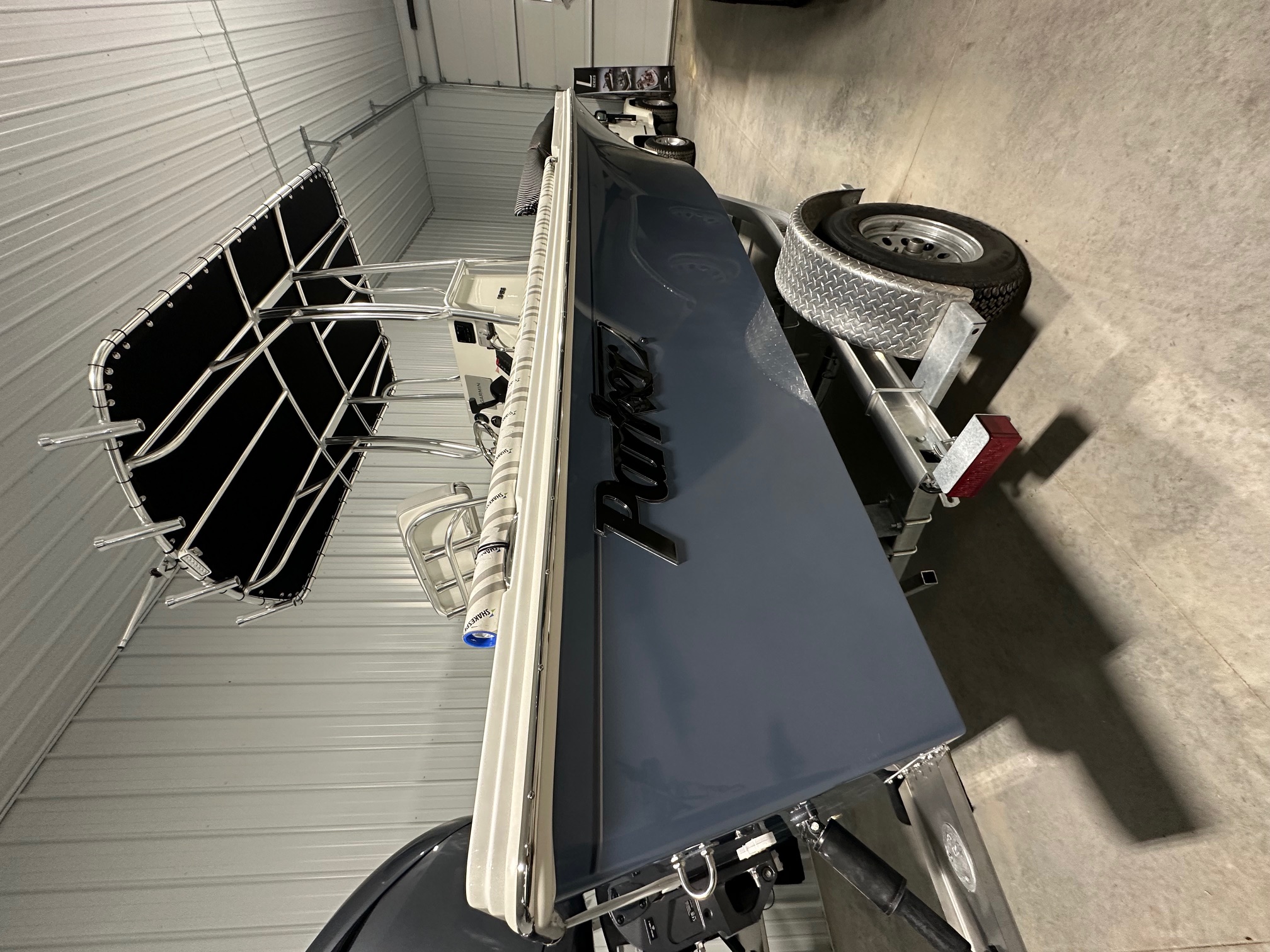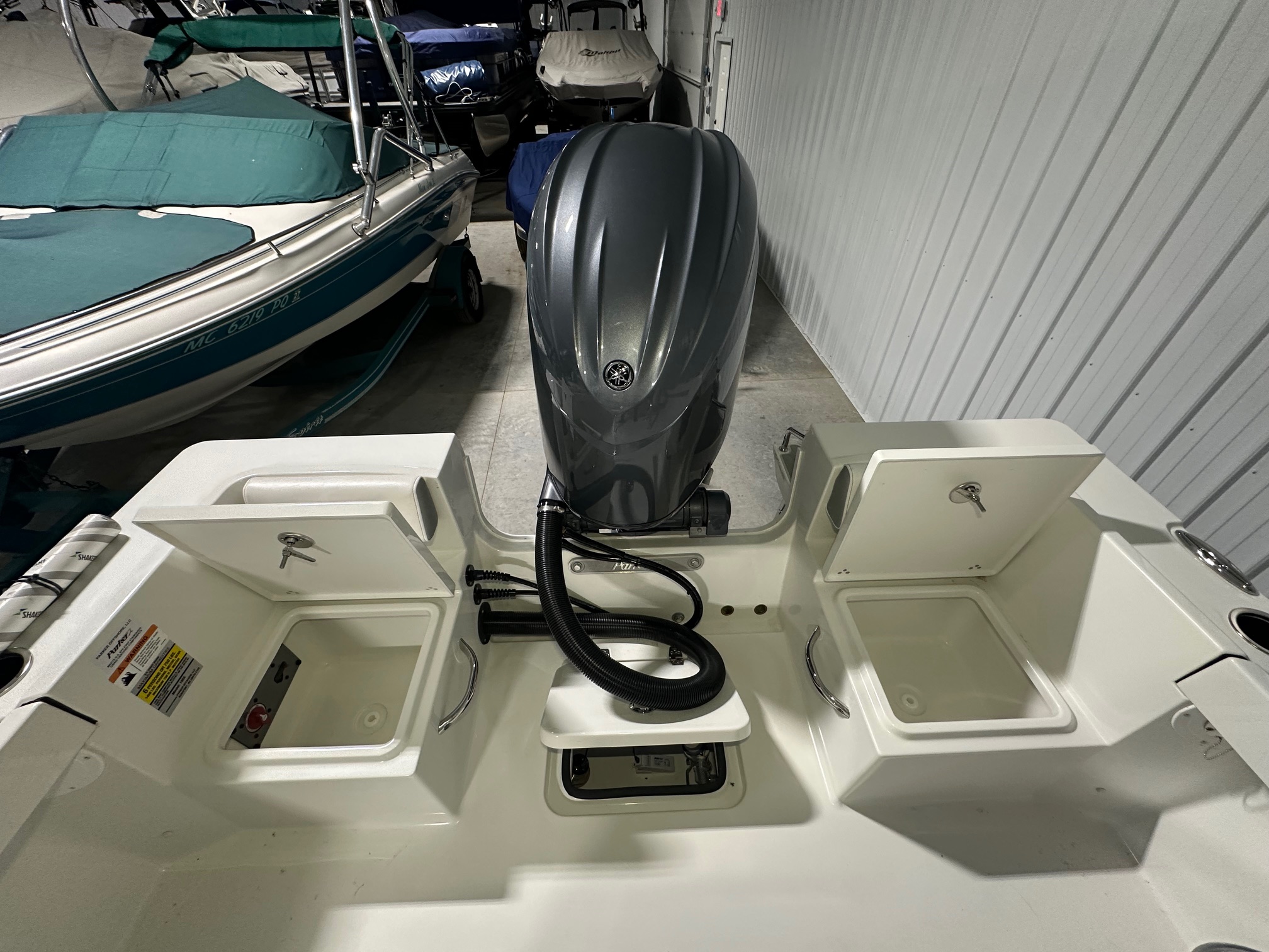 2025 Parker Offshore 18 SE Center Console, horizon blue, Yamaha 150hp outboard engine (F150XC), Load Rite single axle trailer, anodized aluminum T-Top, 4-rod rocket launcher, battery charger (single), LED spreader light for T-Top, raw water washdown, trim tabs w/ instant retract & position indicator, forward platform w/ recessed storage & cushion, Garmin GPS Map 943 XS & B60 transducer w/ VHF 115 & Antenna, Wet Sounds stereo w/ speakers (2), white rub rail w/ stainless steel insert