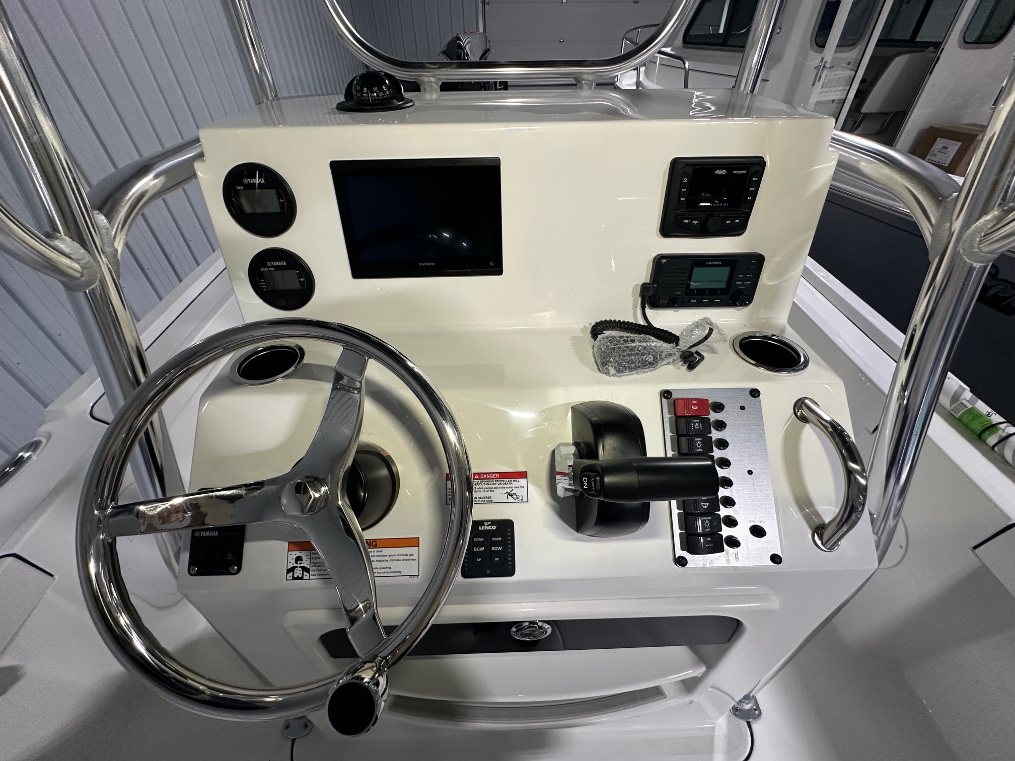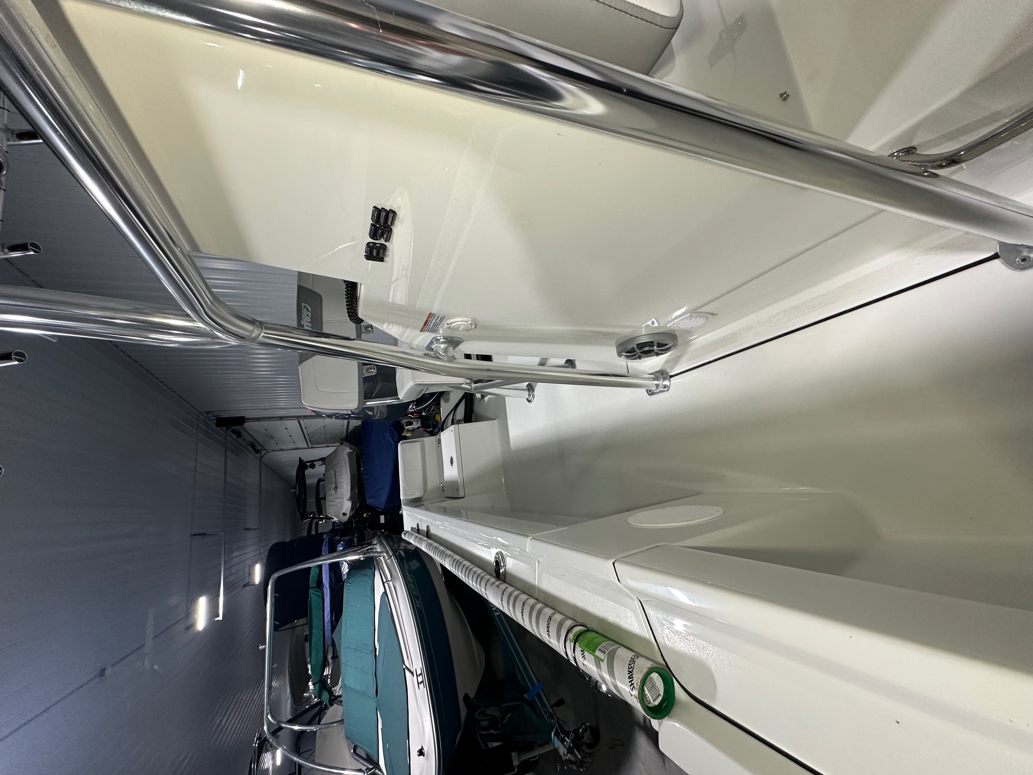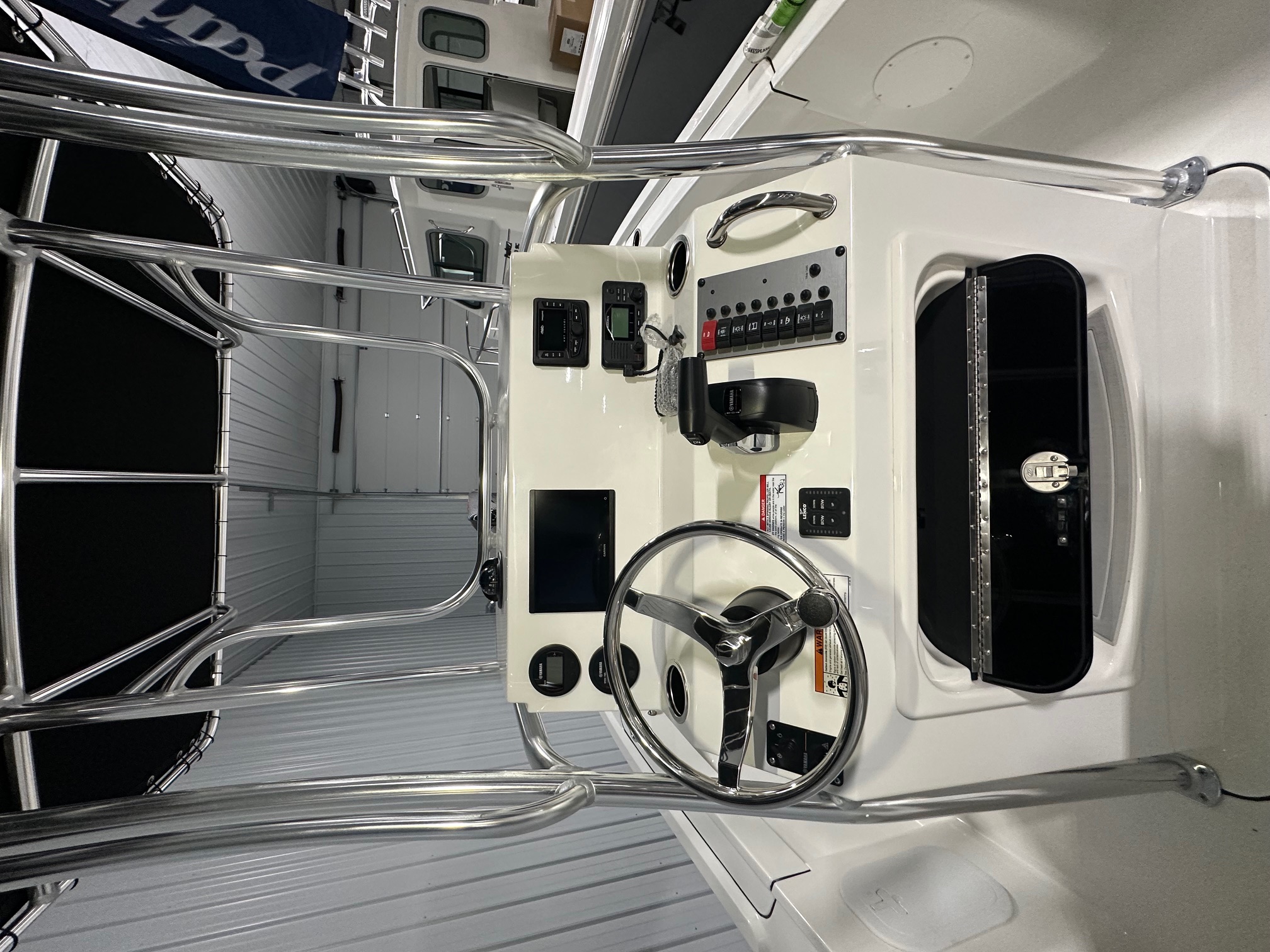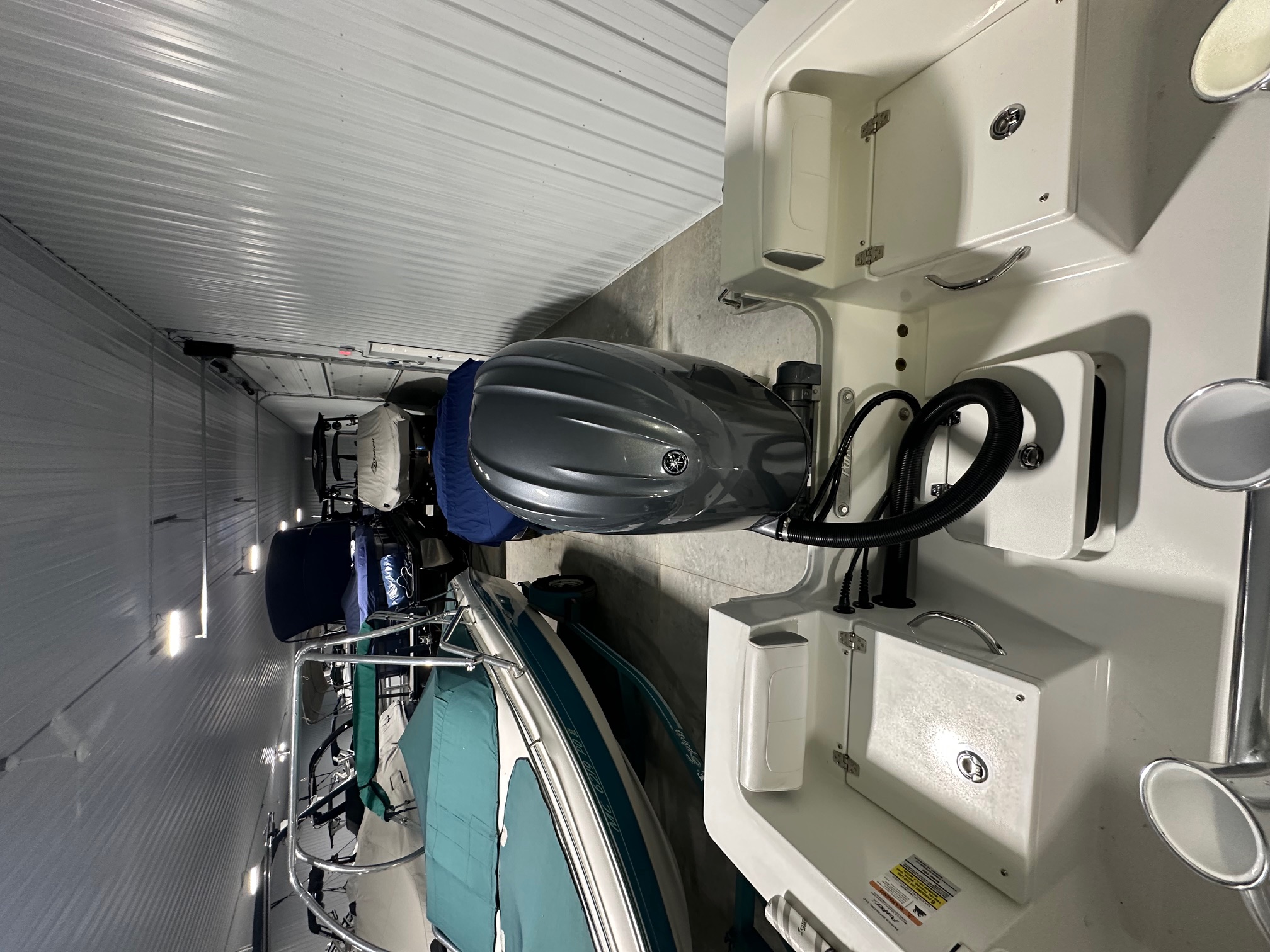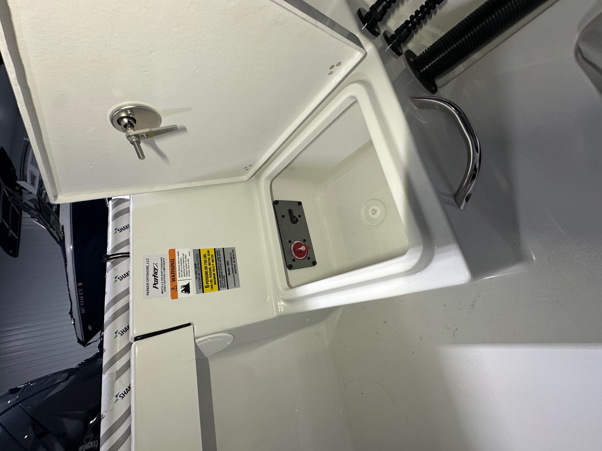 2025 Parker Offshore 18 SE Center Console, horizon blue, Yamaha 150hp outboard engine (F150XC), Load Rite single axle trailer, anodized aluminum T-Top, 4-rod rocket launcher, battery charger (single), LED spreader light for T-Top, raw water washdown, trim tabs w/ instant retract & position indicator, forward platform w/ recessed storage & cushion, Garmin GPS Map 943 XS & B60 transducer w/ VHF 115 & Antenna, Wet Sounds stereo w/ speakers (2), white rub rail w/ stainless steel insert