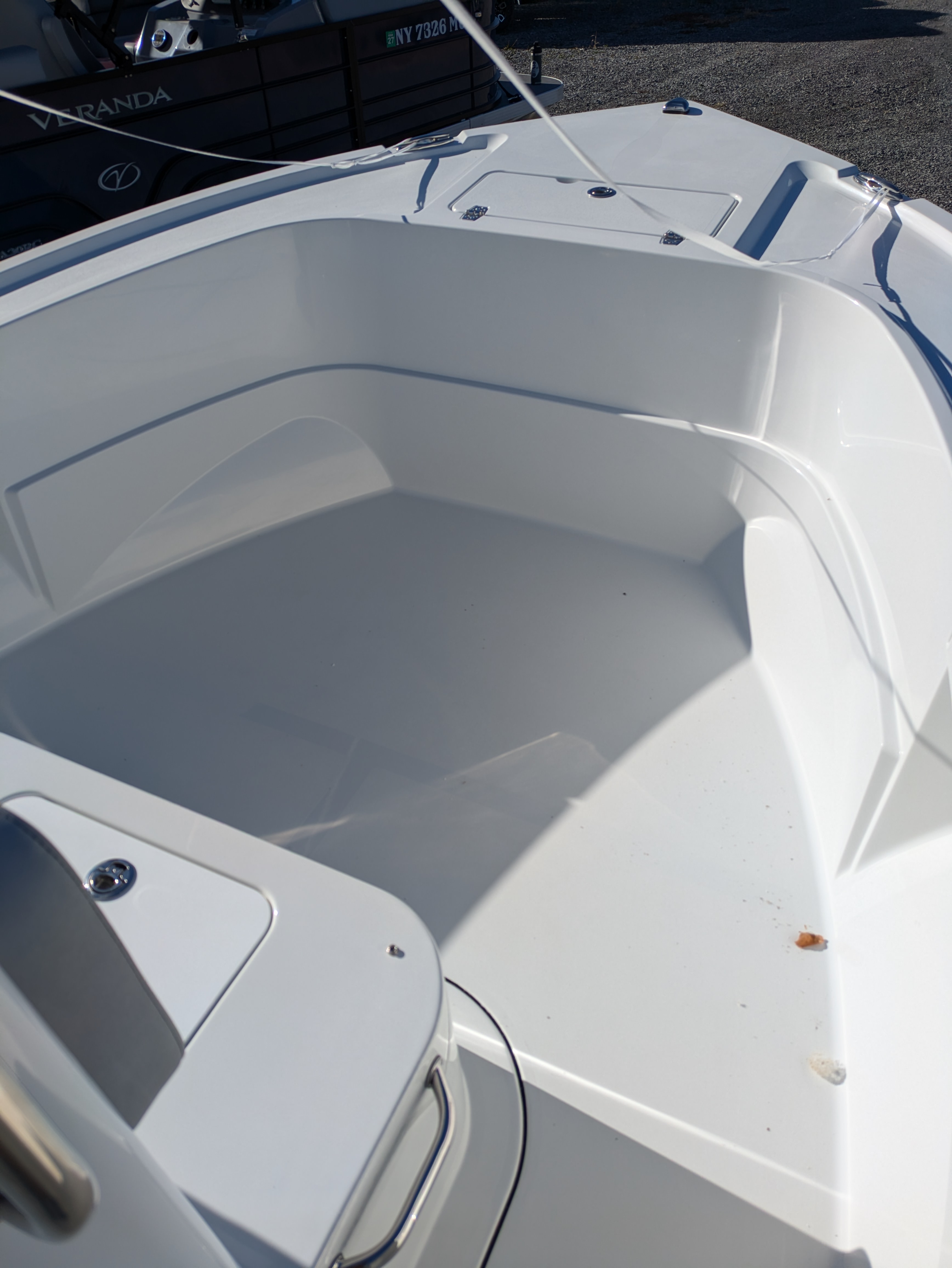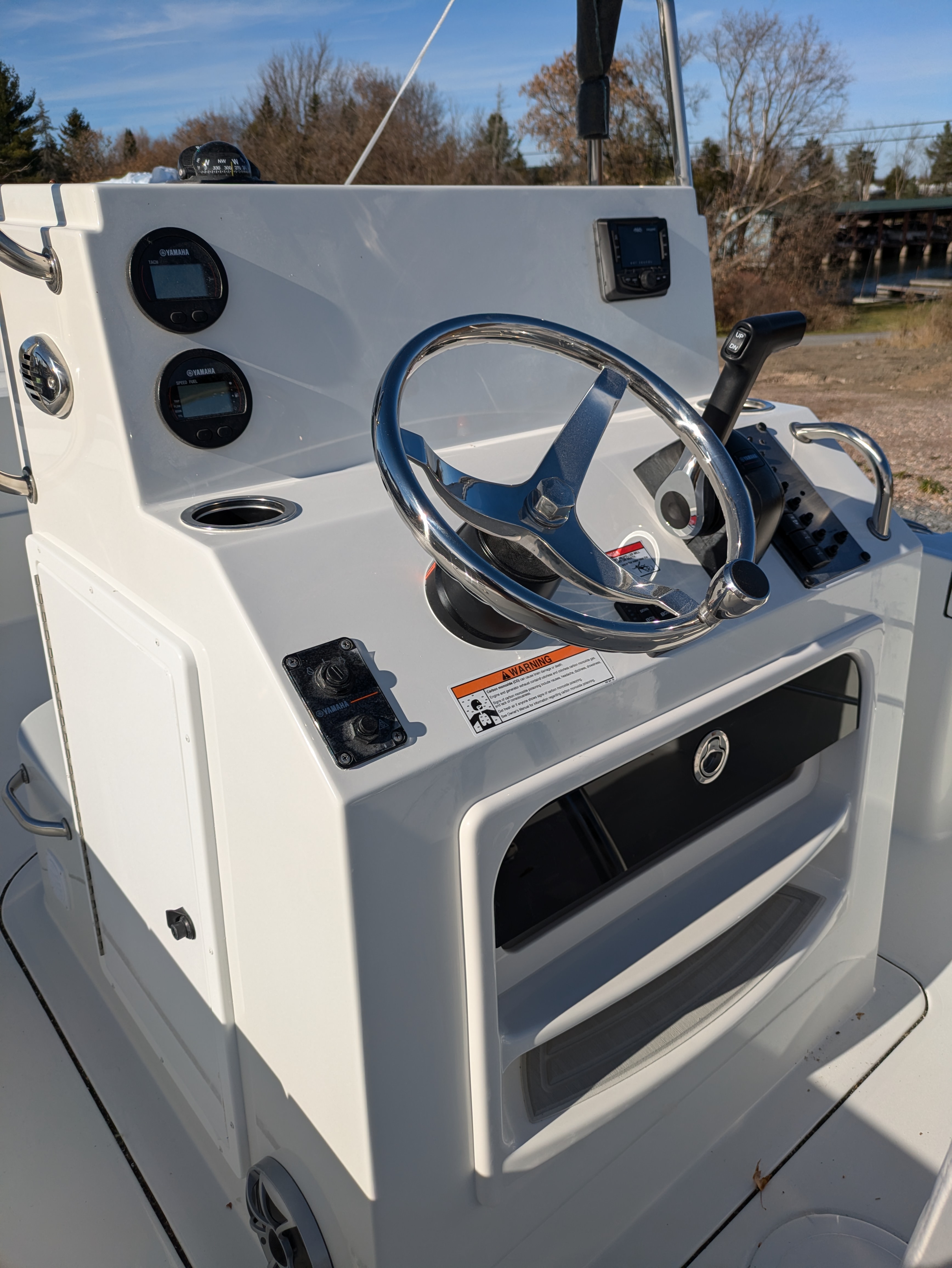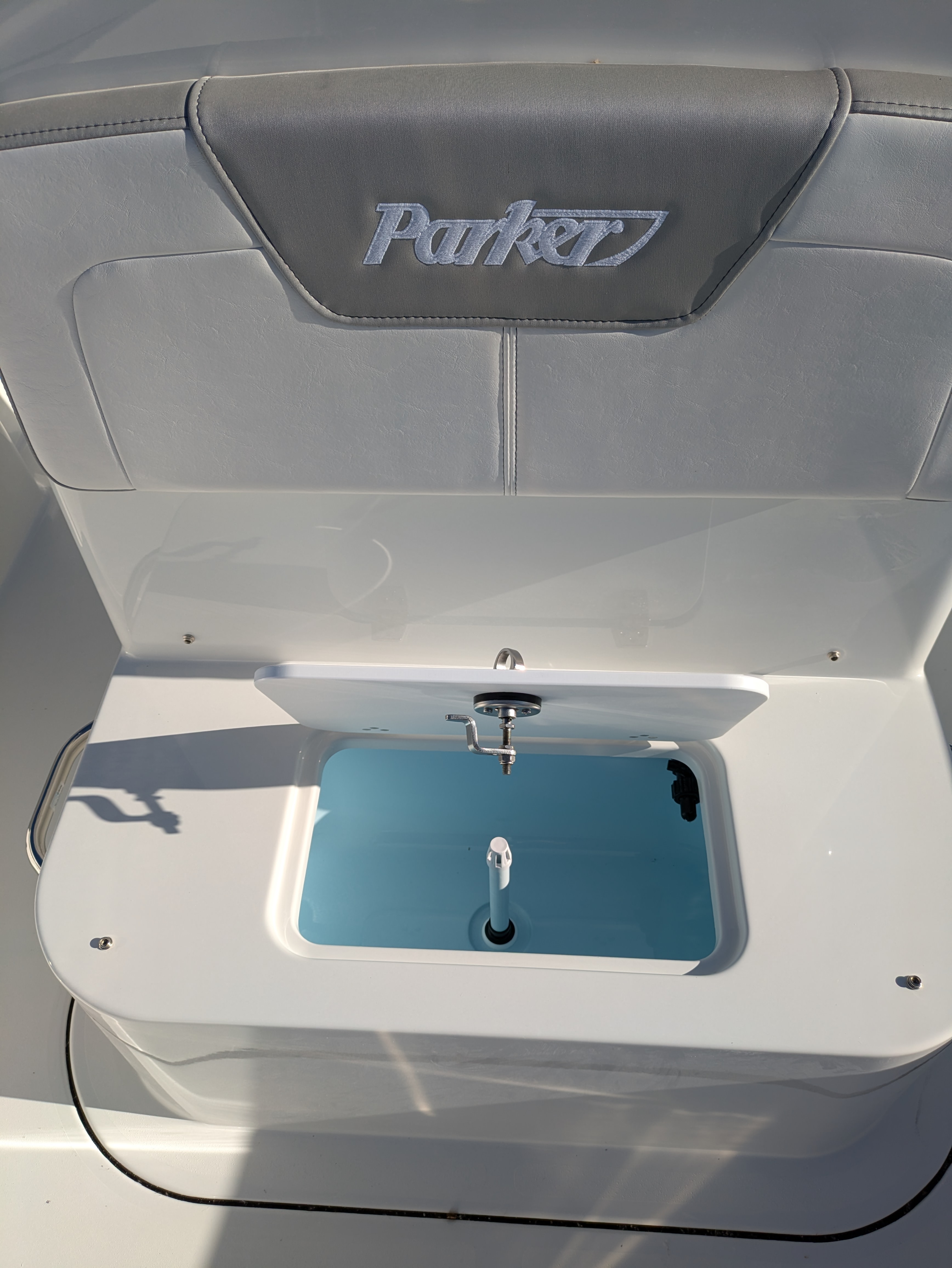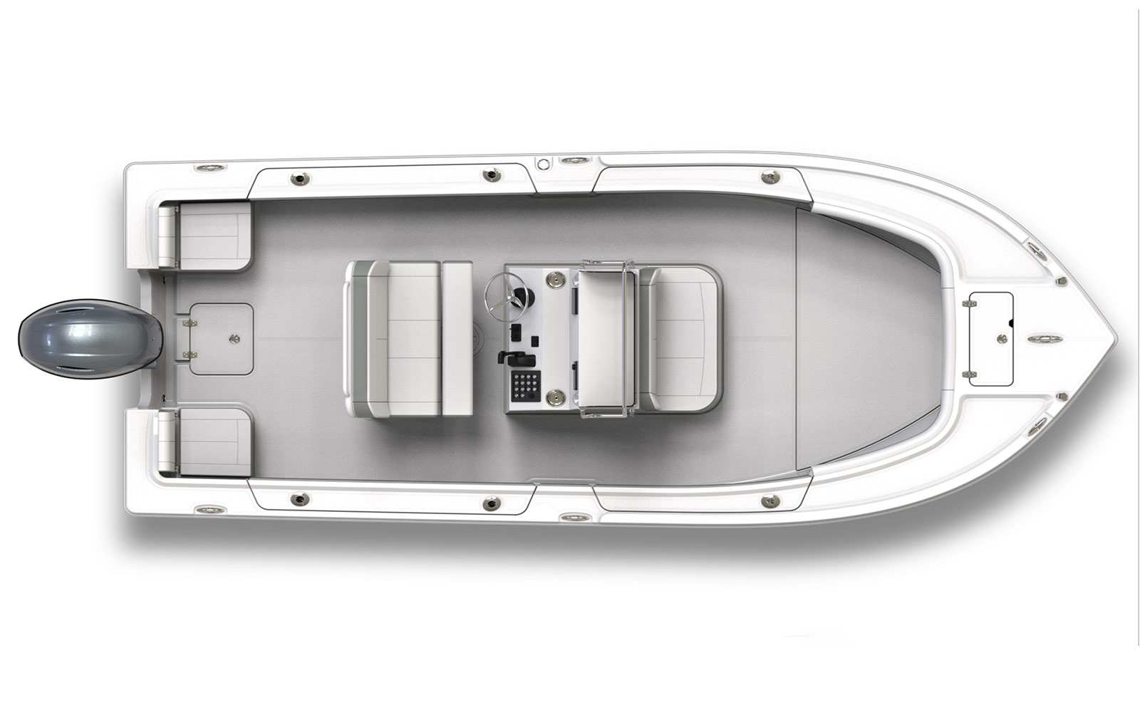 Center Console: Windshield & stainless steel grabrail, storage compartment with door, forward facing console seat with livewell/storage, cushions & stainless steel grabrails