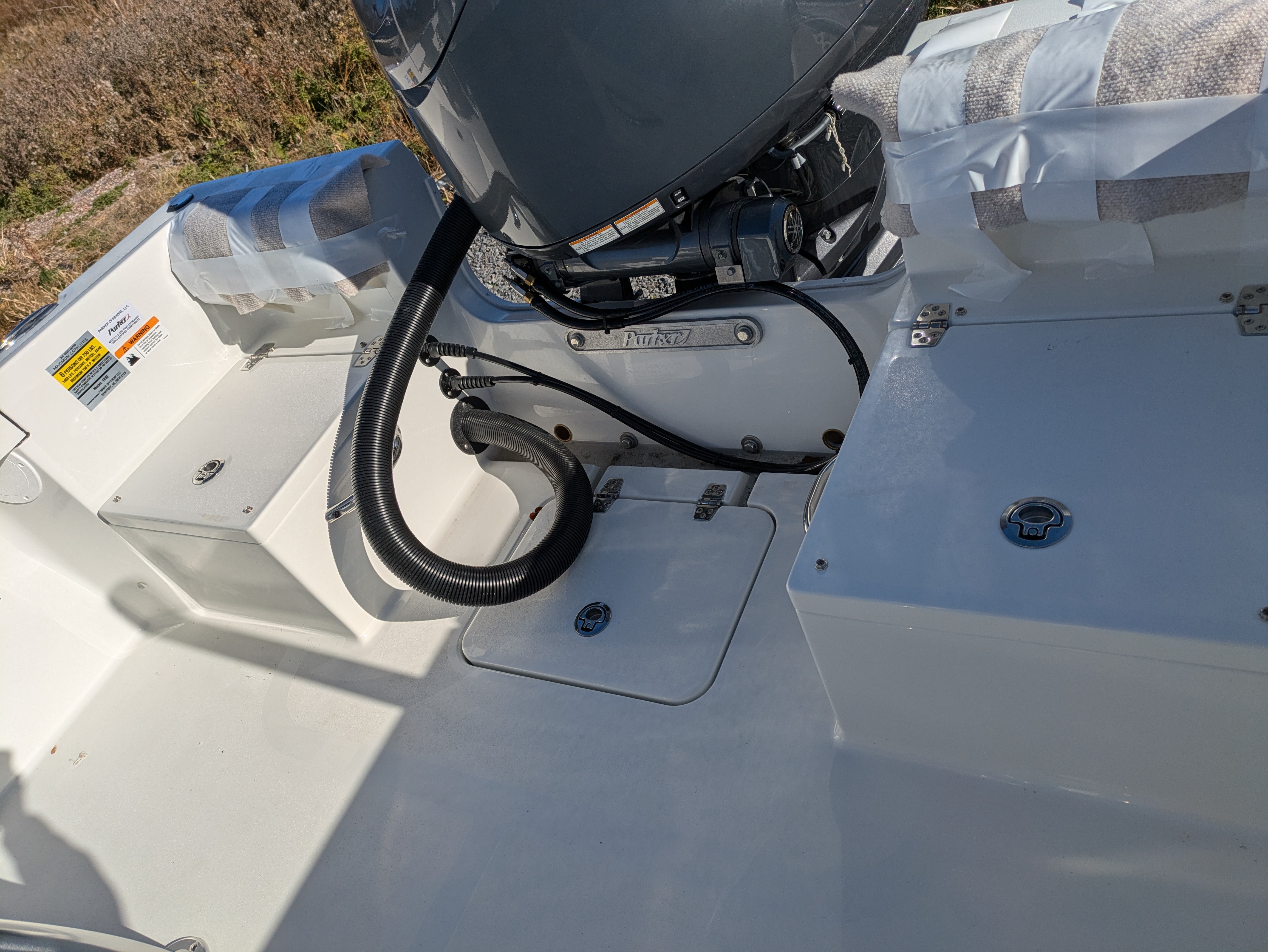 Stern Jump Seats with Hinged Lids, Cushions, Backrests, & Grabrails