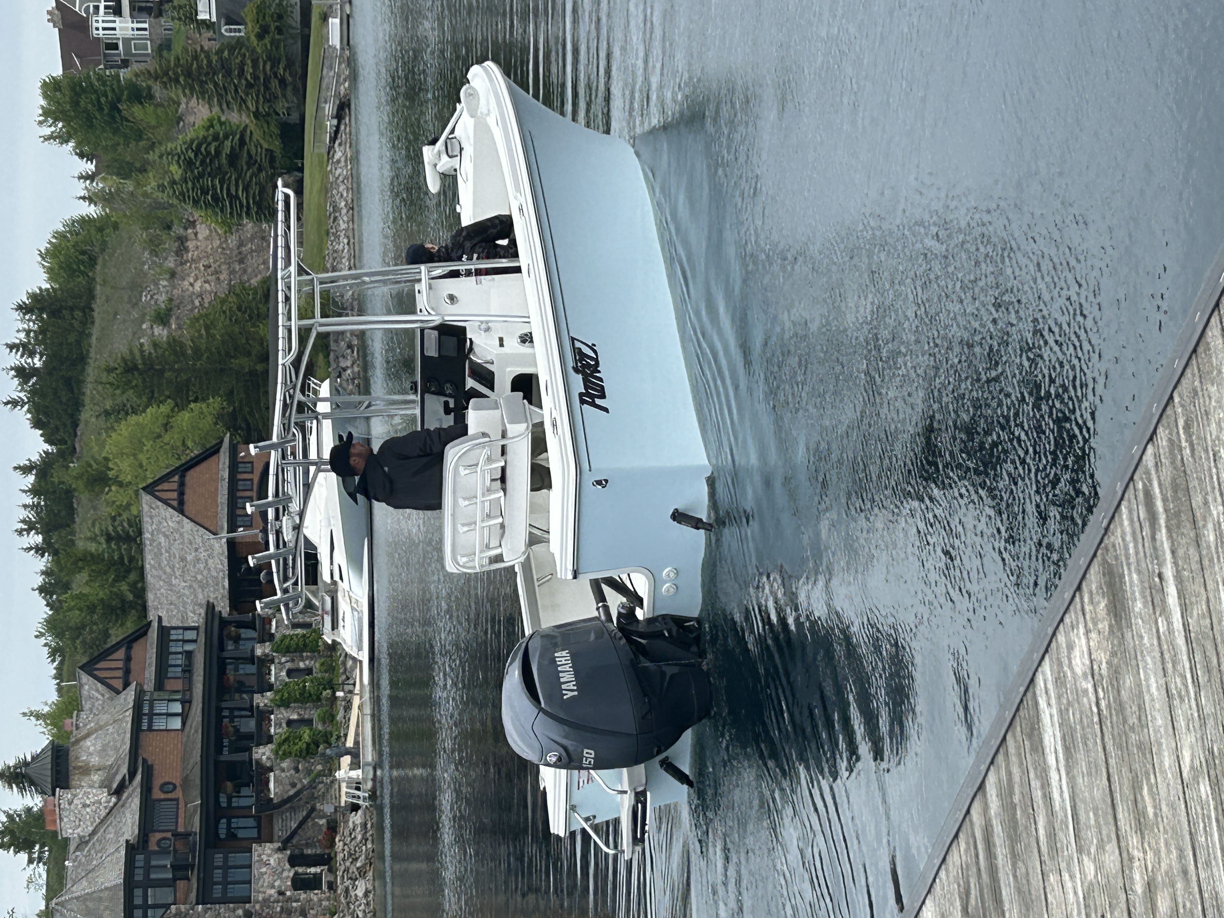 2025 Parker Offshore 210 Coastal Elite, ice blue, Yamaha 150hp outboard engine (F150XC), Load Rite tandem axle trailer, anodized aluminum T-Top, 4-rod rocket launcher, LED Spreader light, Wet Sounds stereo w/ speakers, trim tabs w/ instant retract & position indicator, Motor Guide trolling motor - Saltwater 80 lb 72” with Pinpoint GPS, Cockpit coaming bolsters w/ marine mat port & starboard, battery charger (2 bank), raw water washdown, white rub rail w/ stainless steel insert, Garmin GPS Map 1042 XSV & B60 & VHF 115 w/ antenna