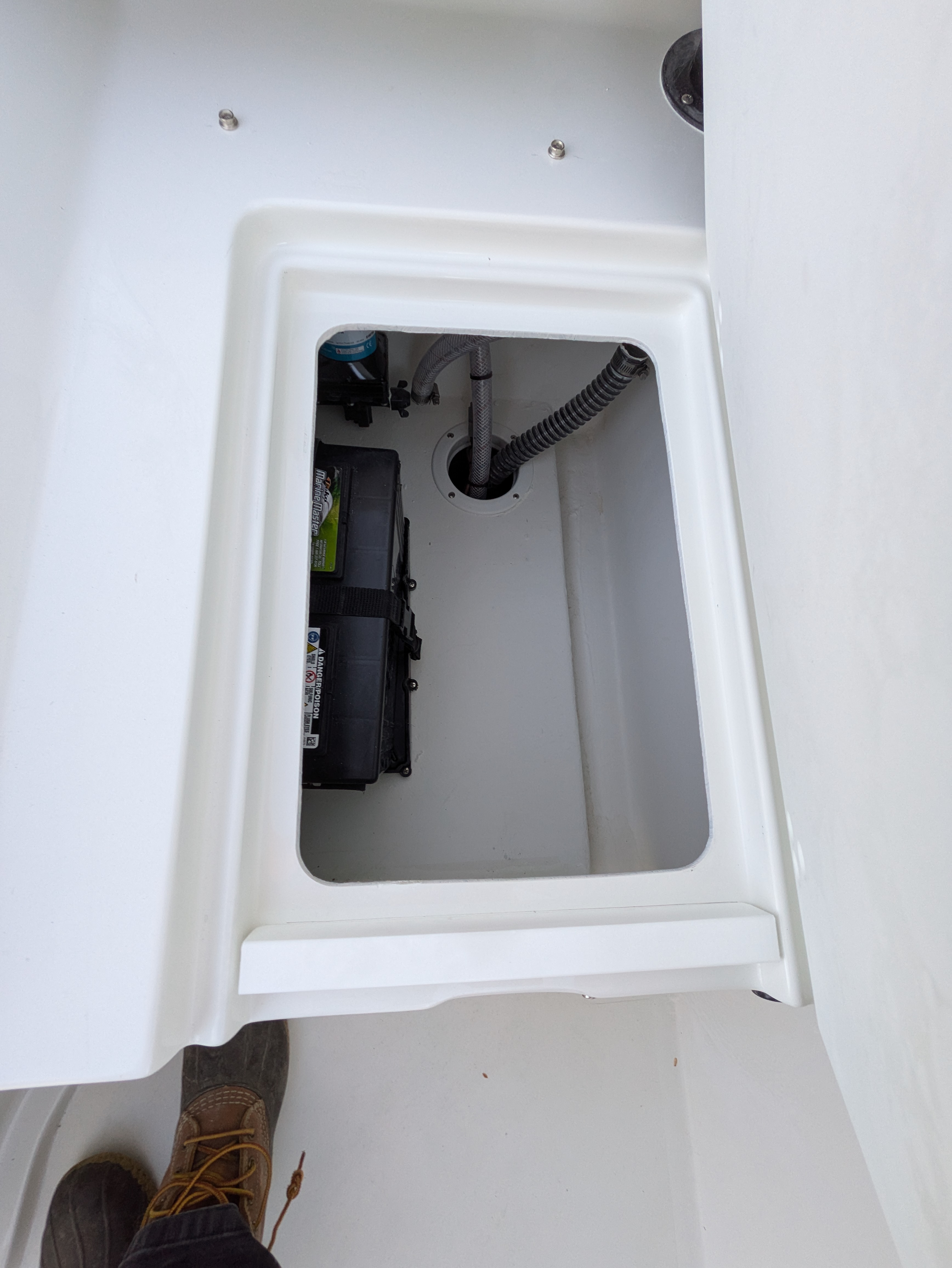 Cabin (68" Length, 78" Width, 35" Headroom Over Bunk): Twin berths with storage and cushions, headliner, port lights with screens, overhead ventilation hatch with screen, Porta-Potti with dockside pump out and anchor locker access.