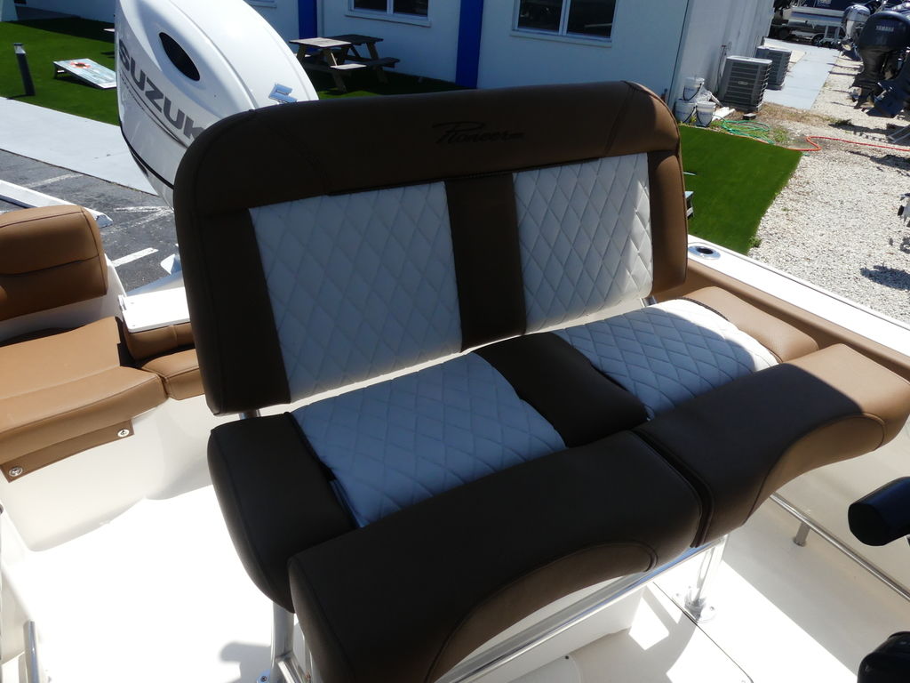 We designed the 202 Islander to be the perfect boat for great family fun! With an 8 person capacity, this center console rig emphasizes water sports, tubing, fishing, pulling up to your own private beach, or just cruising the waterways with friends and families. With more seating, featuring a full transom seat, wrap-around bolsters throughout the boat, and a step-down porta potty under the console, it's truly a great choice your family and your friends to enjoy!