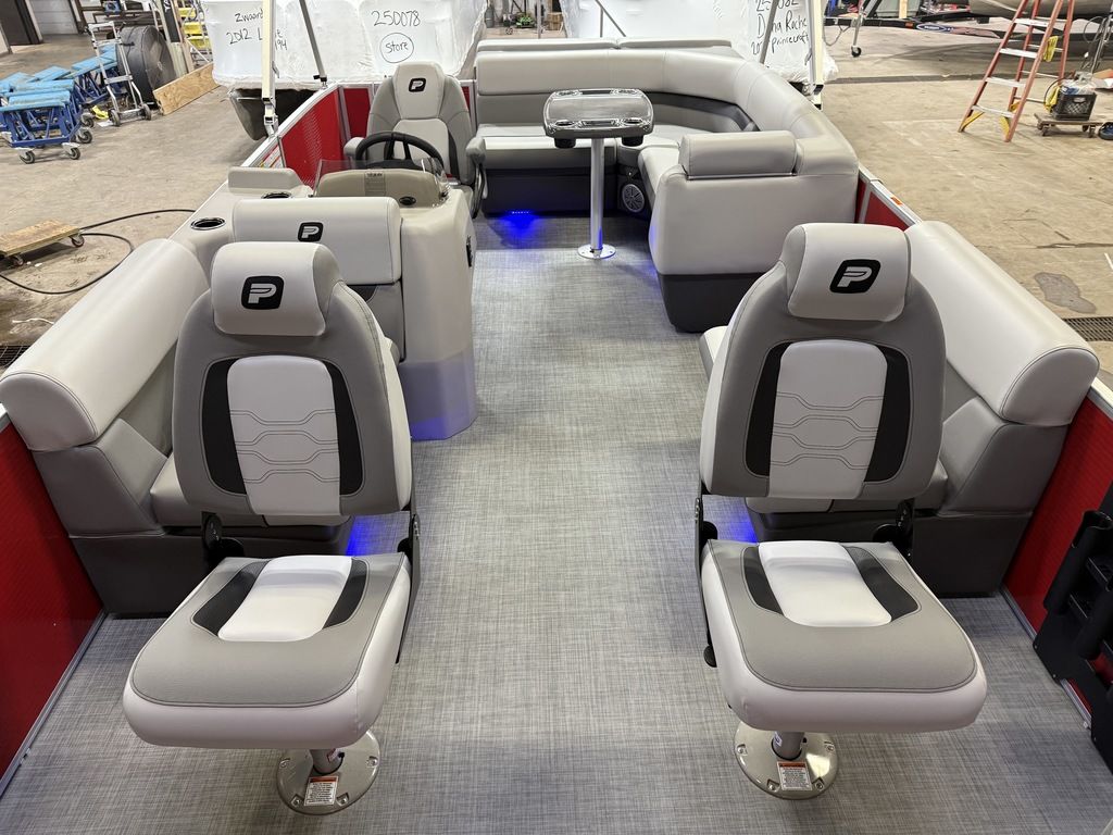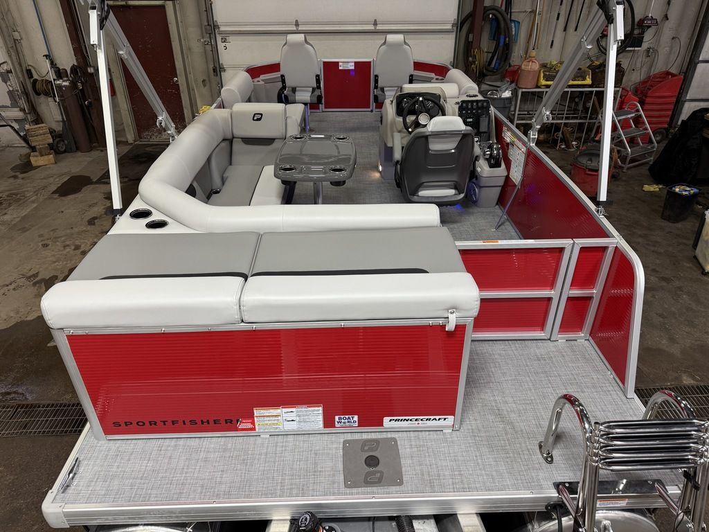 2025 Princecraft 21 Sportfisher 2-S Pontoon & Mercury 4-Stroke EFI. 20' Pontoon Has 2 Fishing Seats Up Front With A Live Well, Rod Holders And Storage, 2 Front Bench Seating (One Lounge) With Storage, Wrap Around Lounge Seating With Storage, Captain's Chair With Slider, Tilt Steering, Rear Sun Deck/Storage, All Vinyl Flooring, Bimini Top, Mooring Cover, LED Docking Lights, LED NAV Lights, New Battery, Multiple Cup Holders, Rear 4 Step Ladder With Swim Deck, Built-In 30 Gallon Gas Tank, 25" Tubes, Bluetooth Radio/MP3 Player, Rear Deck. Rated For 10 People.