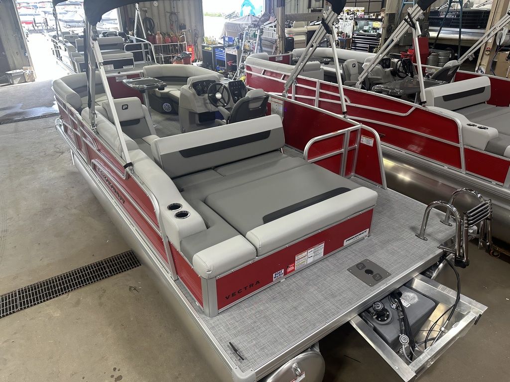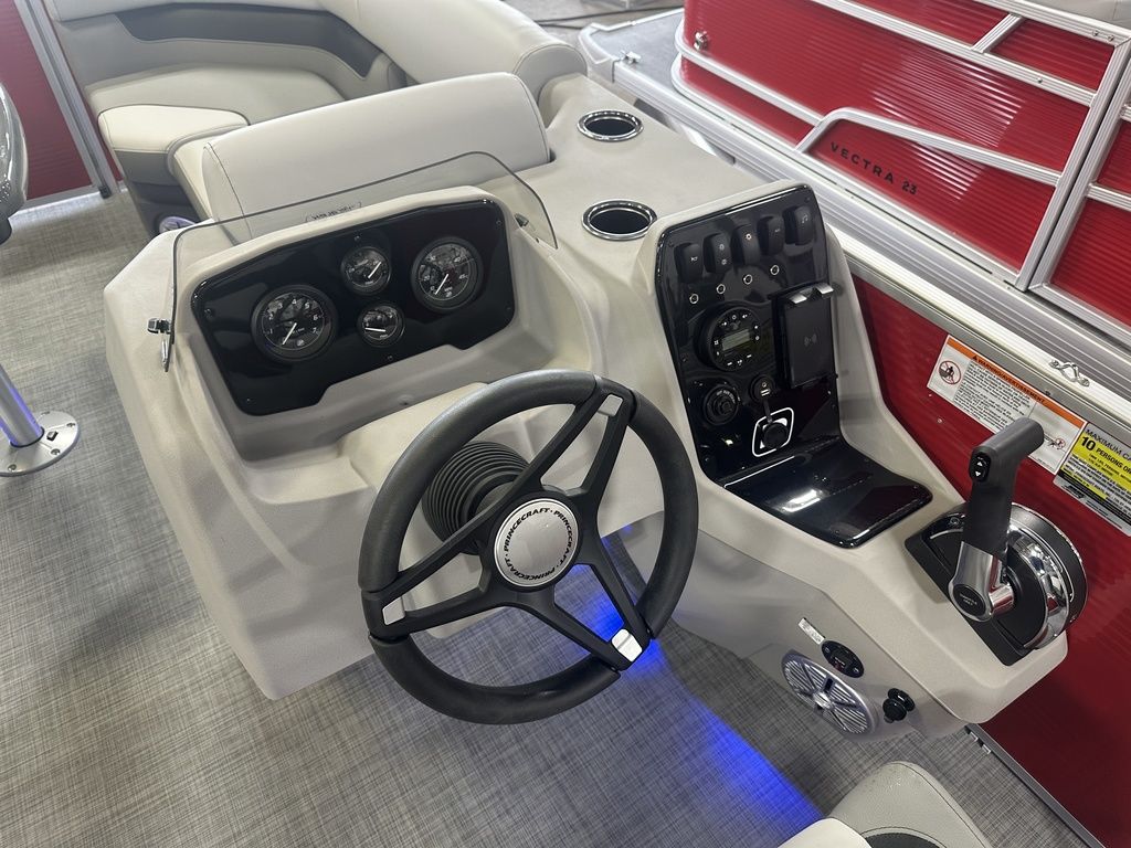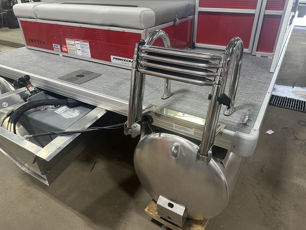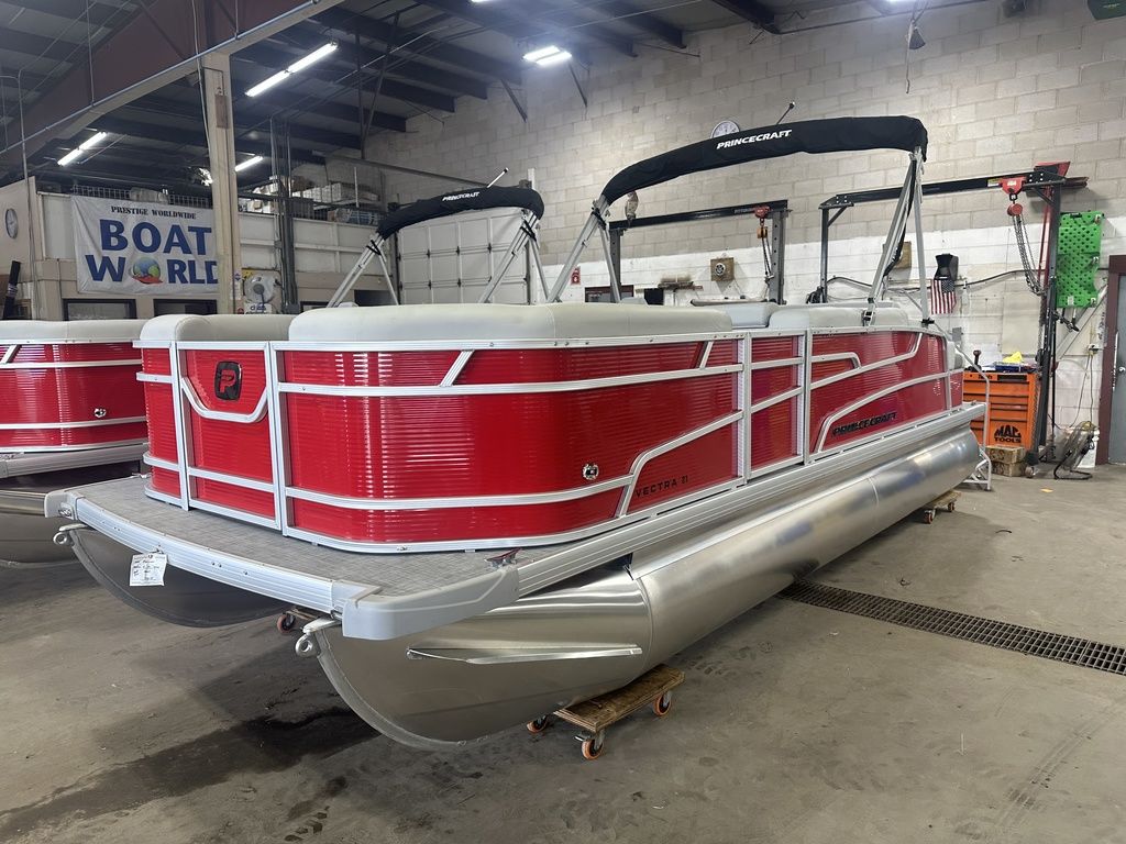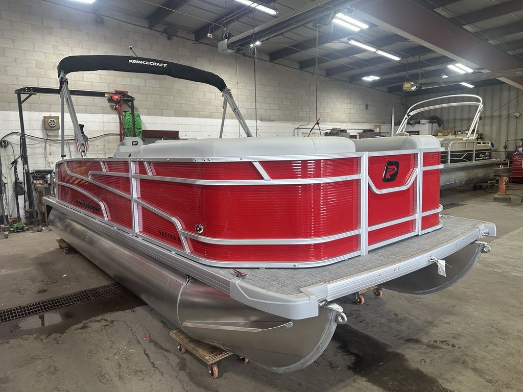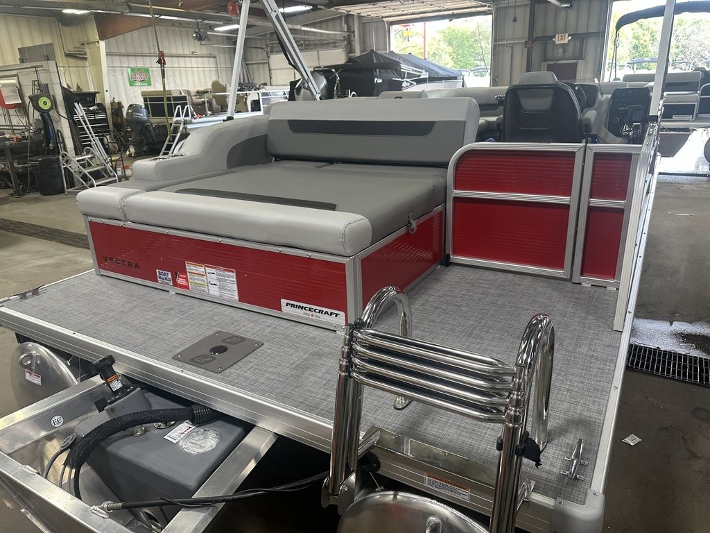 2025 Princecraft Vectra 21 RL Lounge Swingback & Mercury 4-Stroke EFI. This 20' Swingback Pontoon Has Lounge Seating Up Front With Storage, Long Chaise Lounge Wrap Around Seating With Storage, Rear Facing Lounge Seating With Storage (Can Also Be Forward Facing Bench Seating), Traditional Package, All Vinyl Floor, Bluetooth Radio/MP3 Player With 4 Speakers, Multiple Cup Holders, New Battery, Bimini Top, Mooring Cover, Table, Built-In 29 Gallon Gas Tank, Tilt Steering, LED Docking Lights, LED NAV Lights, Huge Rear Swim Deck With 4 Step Stainless Steel Ladder, Nice Front Deck, 25" Tubes. Rated For 10 People. Great Pontoon!