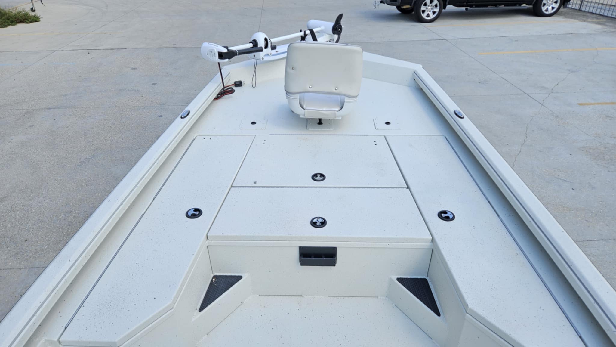 As a flagship skinny water predator, the new RB210 delivers peak stealth, strength, and fishability. The RB210 is a capable shallow-drafting inshore and nearshore performer with more muscle to knock down chop, agility to weave across flats and through marshes and bayous, and saltwater-proven toughness to take on any inshore species. The wide pad-bottom hull is designed to float and plane in inches of water while edge-to-edge stability is present from bow to stern. Inside the RB210 is a full does of our signature flotation foam that adds considerable stealth by insulating noises while soaking up punishment from chop. Complementing the foam is our patented pultruded fiberglass material which serves to bolster high-stress areas with its lightweight, stronger-than-steel properties.