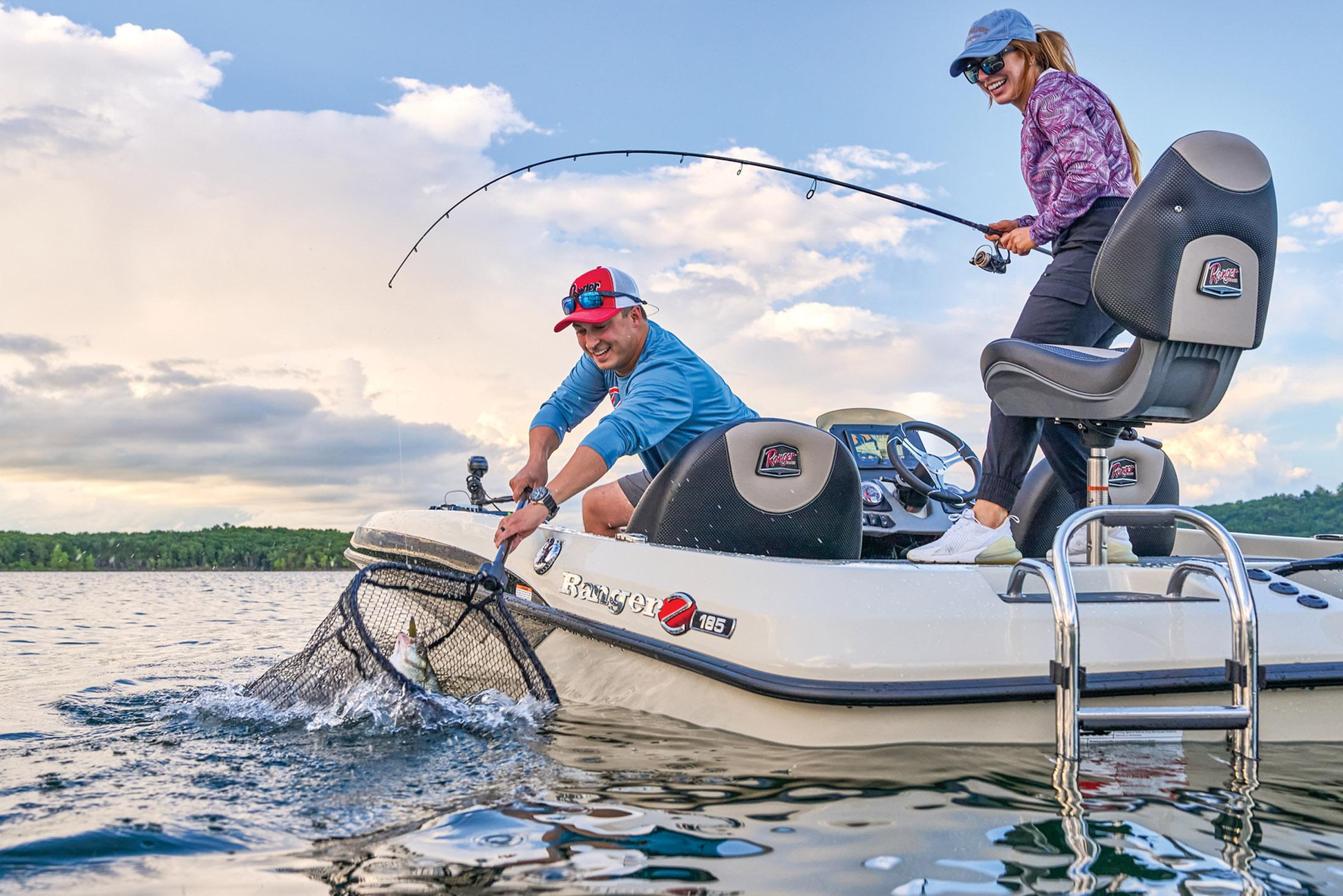 Financing Available The Ranger® Z185 represents the perfect blend of economy and performance. At 18 feet, 8 inches in length, the Z185 boasts an extra wide 93-inch beam for maximum storage, handling, comfort and stability. The time-tested hull is agile, smooth, and solid while the interior strikes a perfect balance of convenience and efficiency. Dual rod boxes with gas-spring assists, triple-lip seals and deep drain channels keep your gear dry and accessible. Up front, a recessed trolling motor pedal, flush-mounted electronics and a Minn Kota® trolling motor let you focus on the fish and the timed, divided and aerated tournament-size livewell is designed to keep your catch lively all day long. Our exclusive Rite-Track Keel® delivers maximum confidence at any speed while hydraulic steering delivers solid all-around handling. Compact in size and big on performance, the Ranger Z185 boasts big-league construction with a legendary pedigree. Big on performance, Easy on your wallet Rite-Track Keel® delivers maximum control Legendary Ranger build quality Custom-fitted premium marine upholstery Soft Ride Seating (SRS) bucket seats Lockable storage compartments, dual rod boxes with gas spring lid assists Tournament-size 23-gallon livewell