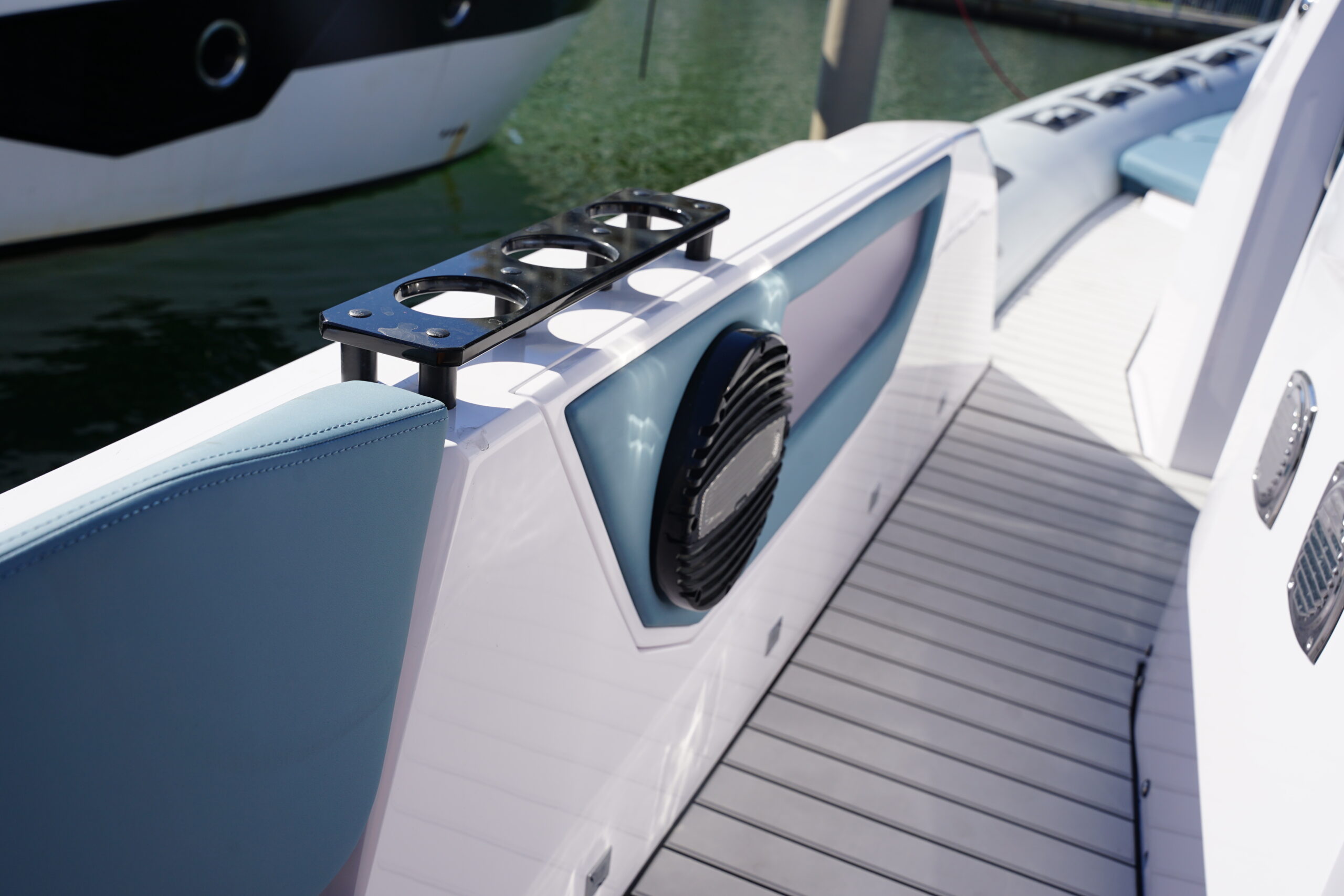 Powered by a maximum of 1200 horsepower, the Cayman 38.0 Executive can reach high speeds while maintaining stability and control. The sleek and sporty design of the boat enhances its performance and adds to its overall aesthetic appeal.