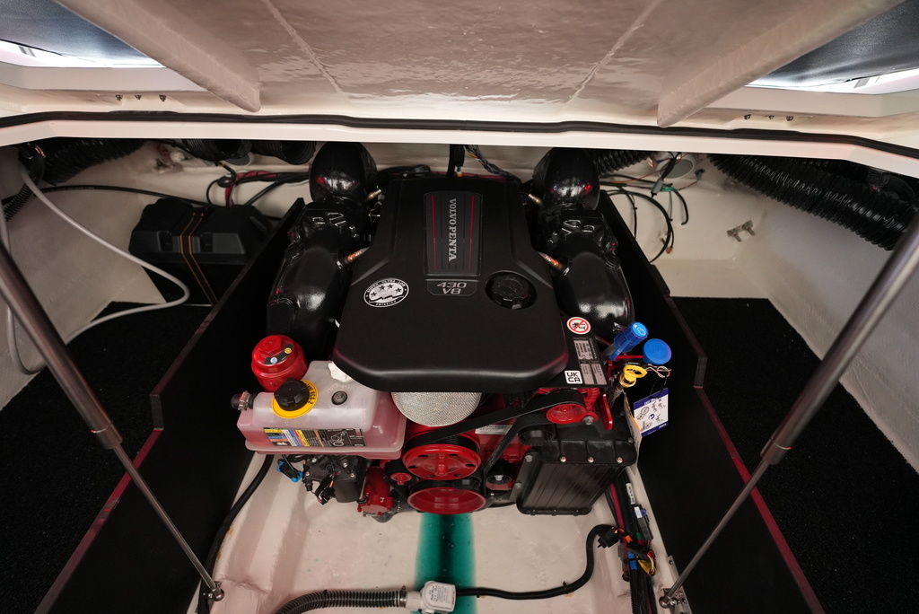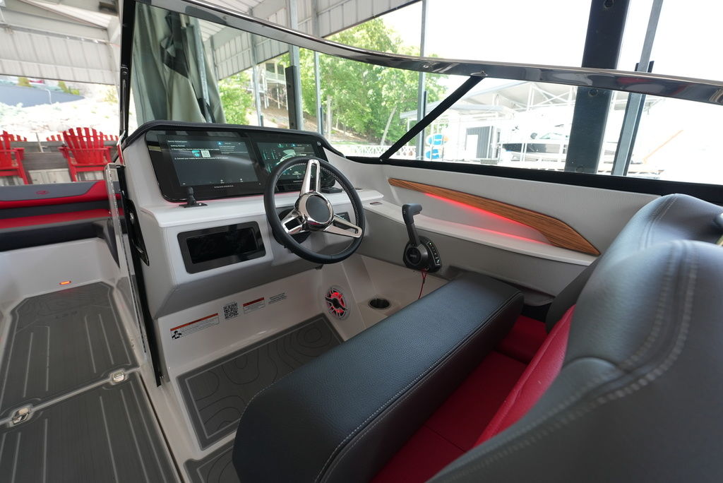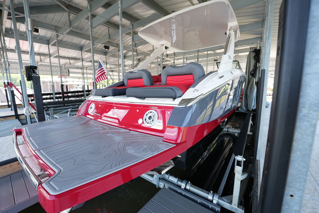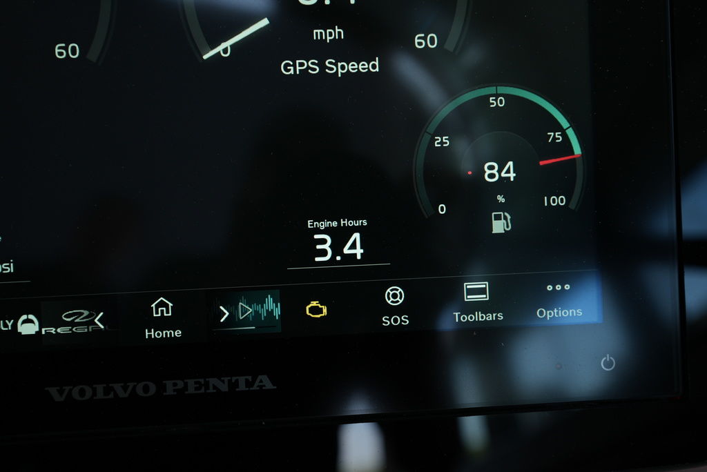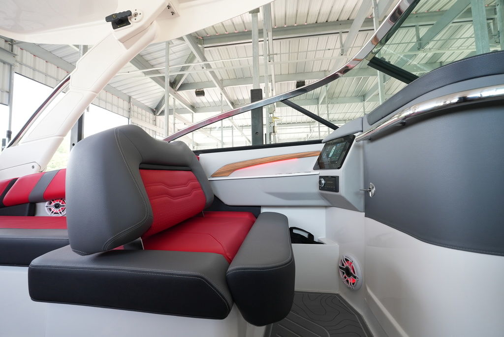 Cool touch marine Vinyl, Power collapsible Tower, battery charger, automatic fire system, bow thruster, transom shower, pump out toilet, bow filler cushion, underwater power platform, Flag pole, windlass anchor, ultimate JL Audio package, trim tabs, twin Garmin screens, Foam Flooring, and much more!